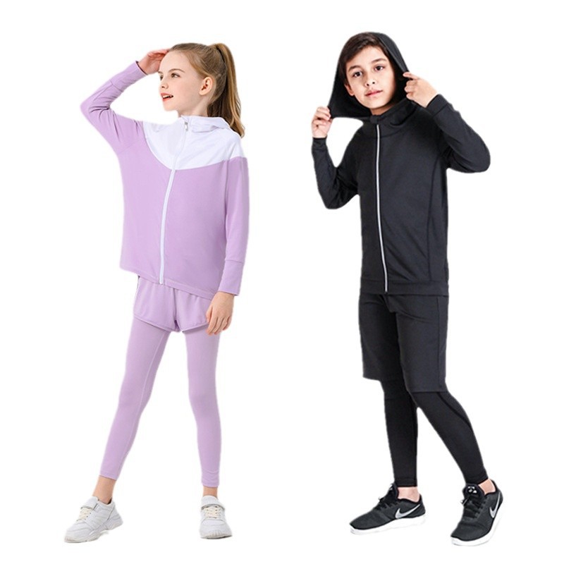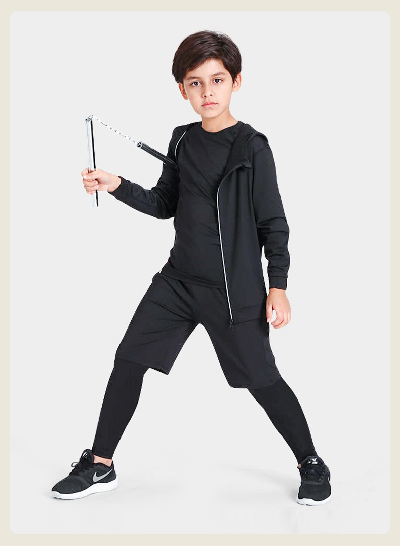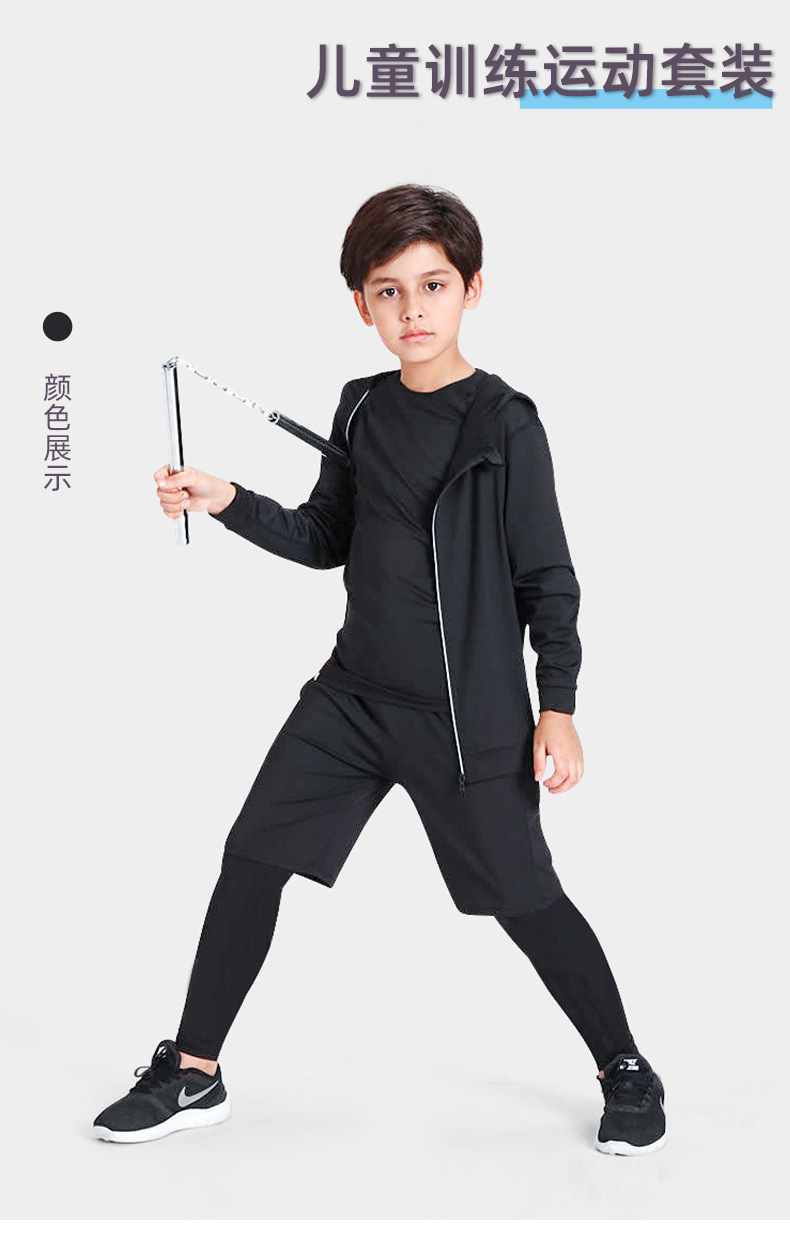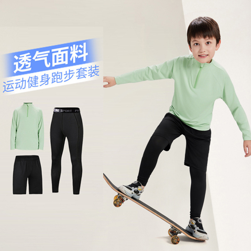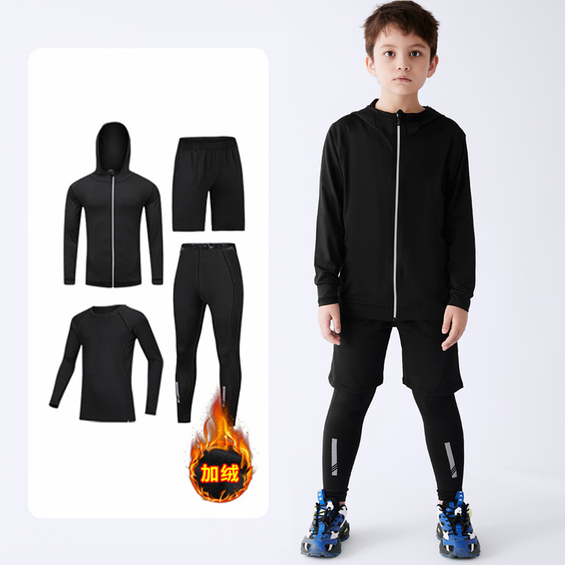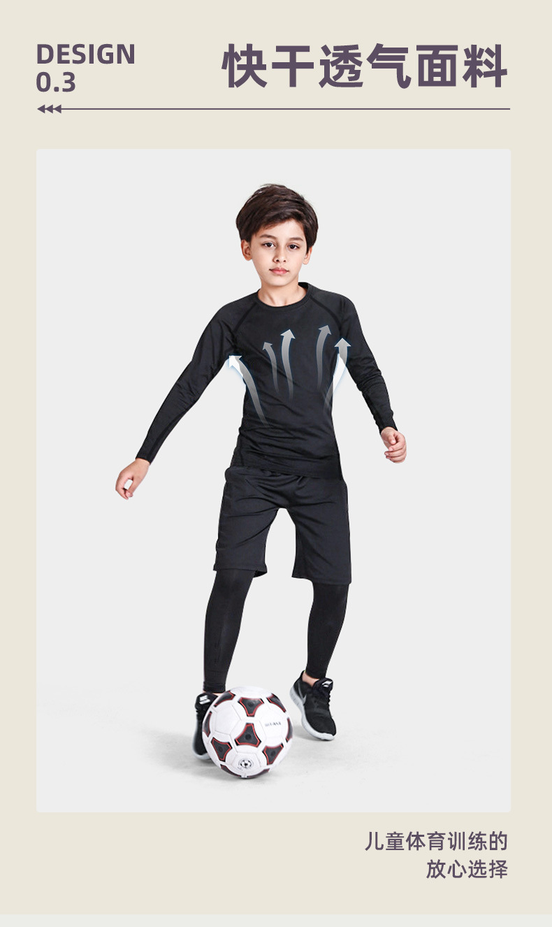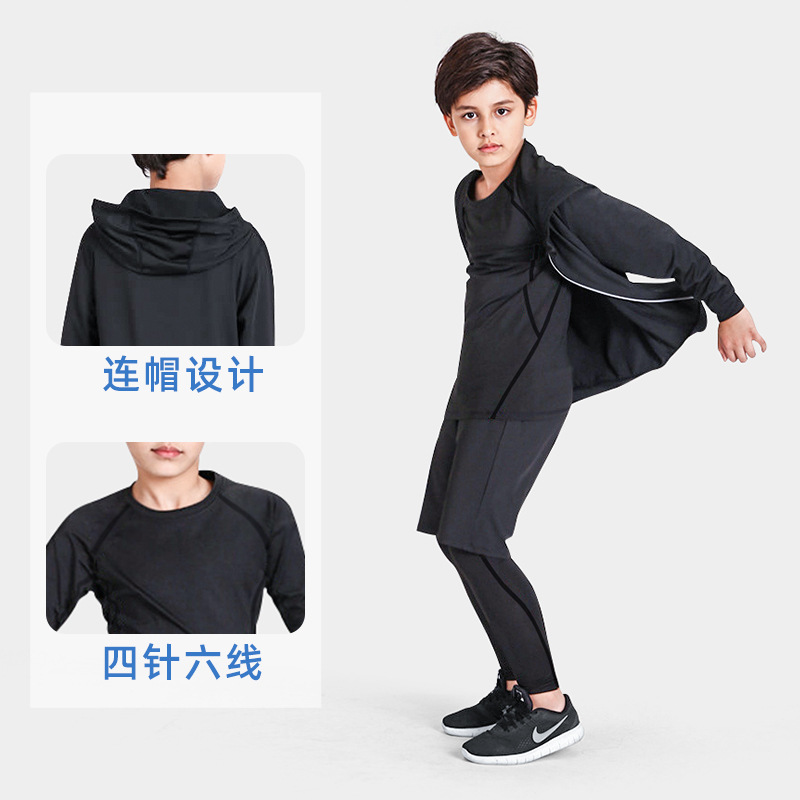 儿童运动紧身衣男套装篮球足球户外训练服速干衣打底保暖健身服