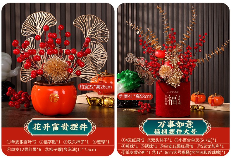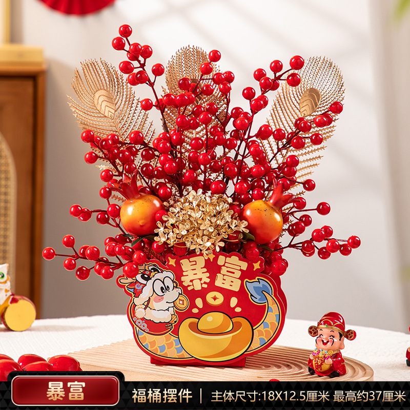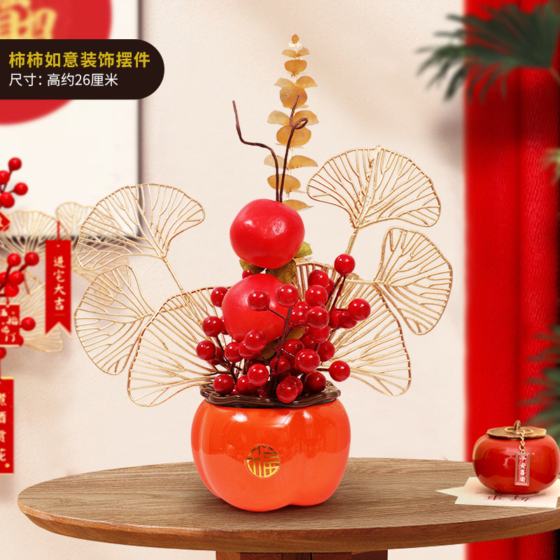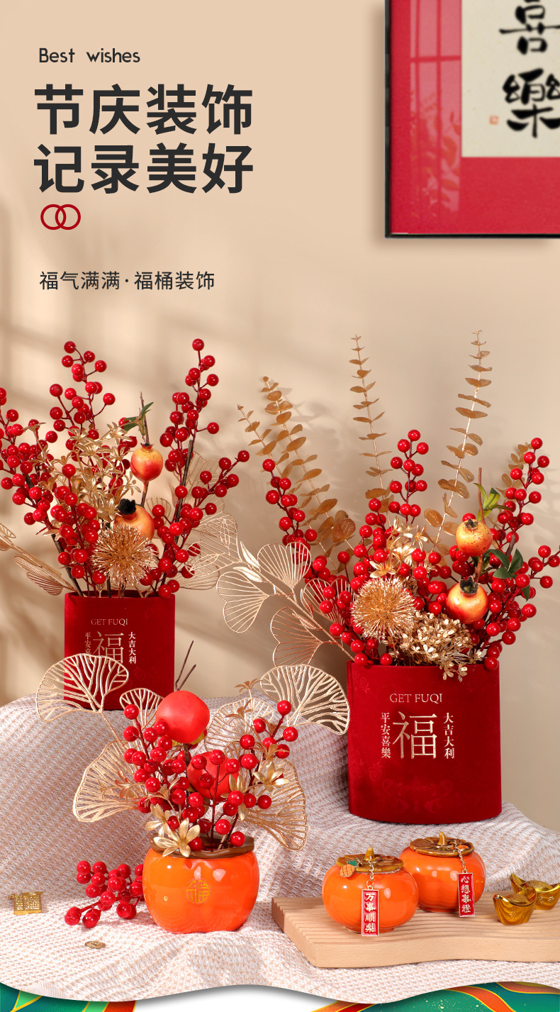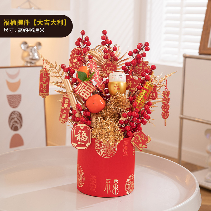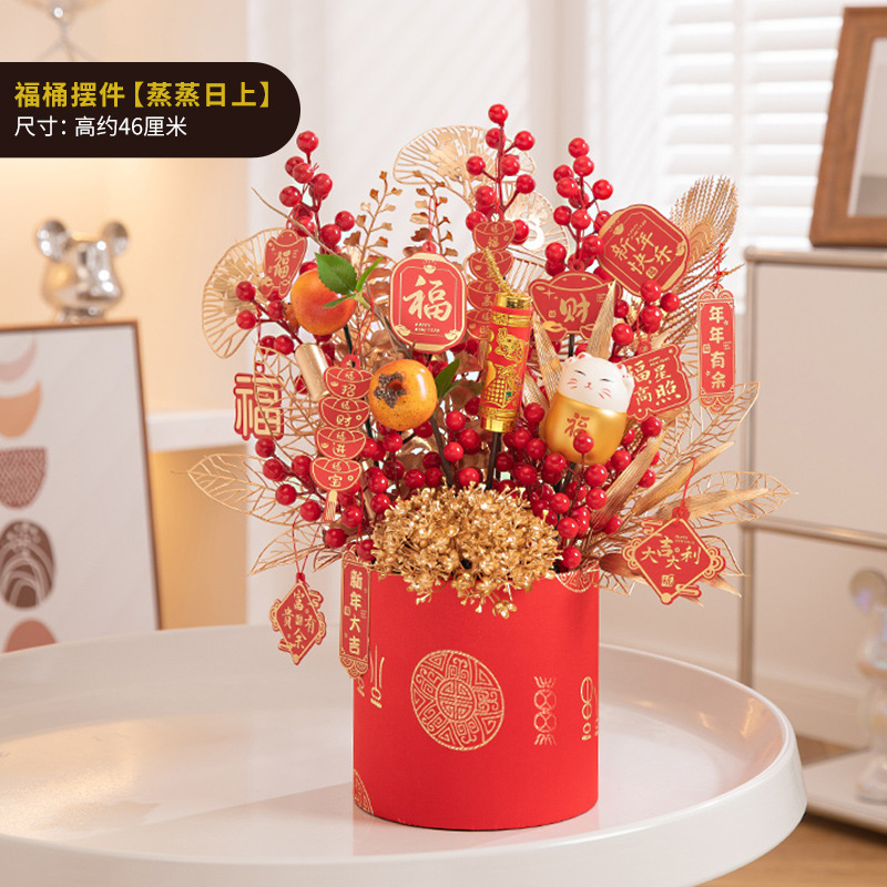 2025蛇年福桶新年装饰春节布置用品柿柿如意抱抱桶乔迁之喜摆件