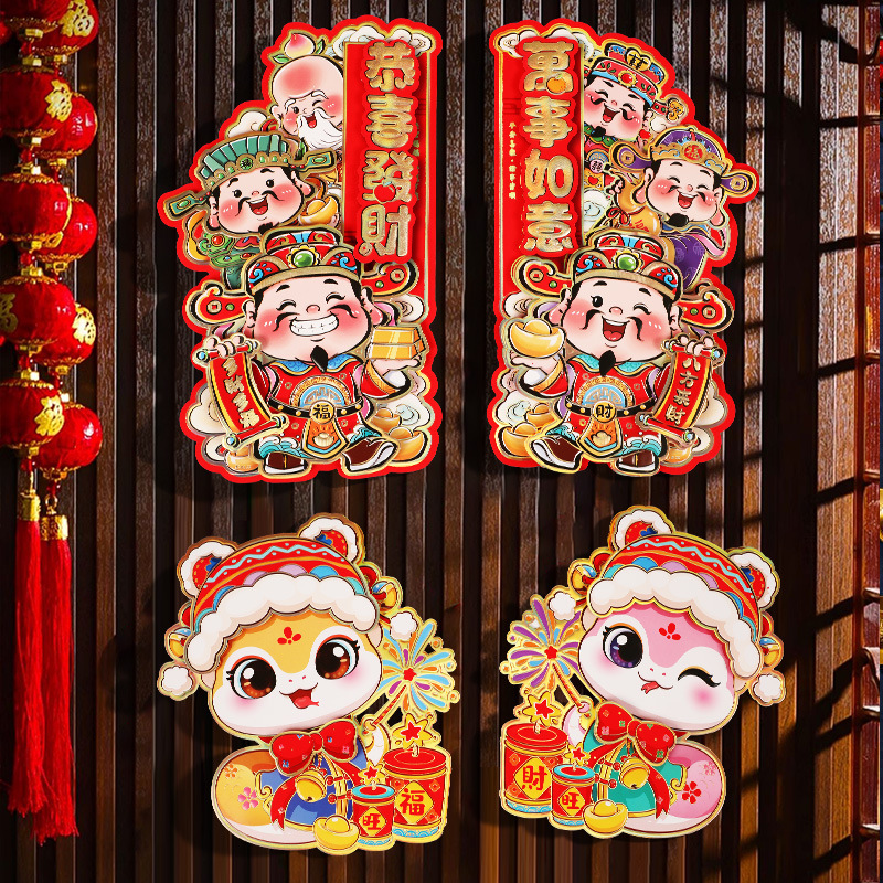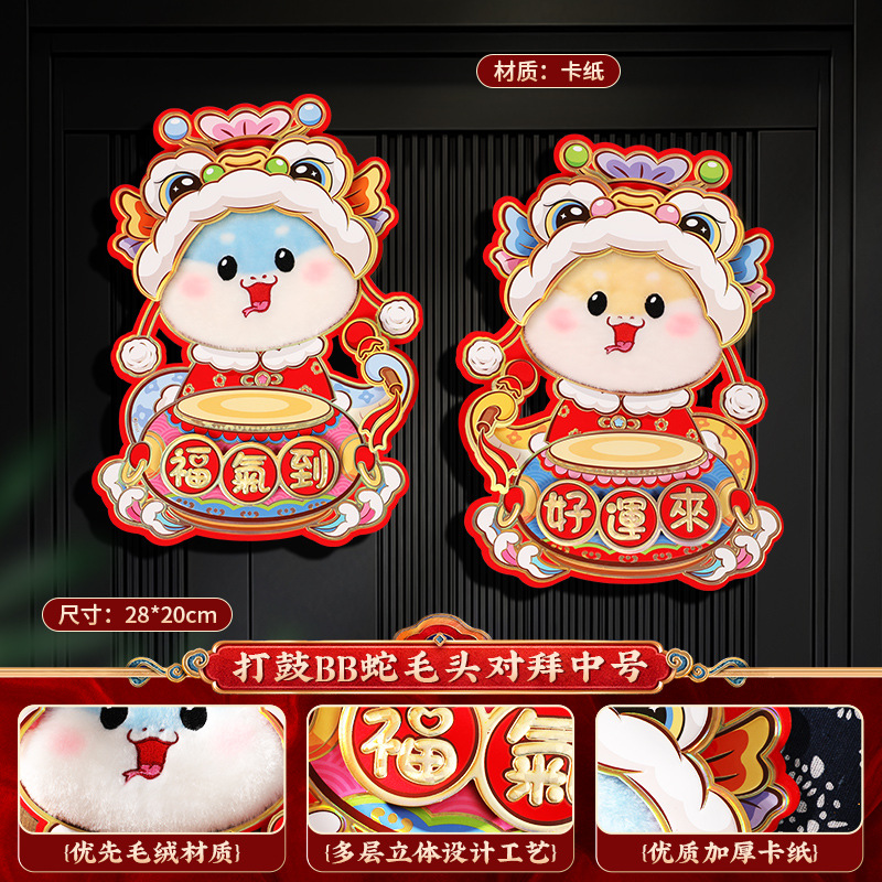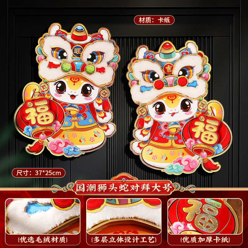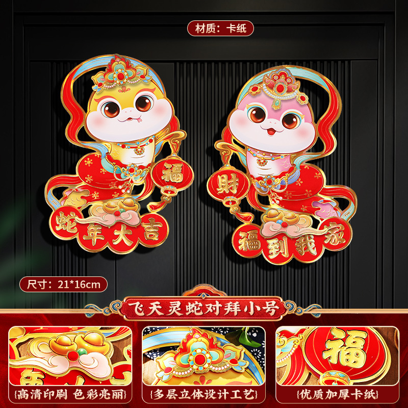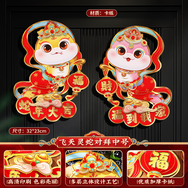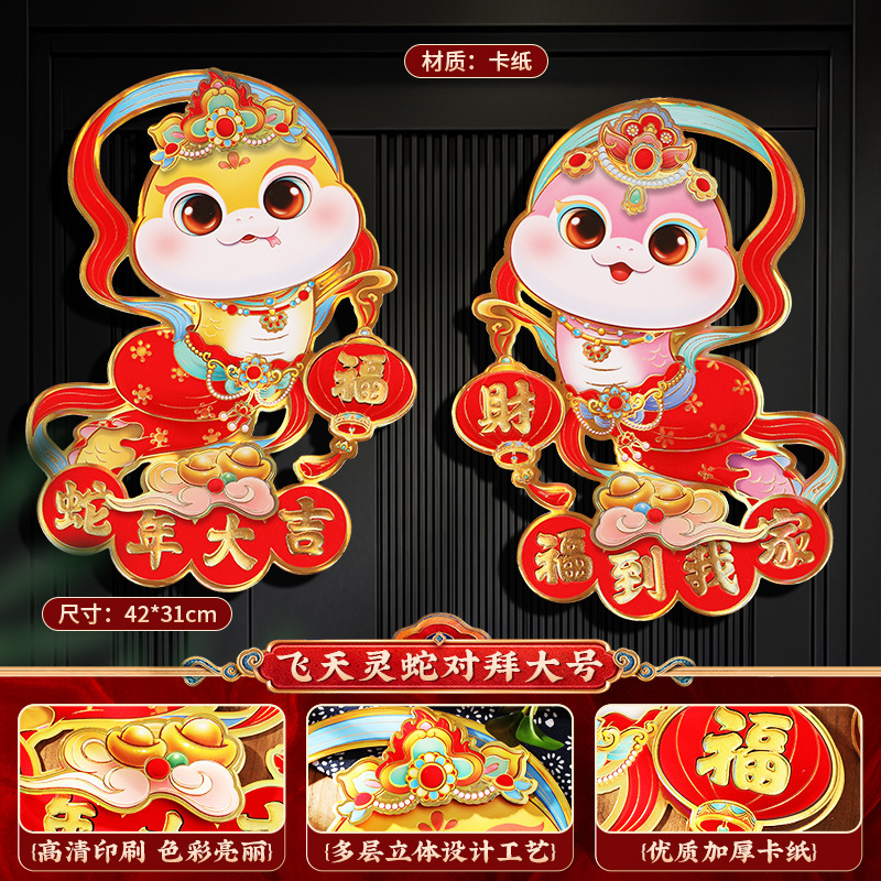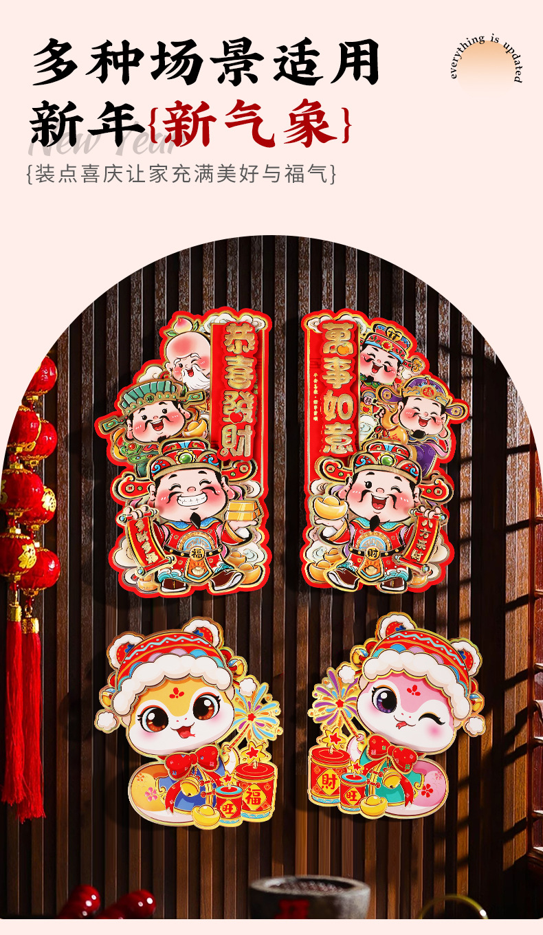 2025蛇年福字立体自粘门贴新年装饰过年生肖春节财神对拜年货用品