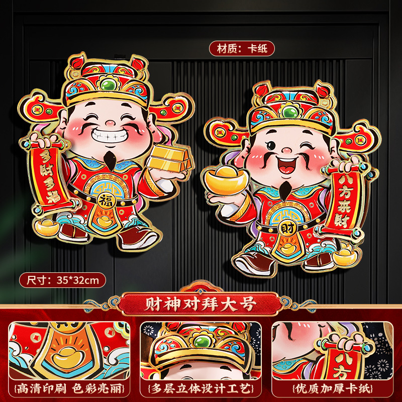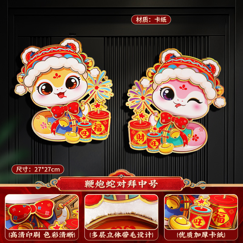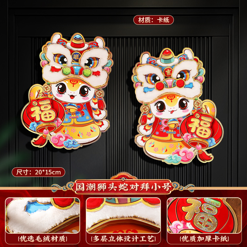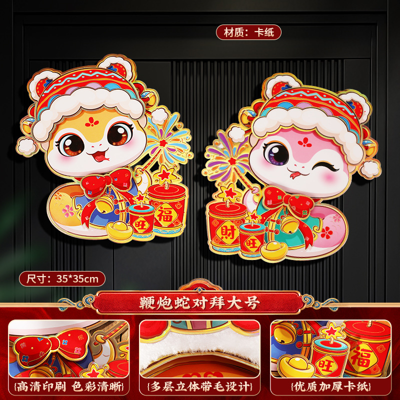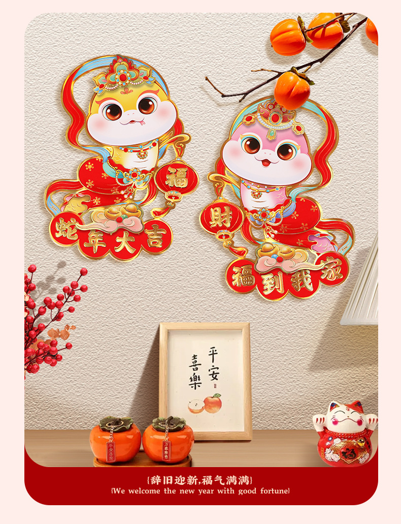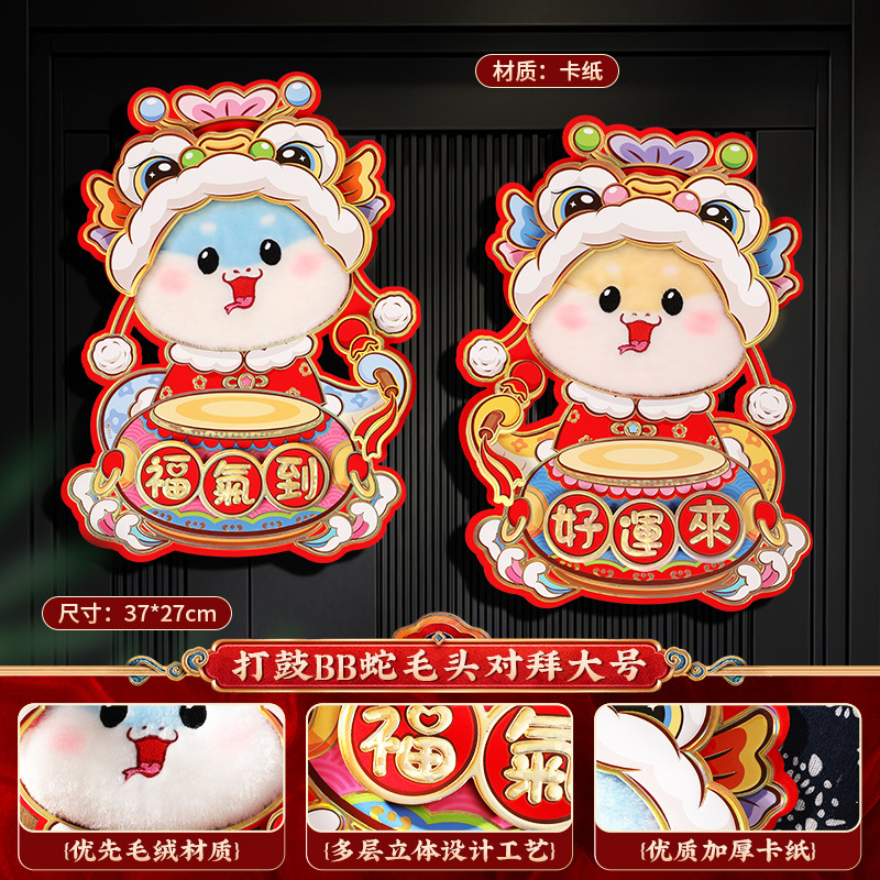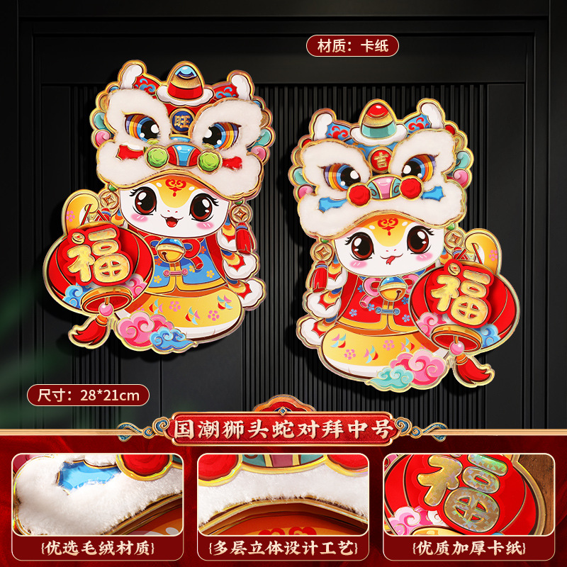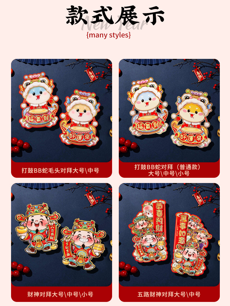 2025蛇年福字立体自粘门贴新年装饰过年生肖春节财神对拜年货用品