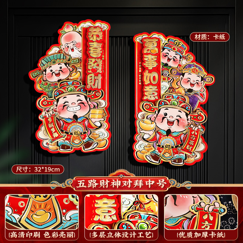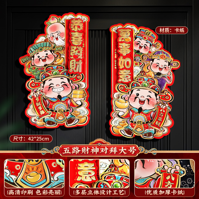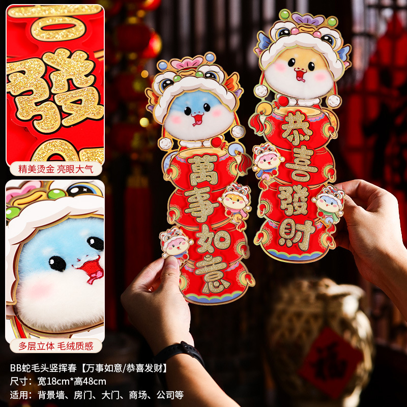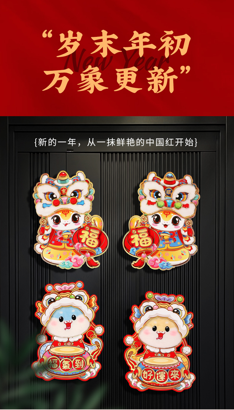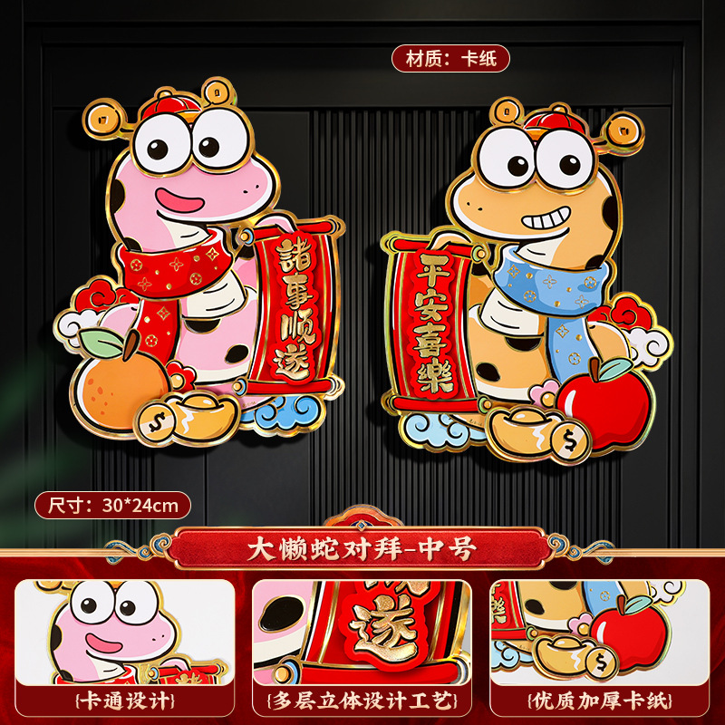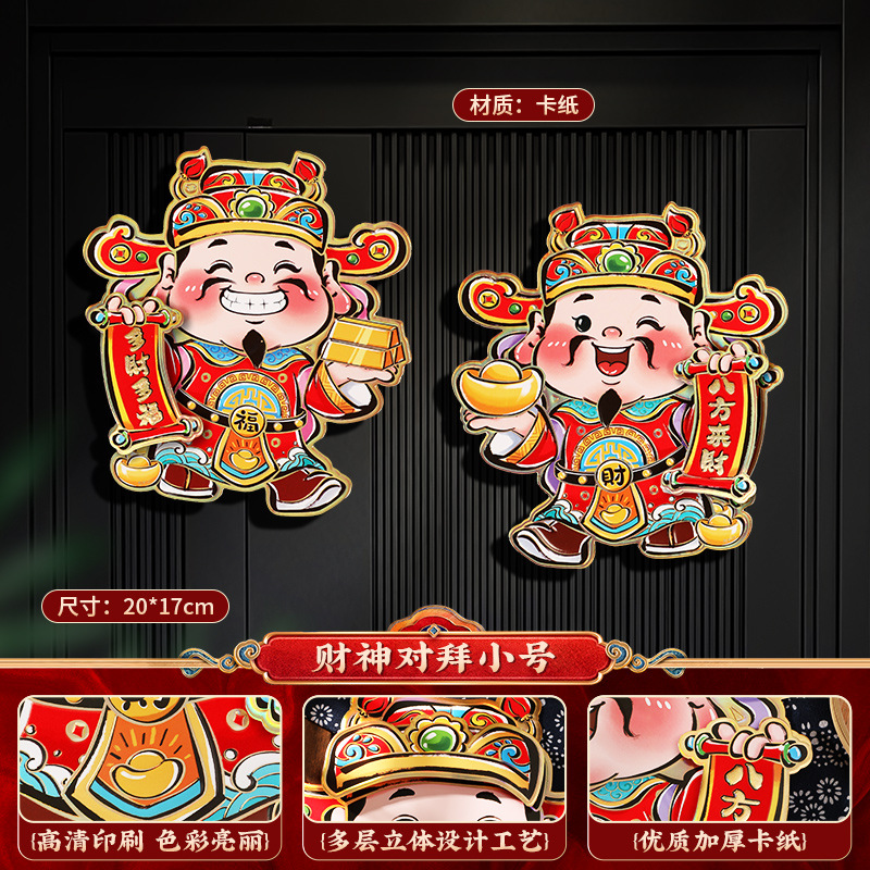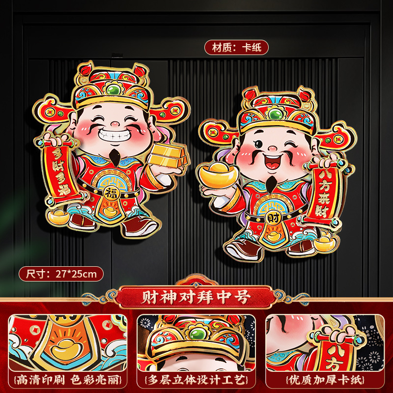 2025蛇年福字立体自粘门贴新年装饰过年生肖春节财神对拜年货用品