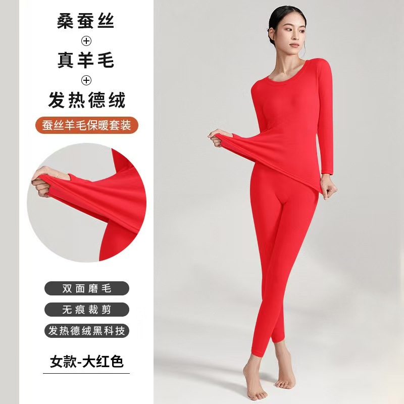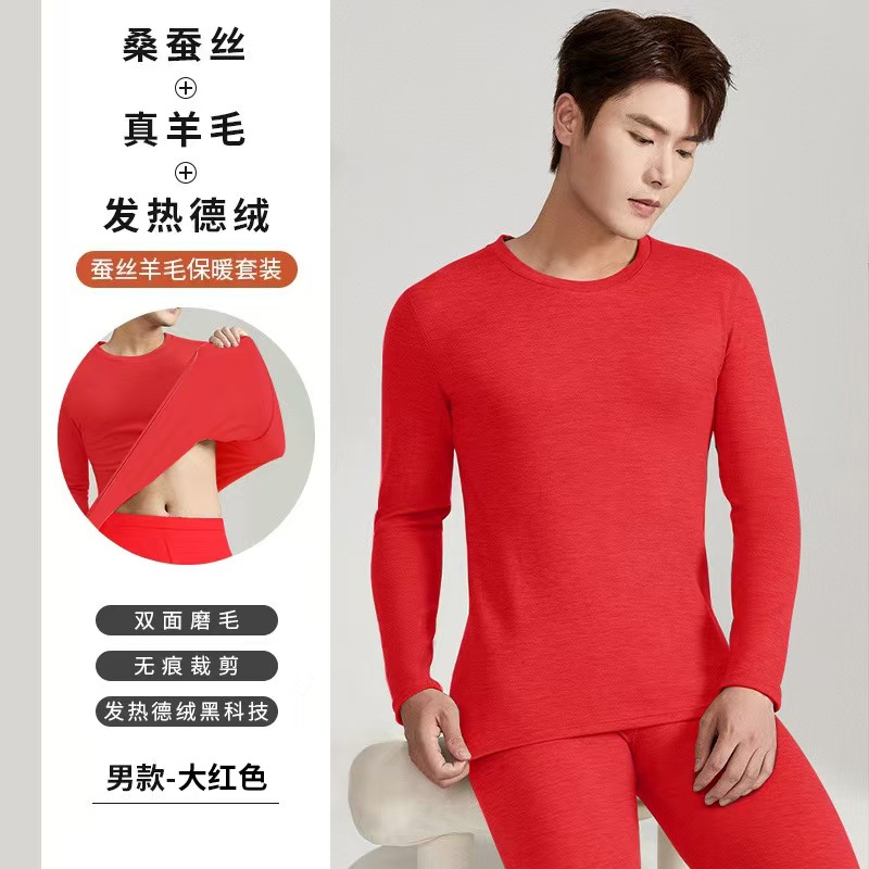 冬季德绒男士保暖内衣秋衣秋裤羊毛蚕丝加绒加厚女款无痕发热套装