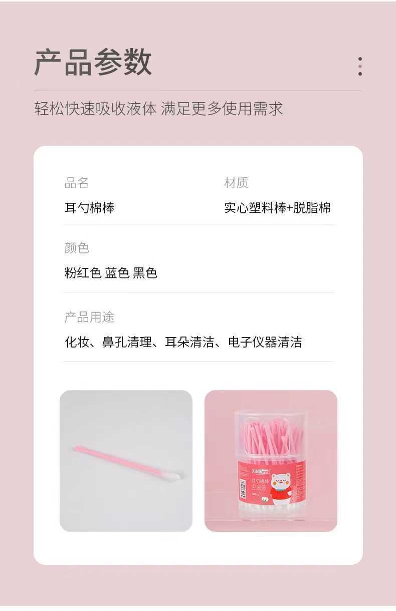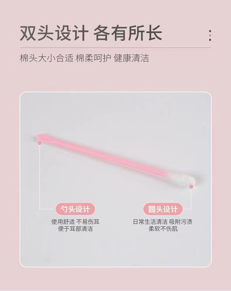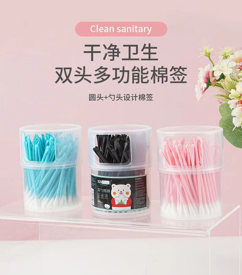 爆款100支棉签耳勺二合一 陶耳朵清洁挖耳勺棉棒消毒棉签棒可代发