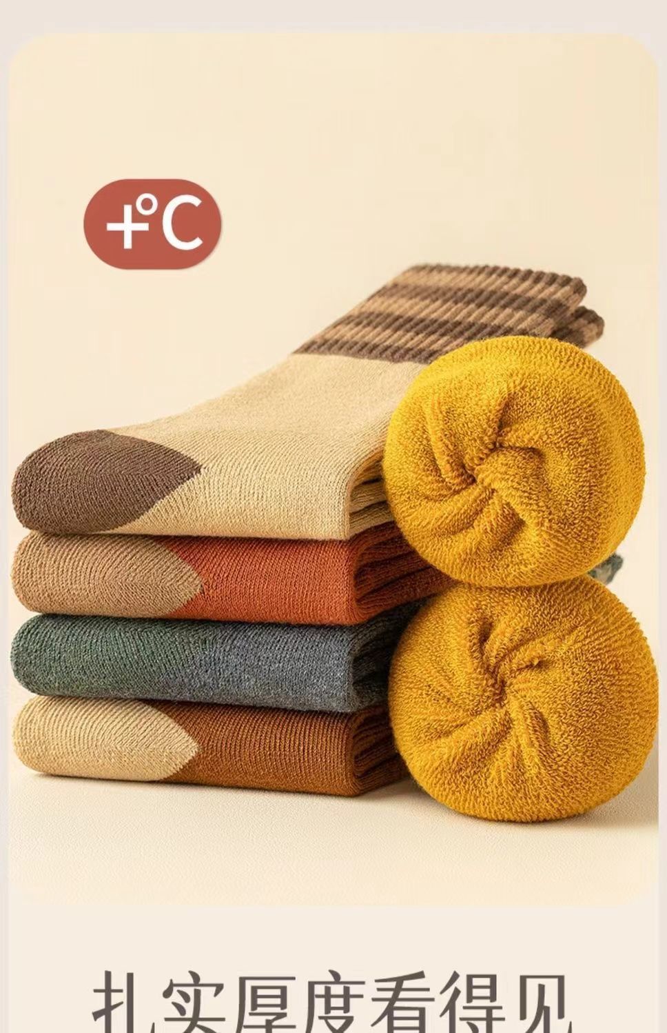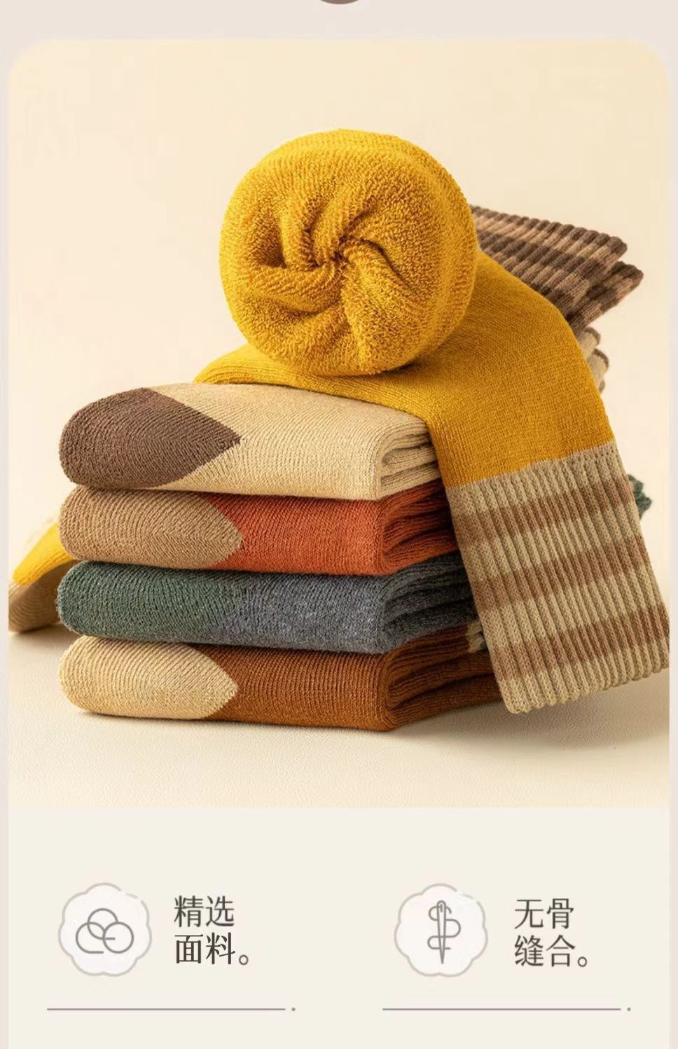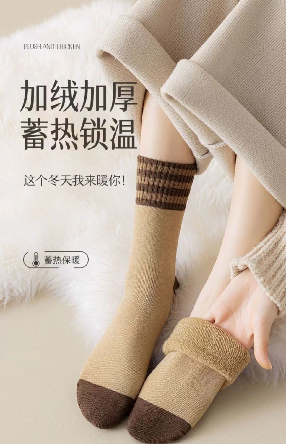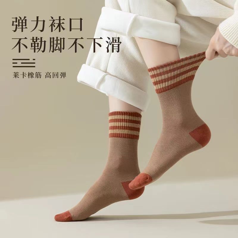 加厚袜子秋冬季毛圈袜中筒加绒保暖毛巾袜毛绒简约女士条纹新款