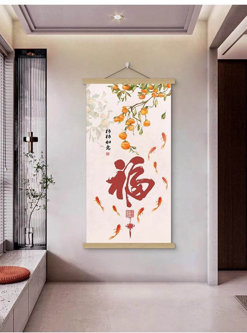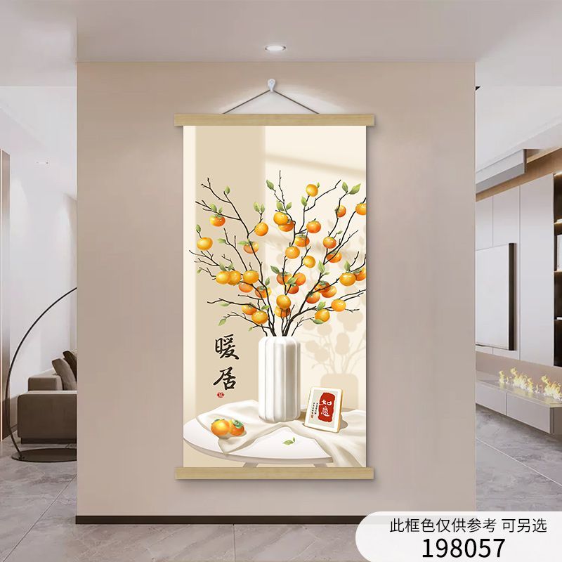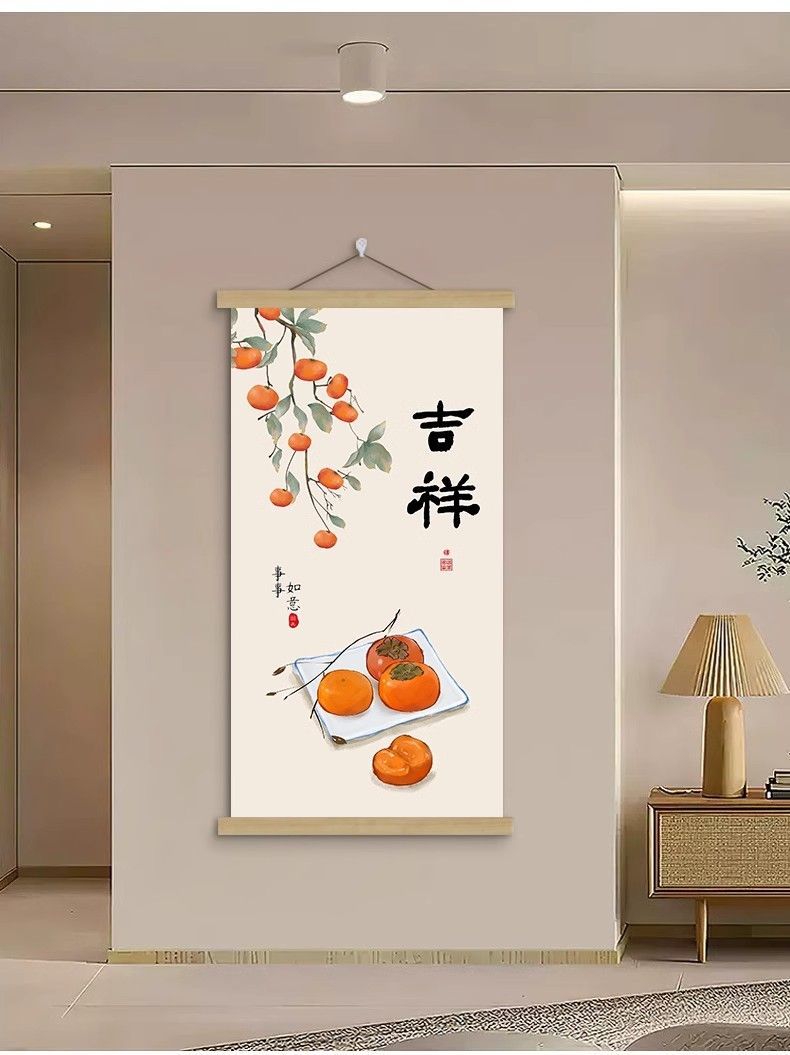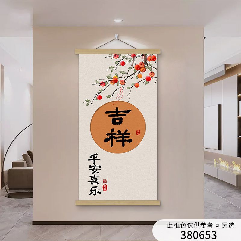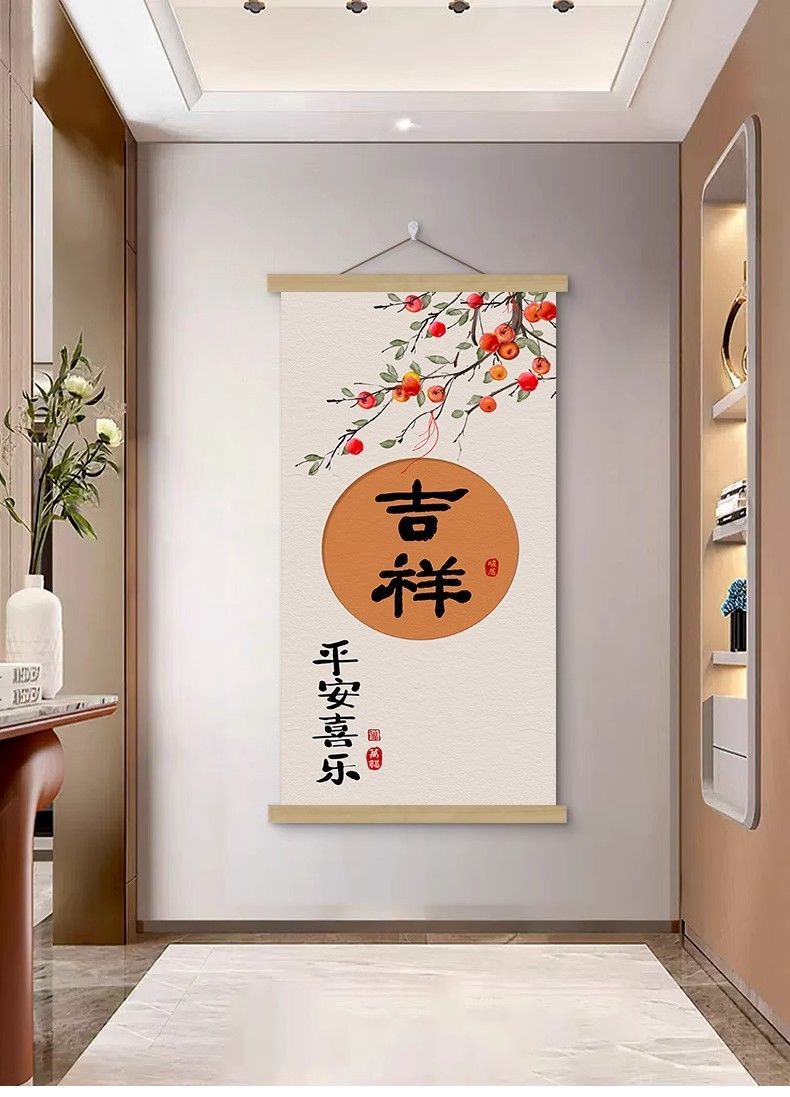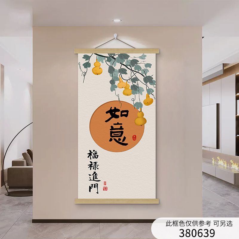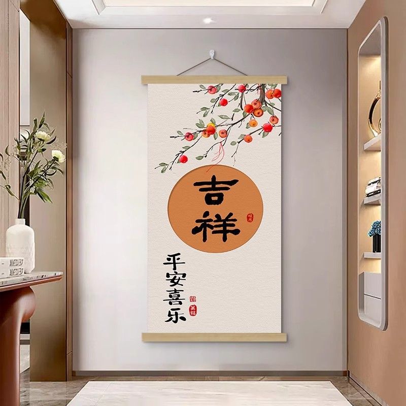 暖居玄关装饰画中式走廊过道卷轴挂画客厅入户正对门挂毯寓意壁画