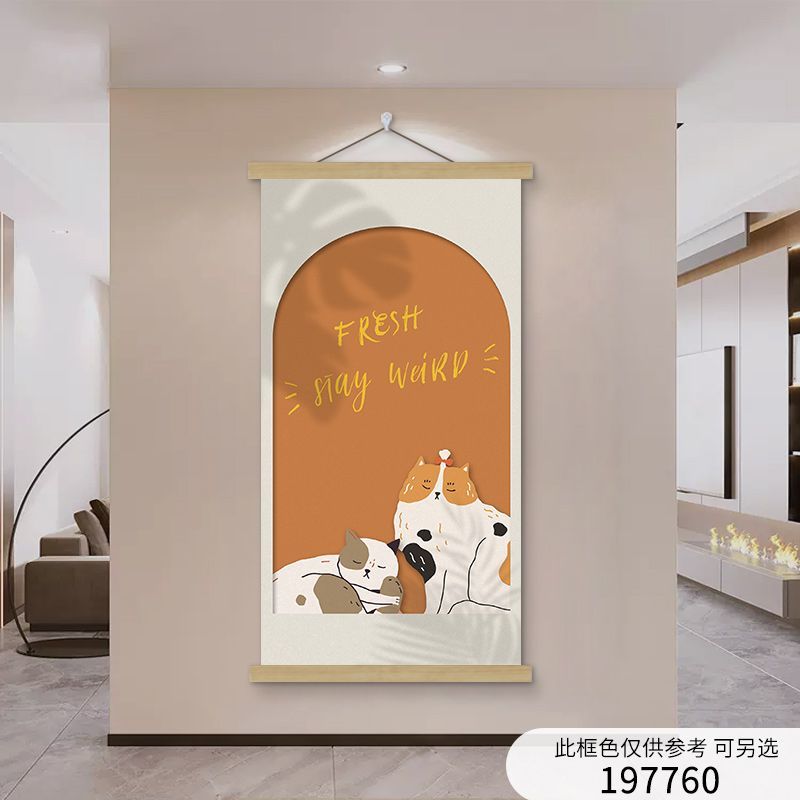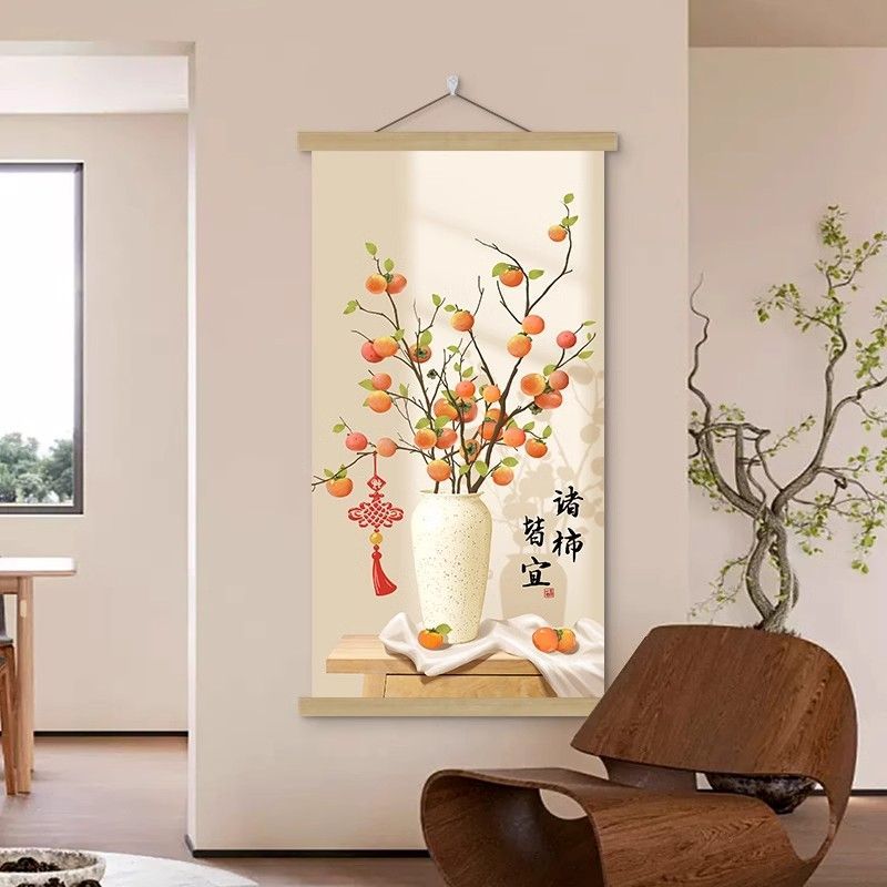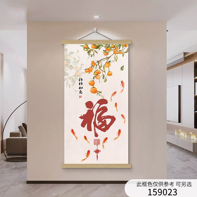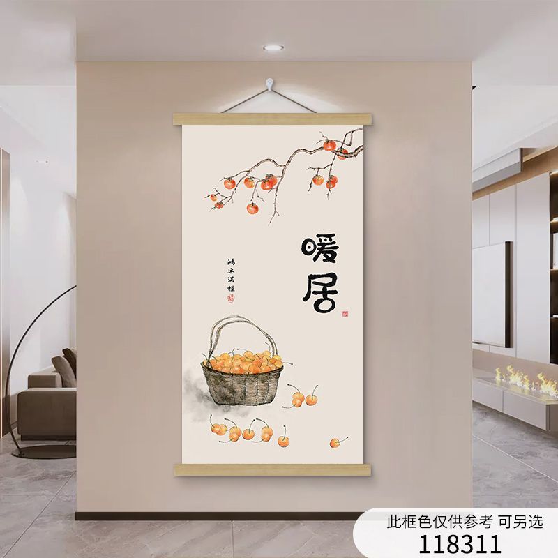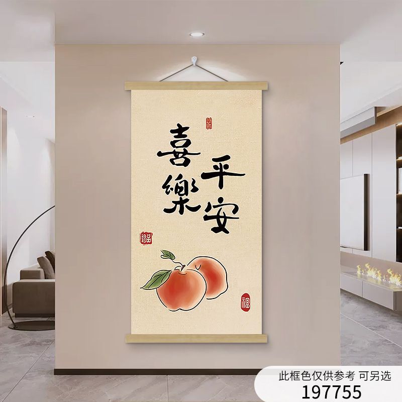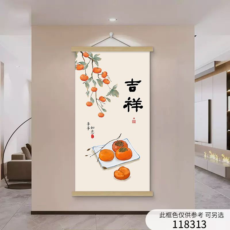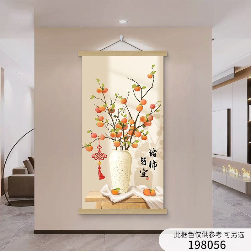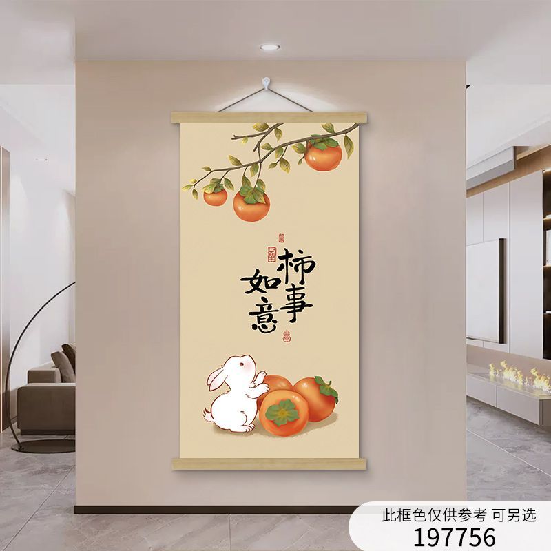 暖居玄关装饰画中式走廊过道卷轴挂画客厅入户正对门挂毯寓意壁画