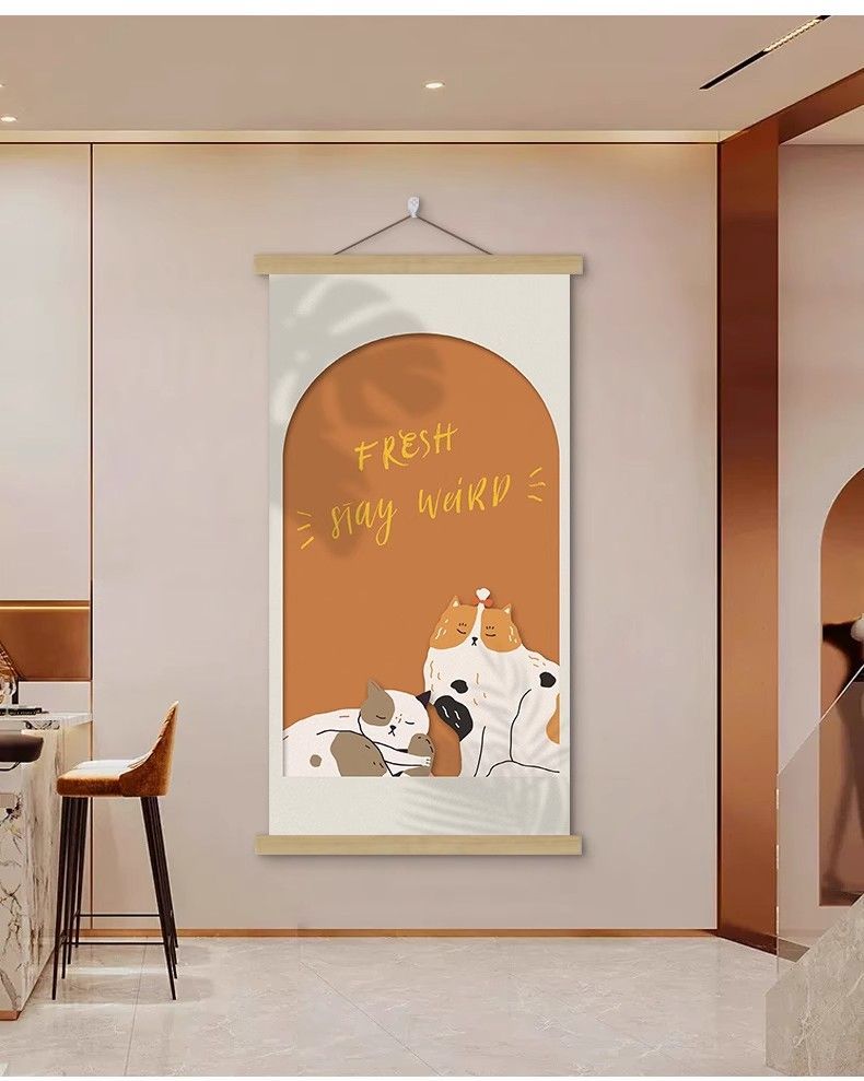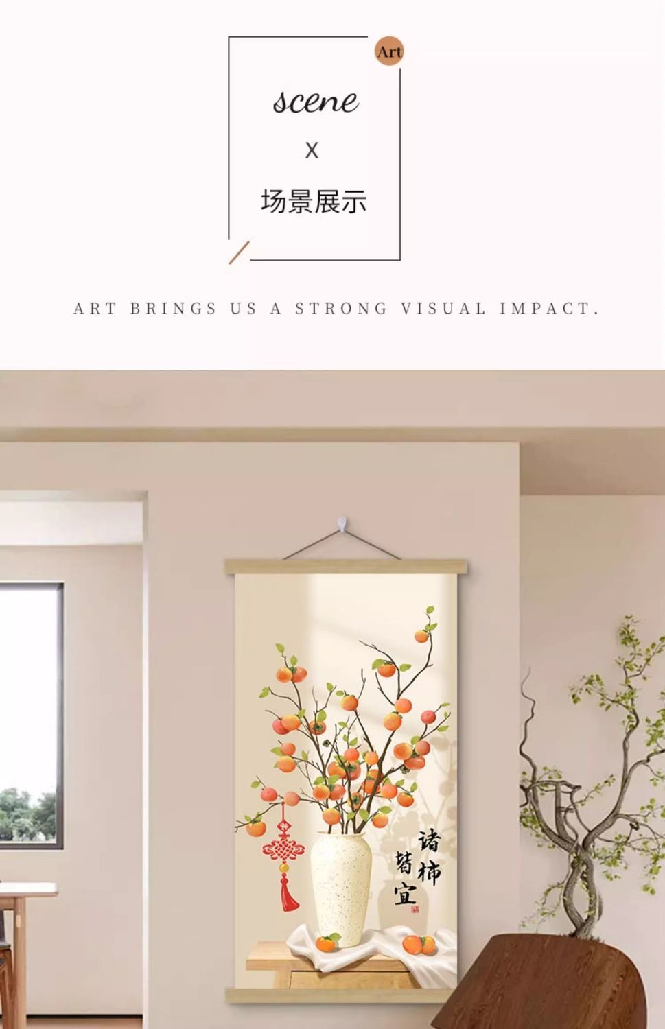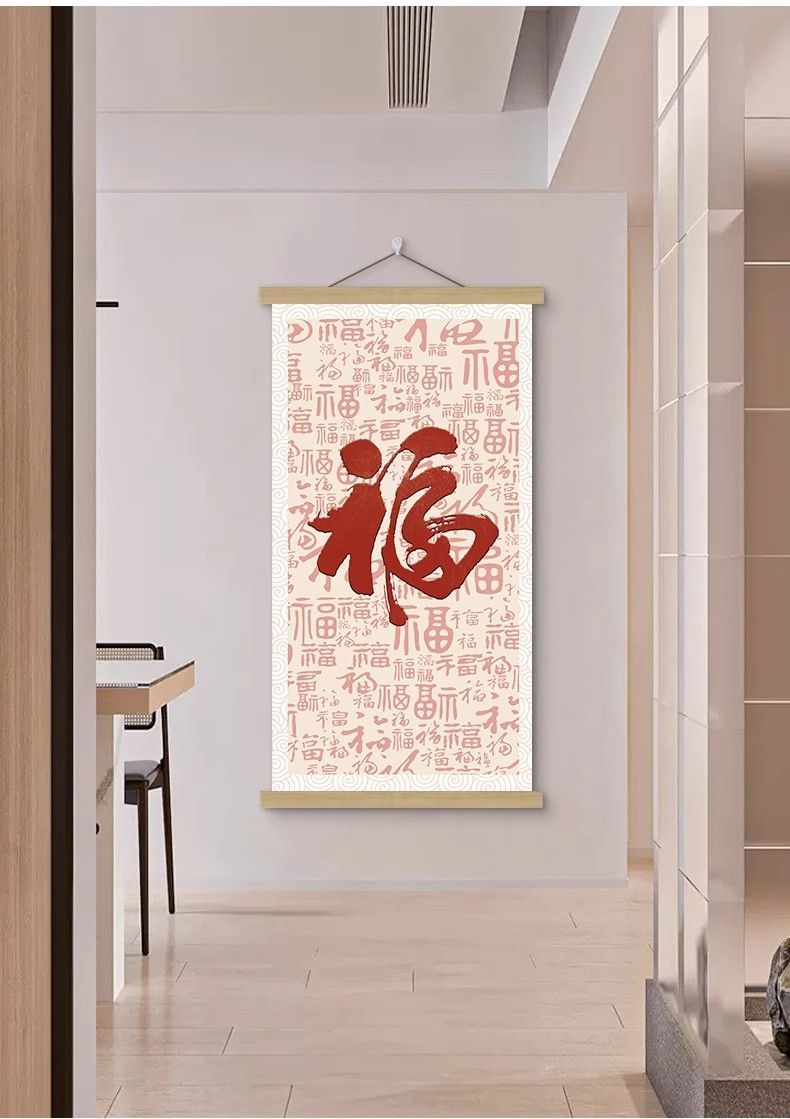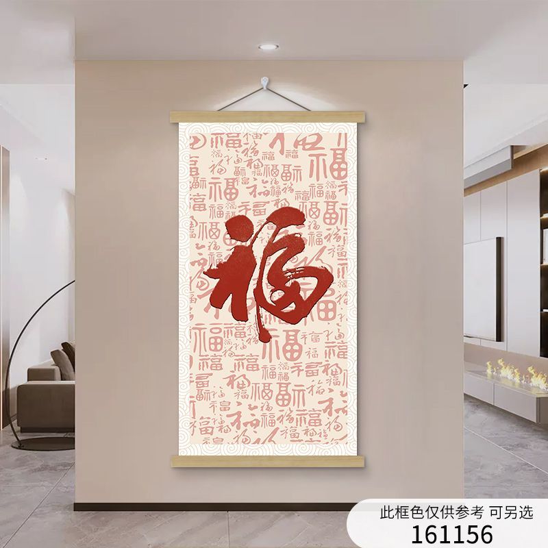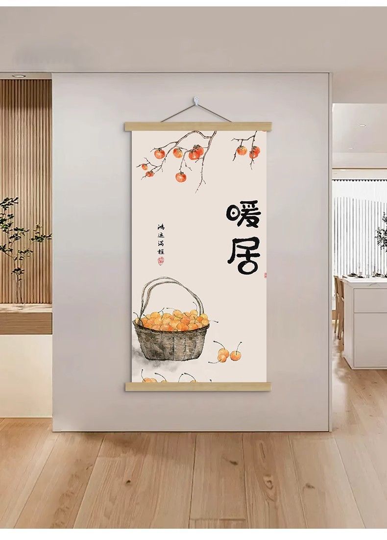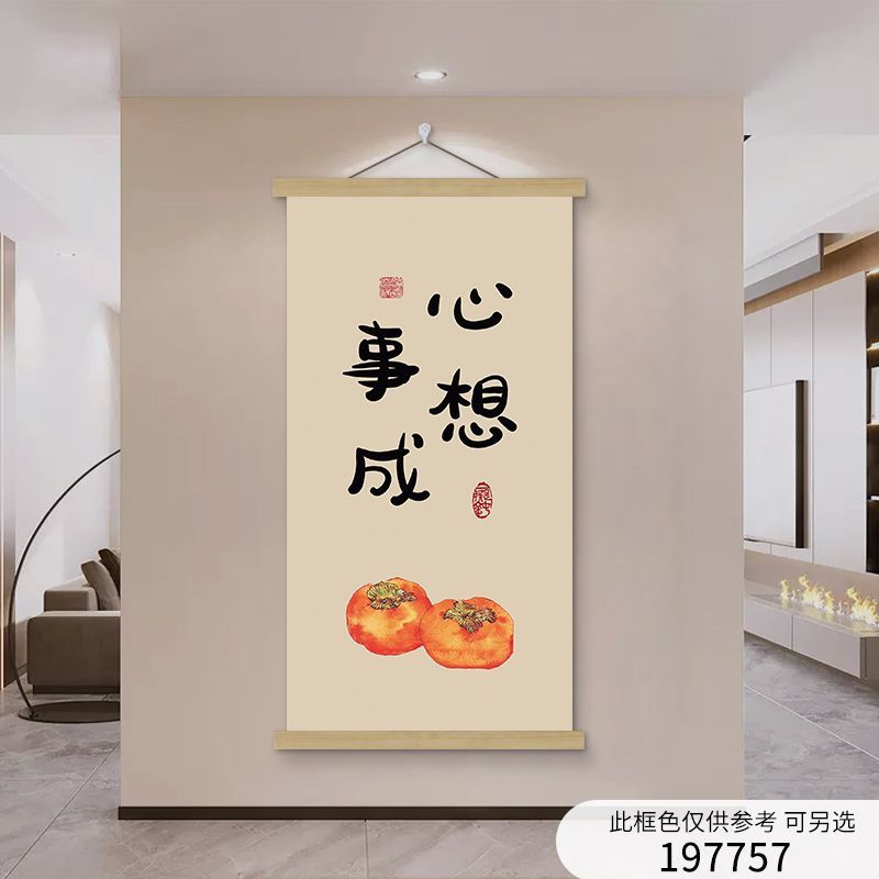 暖居玄关装饰画中式走廊过道卷轴挂画客厅入户正对门挂毯寓意壁画