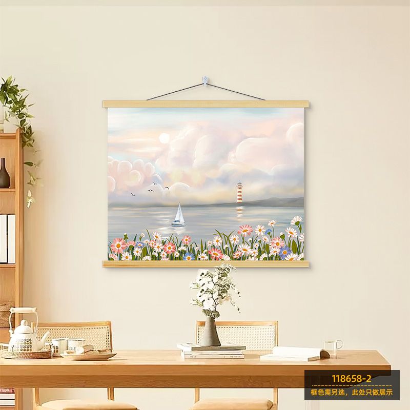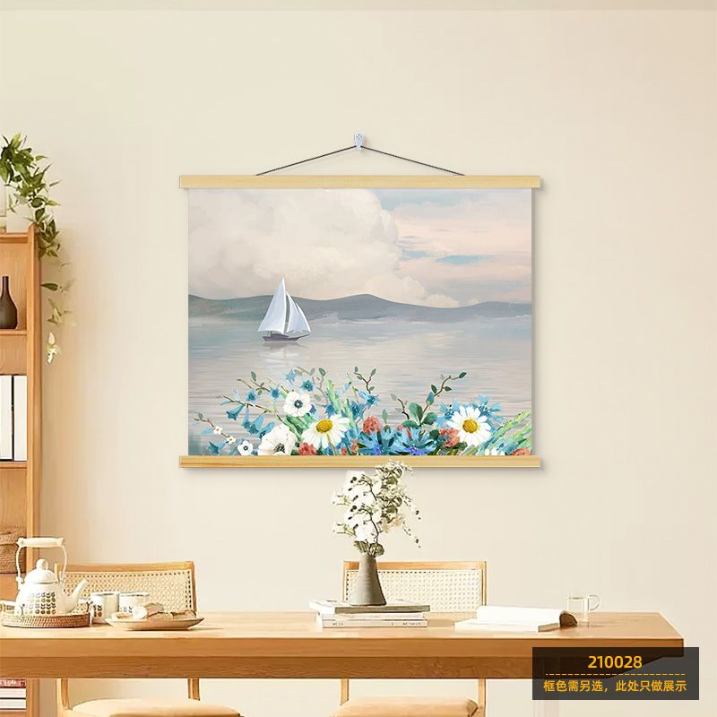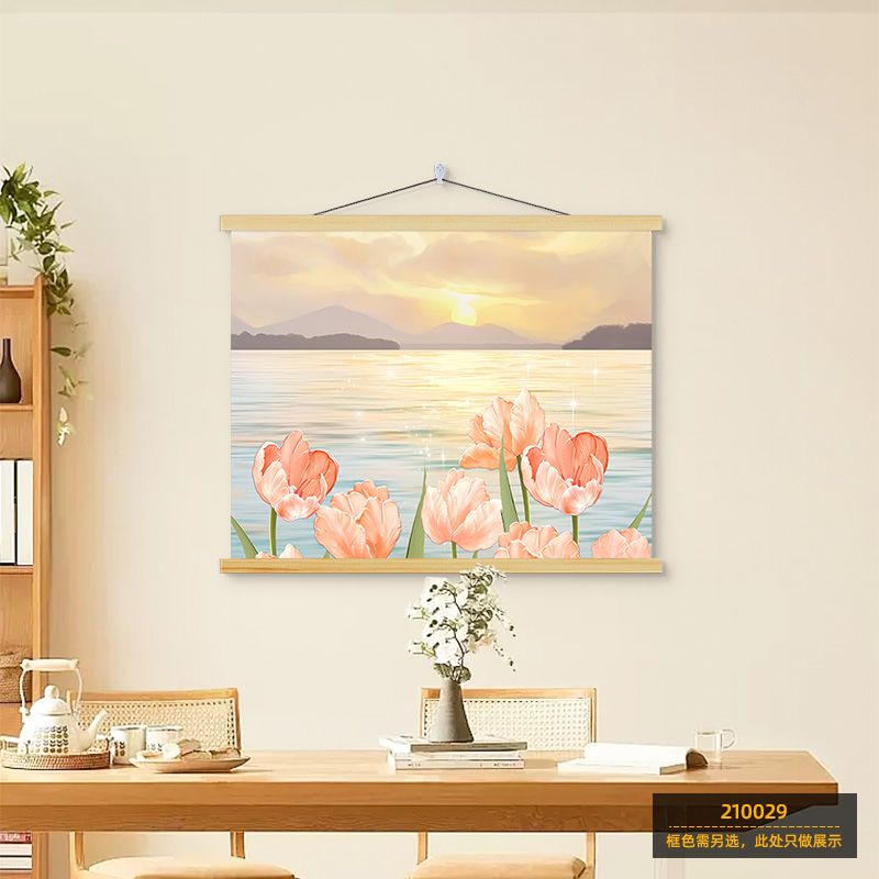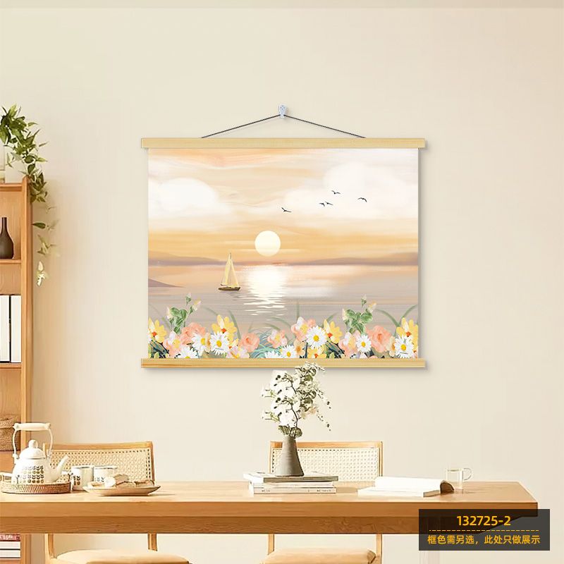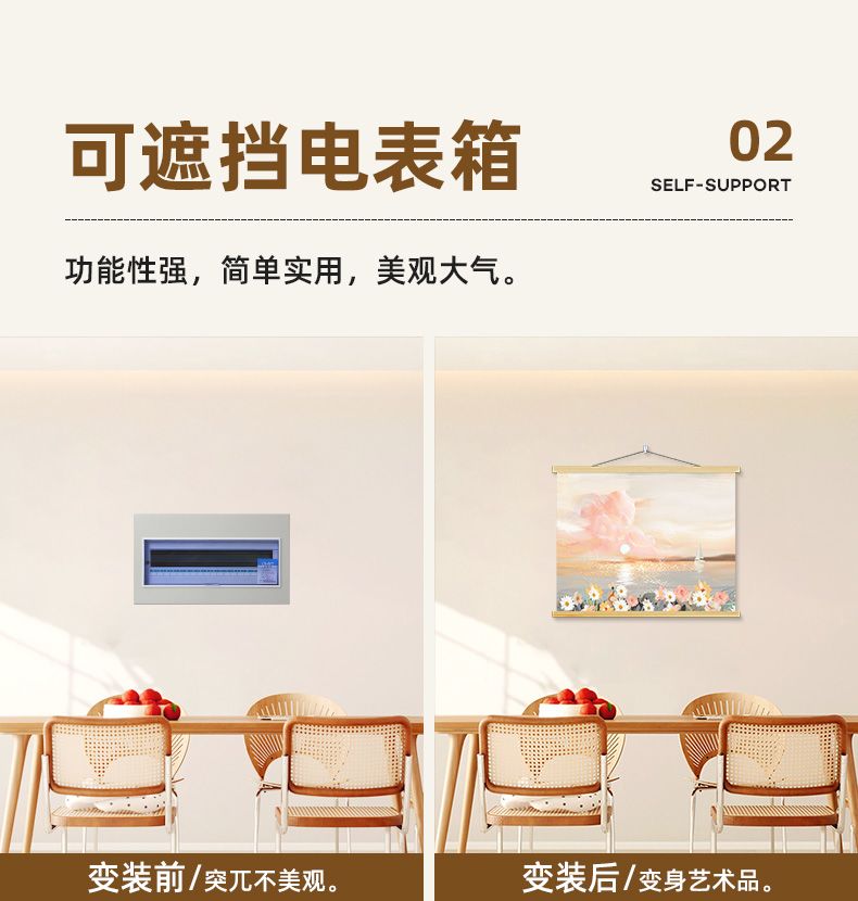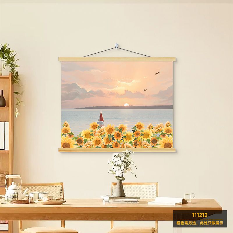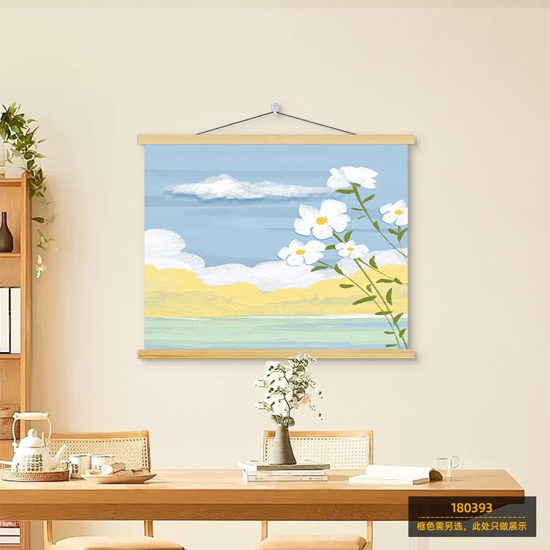 现代简约餐厅装饰画花海壁布挂布风景油画电表箱遮挡挂画实木挂饰