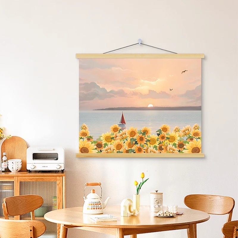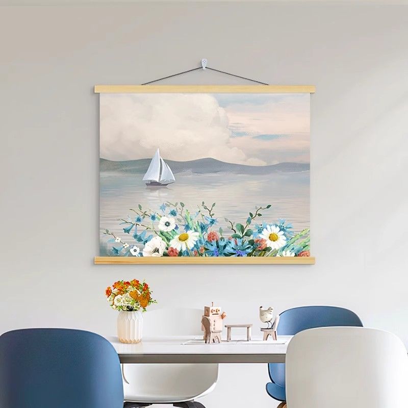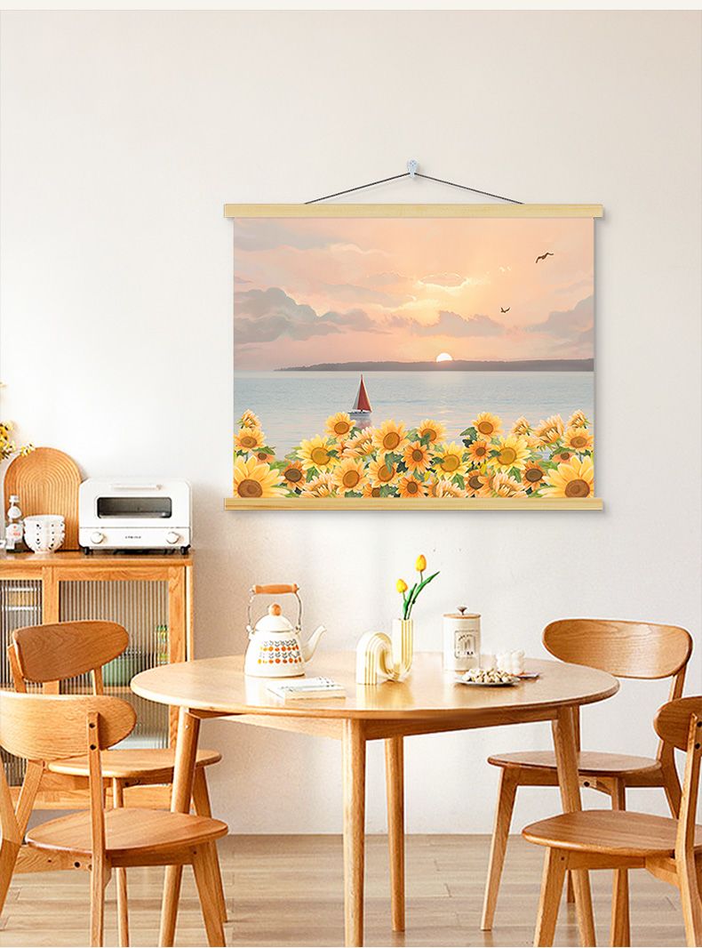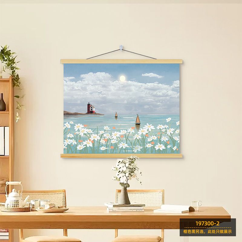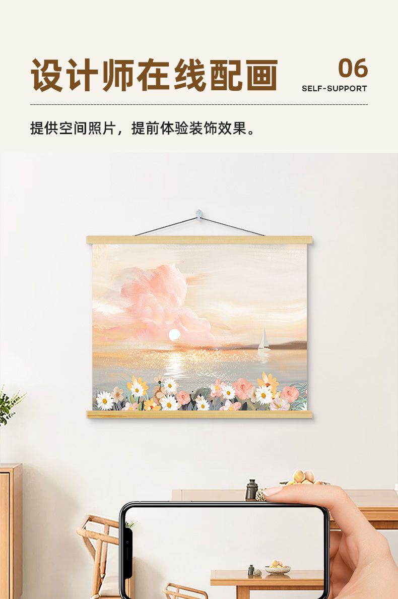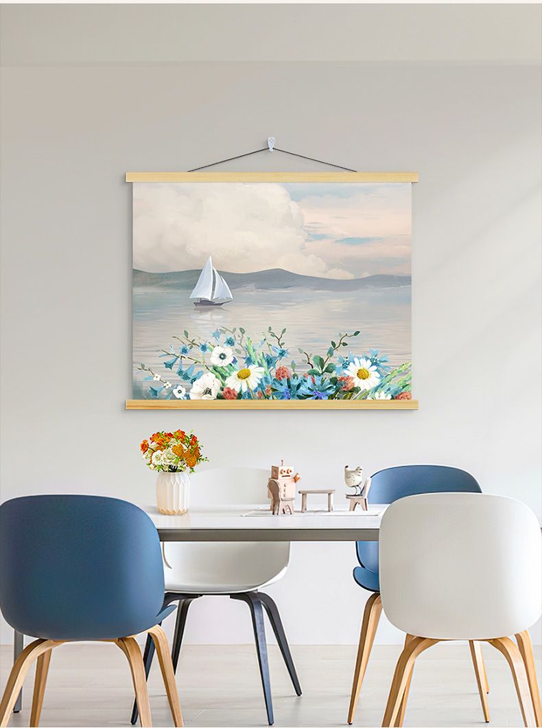 现代简约餐厅装饰画花海壁布挂布风景油画电表箱遮挡挂画实木挂饰
