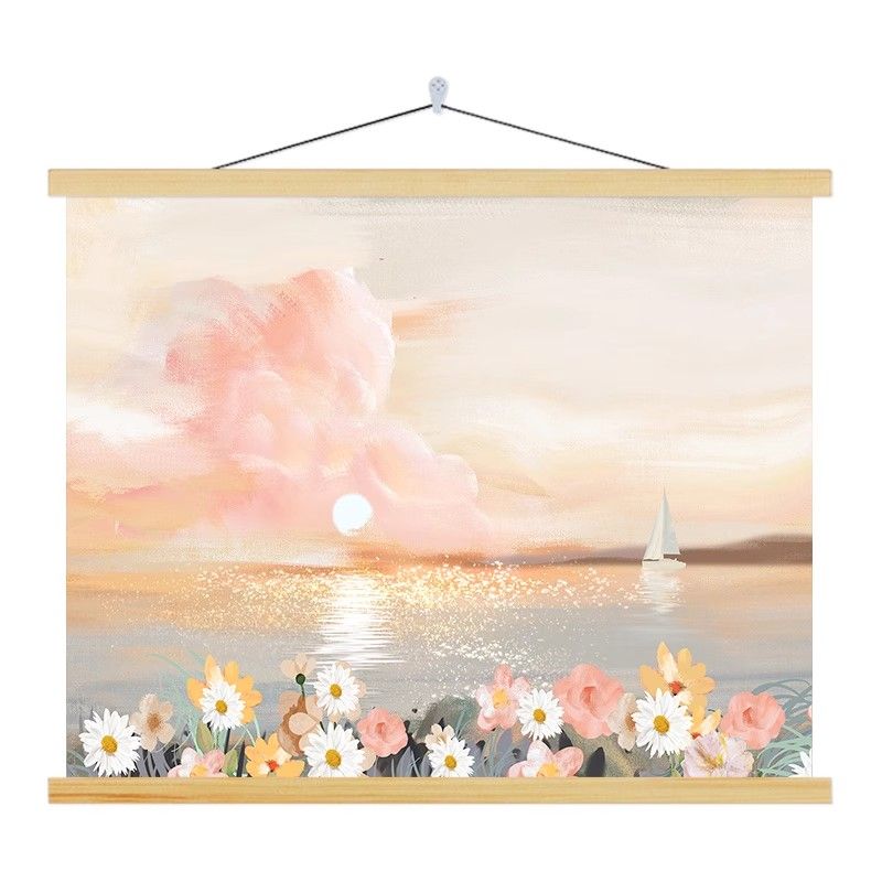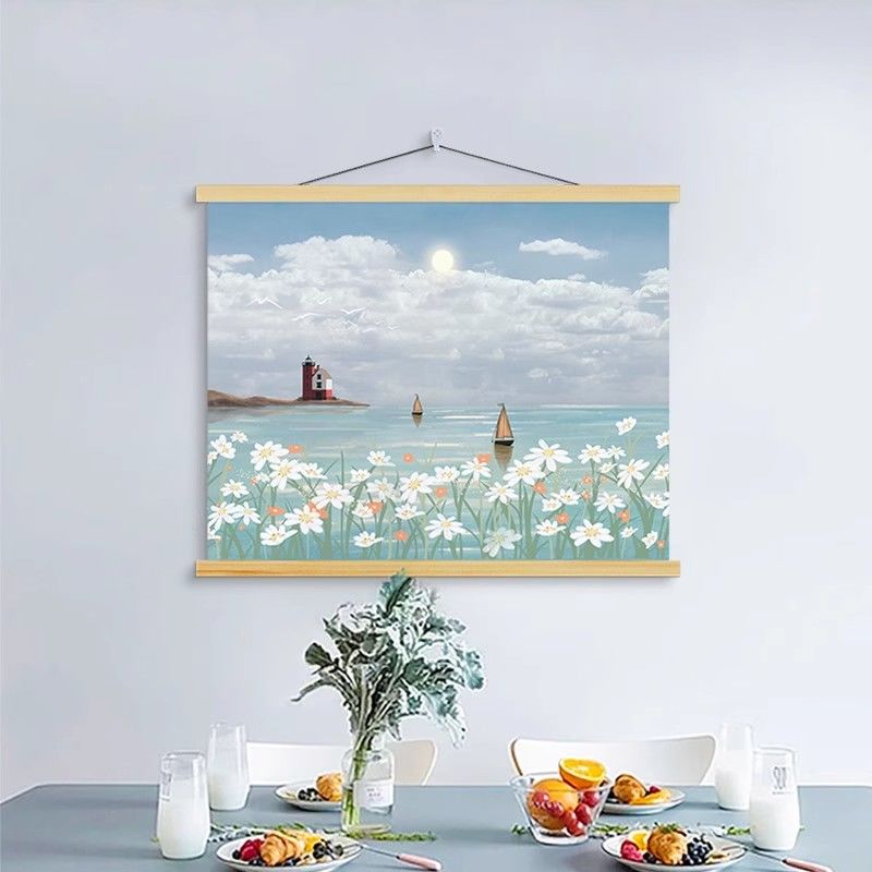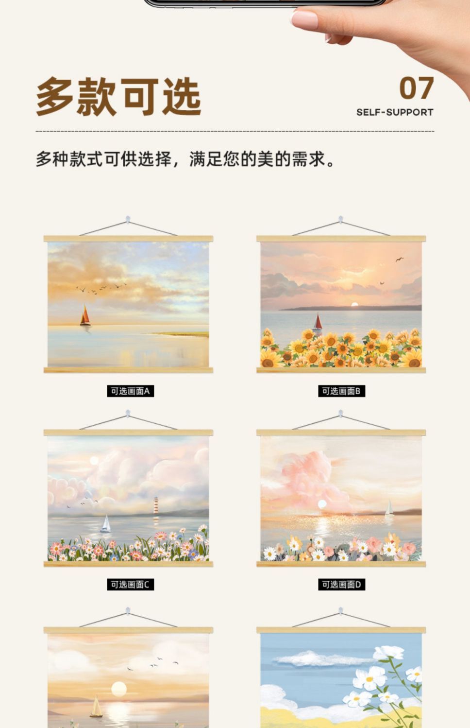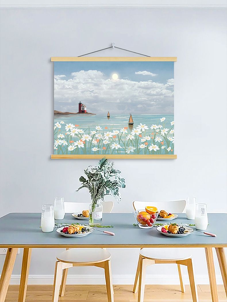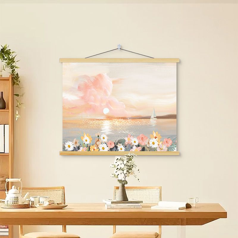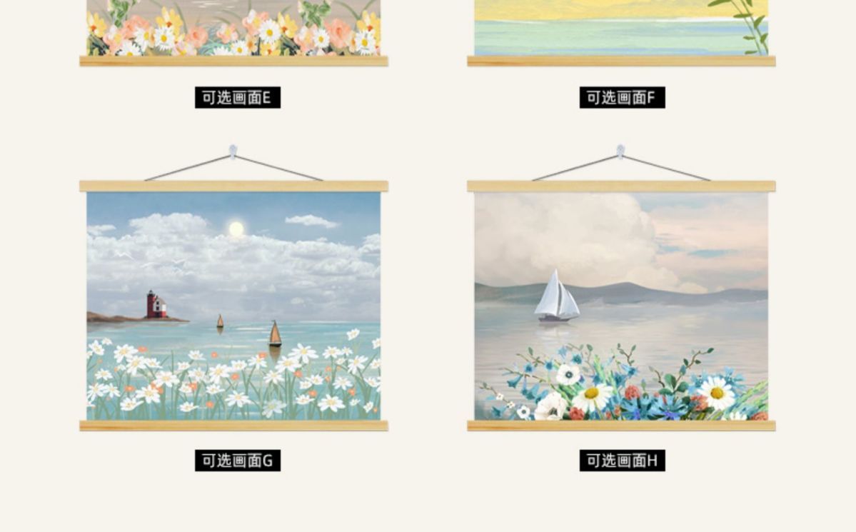 现代简约餐厅装饰画花海壁布挂布风景油画电表箱遮挡挂画实木挂饰