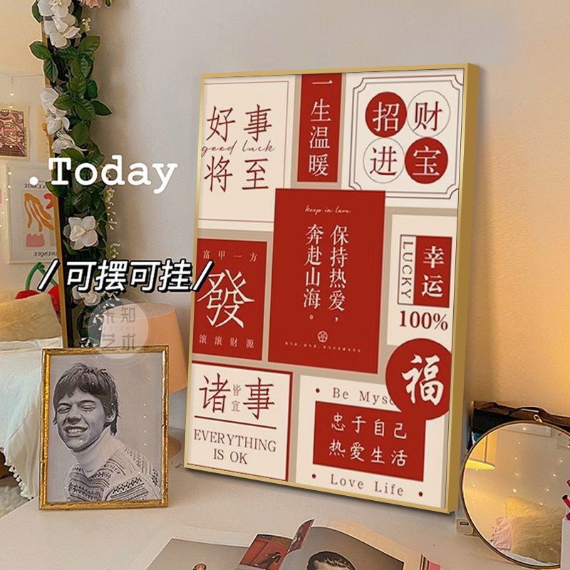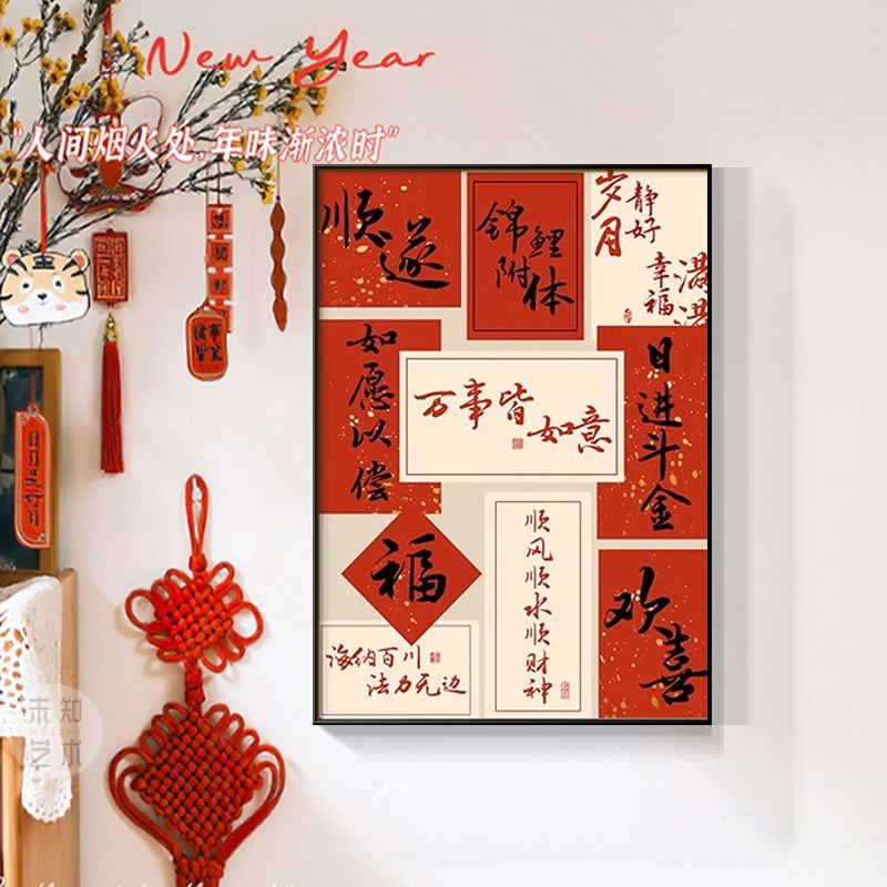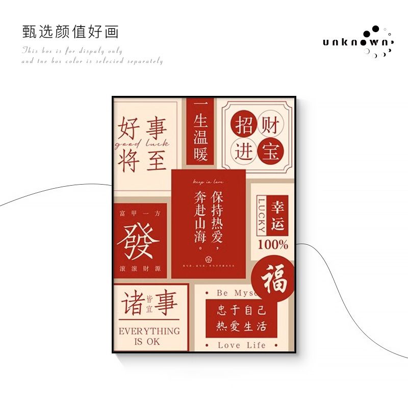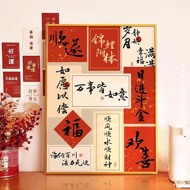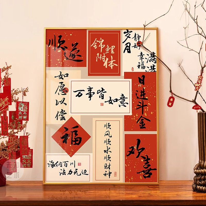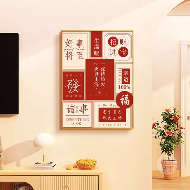 新中式国潮文字装饰壁画寓意好入户玄关挂画餐厅客厅电视酒柜摆画