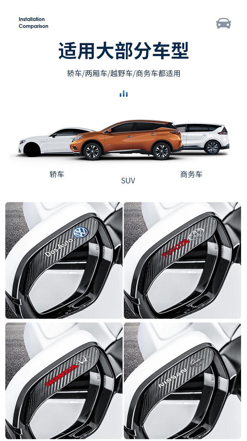 后视镜碳纤纹防雨眉汽车通用反光镜晴雨挡雨防尘挡板加宽改装配件