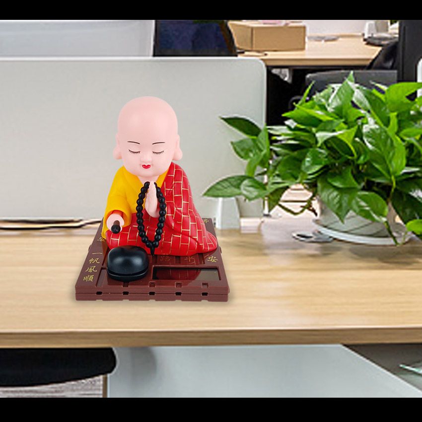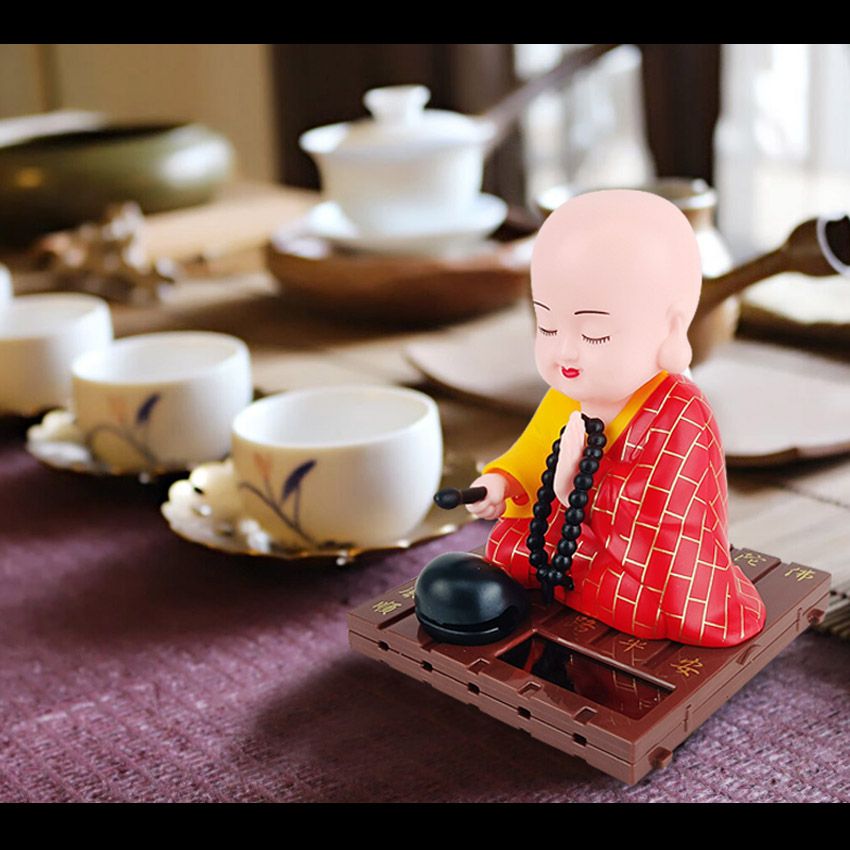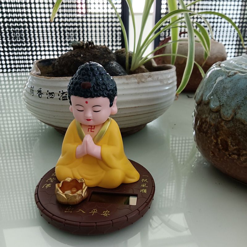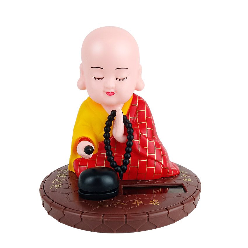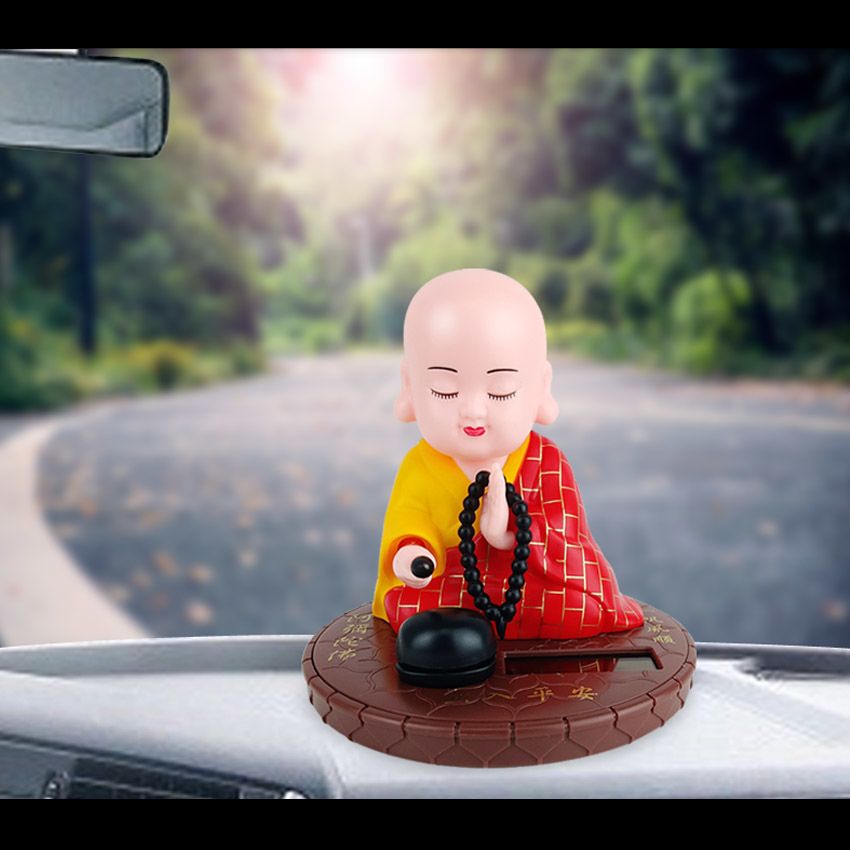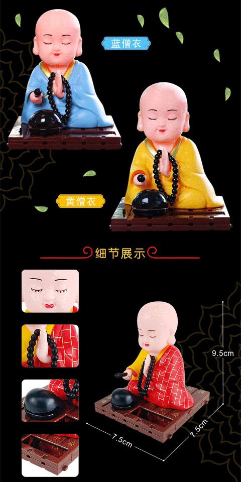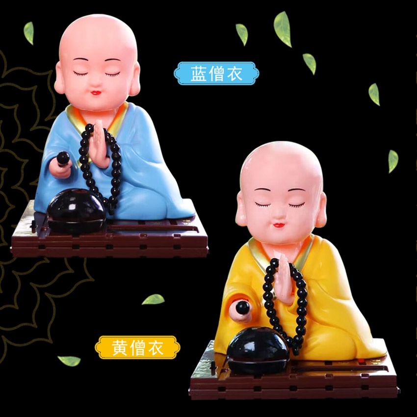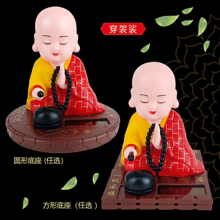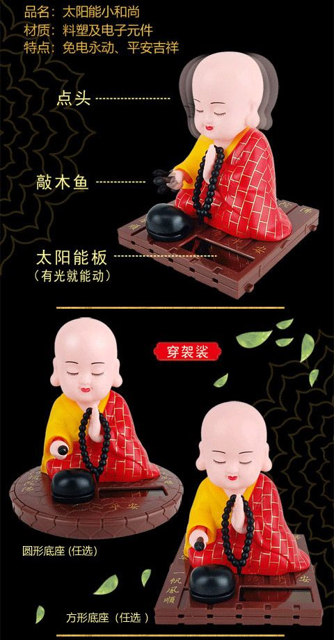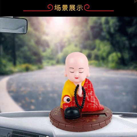 小和尚太阳能点头敲木鱼汽车中控台摆件车内居家饰品公仔精品配件