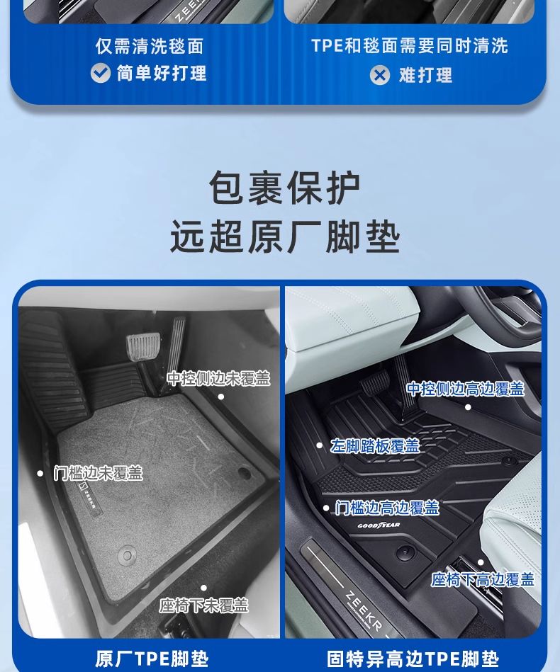 GOODYEAR固特异适用极氪001/007TPE脚垫汽车脚垫后备箱垫地垫配件
