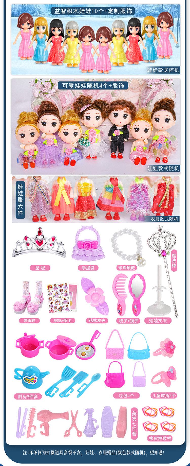 | blink version: 60cm 218 pieces of clothing-15 dolls-gift bag ①-high-end gift box(眨眼版:60厘米218件衣饰-15个娃娃-礼包①-高档礼盒) | USD $10.17 | 7995 set available |
