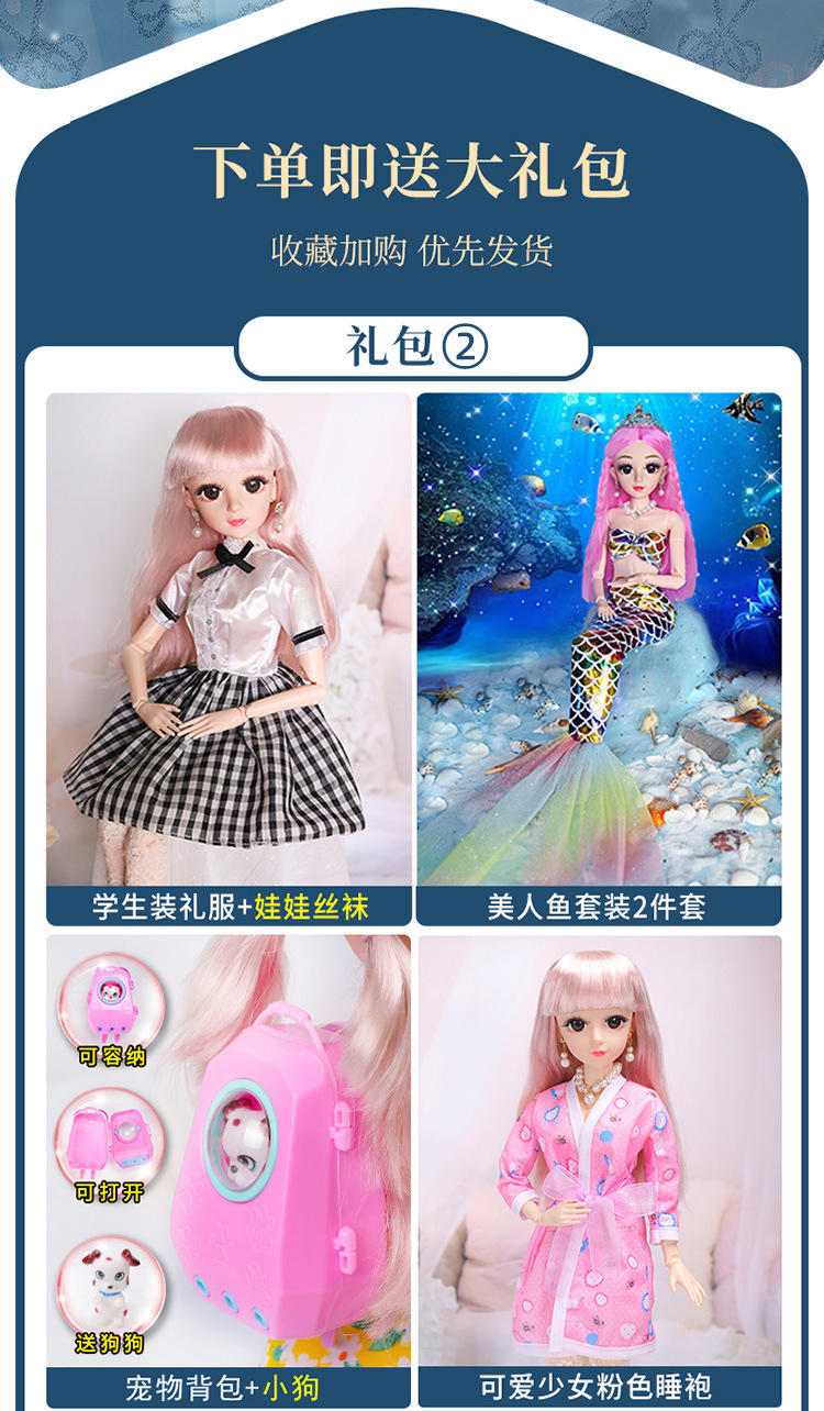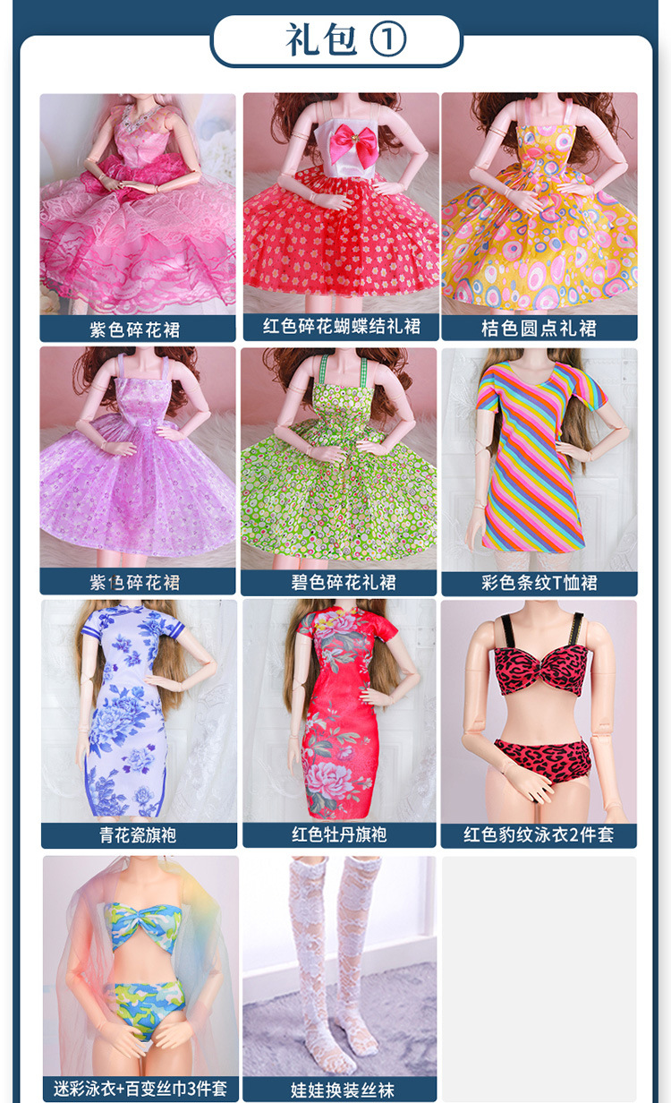 | blink version: 60cm 218 pieces of clothing-15 dolls-gift bag ①-high-end gift box(眨眼版:60厘米218件衣饰-15个娃娃-礼包①-高档礼盒) | USD $11.39 | 7995 set available |