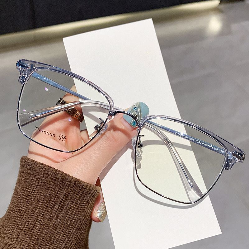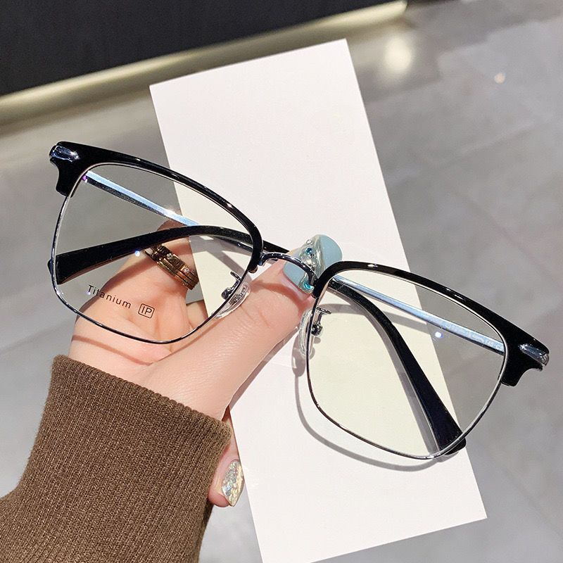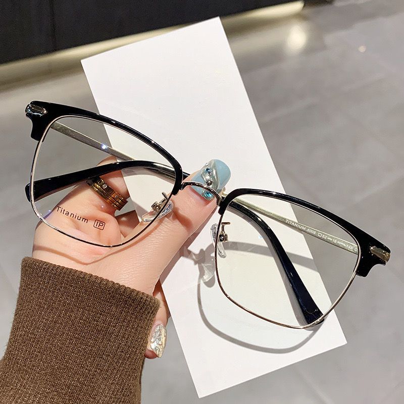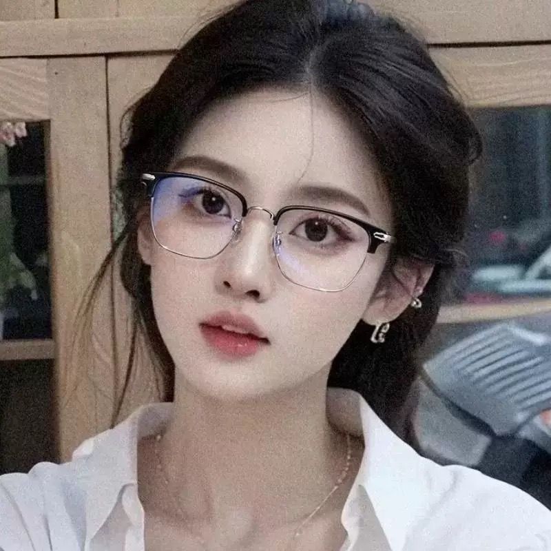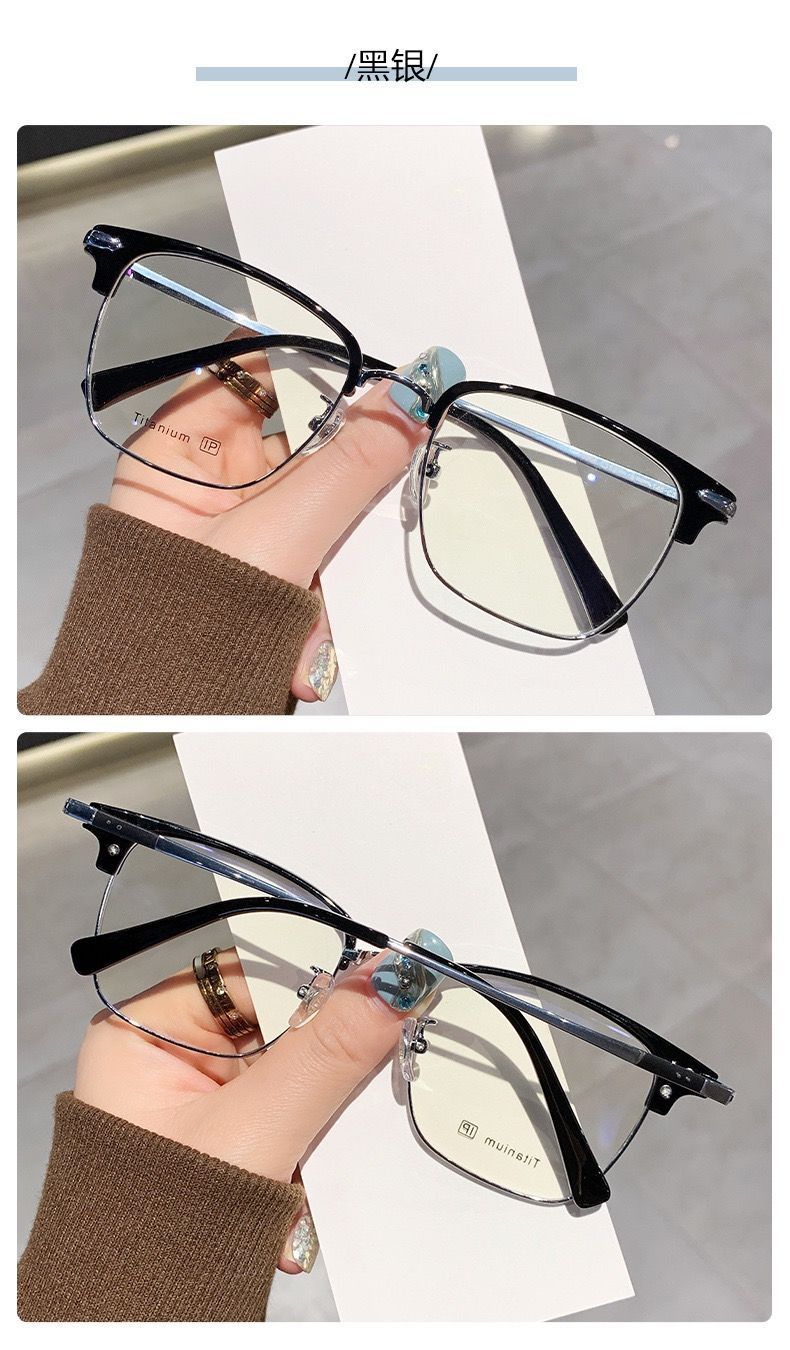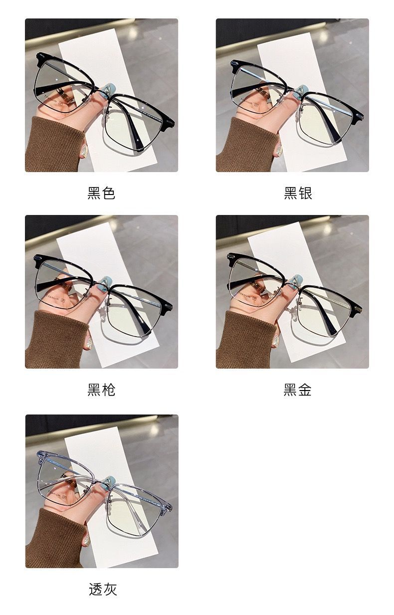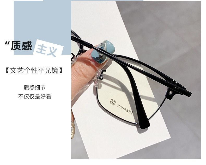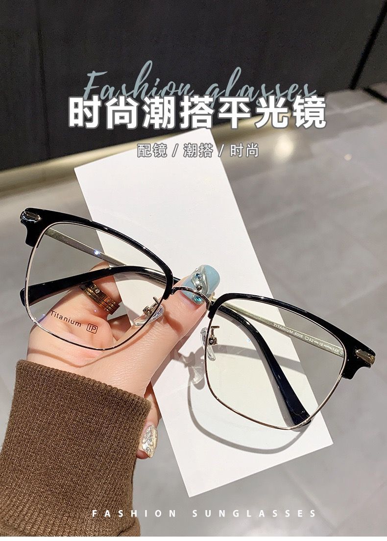 半框眼镜女纯欲风近视眼镜可配度数平光防蓝光辐射眼睛框架男素颜