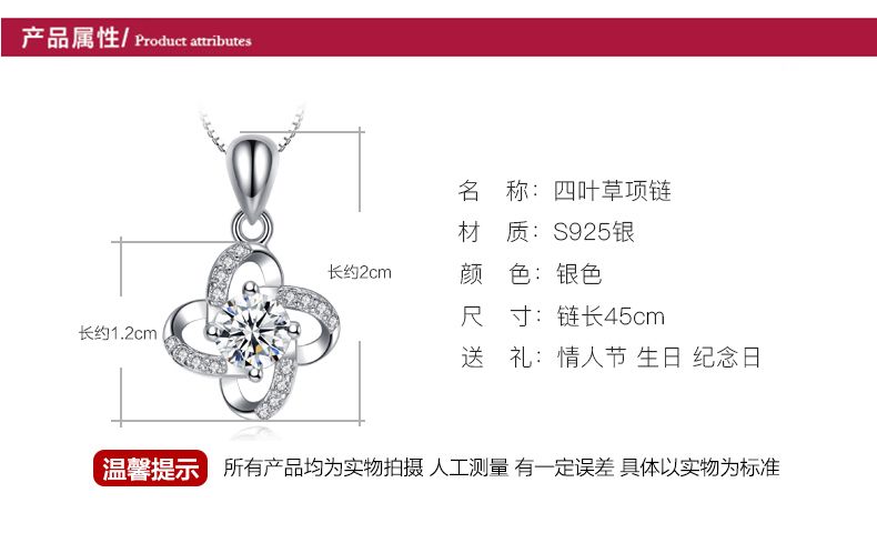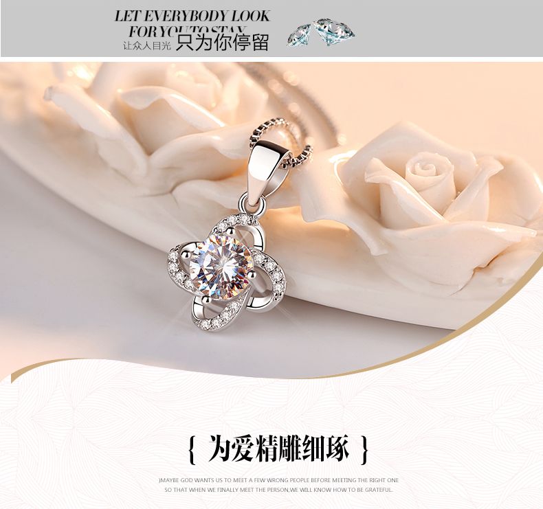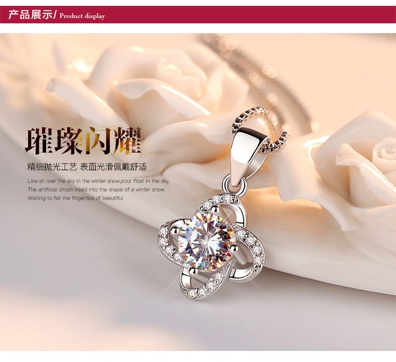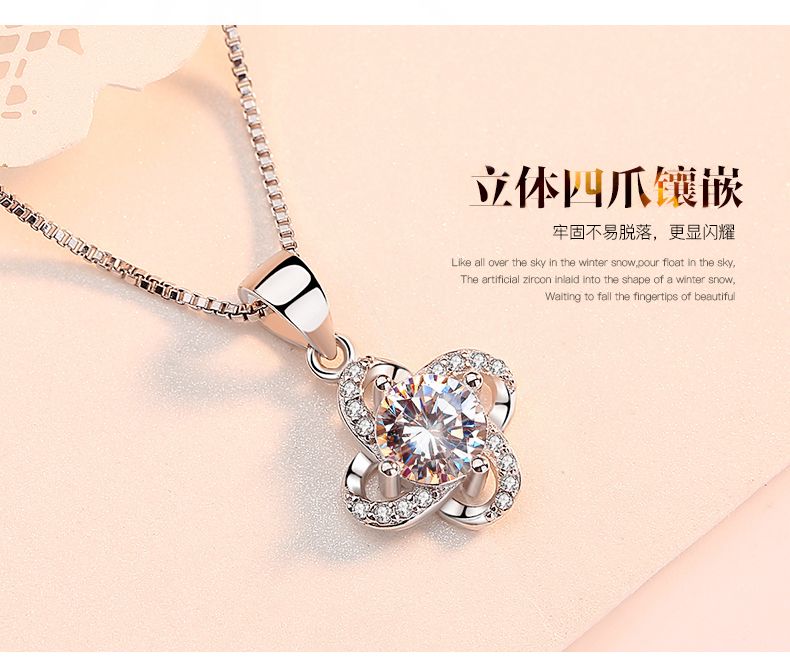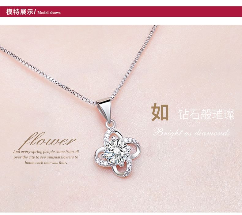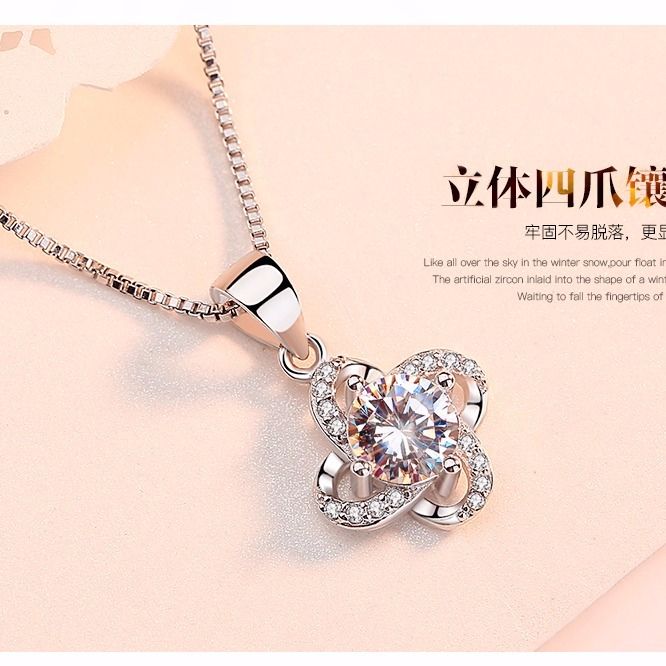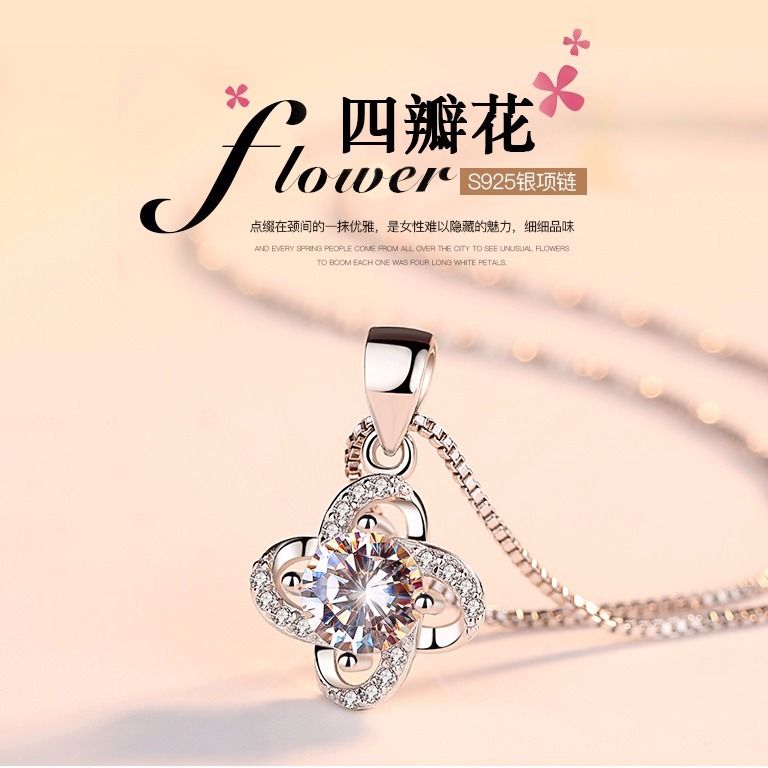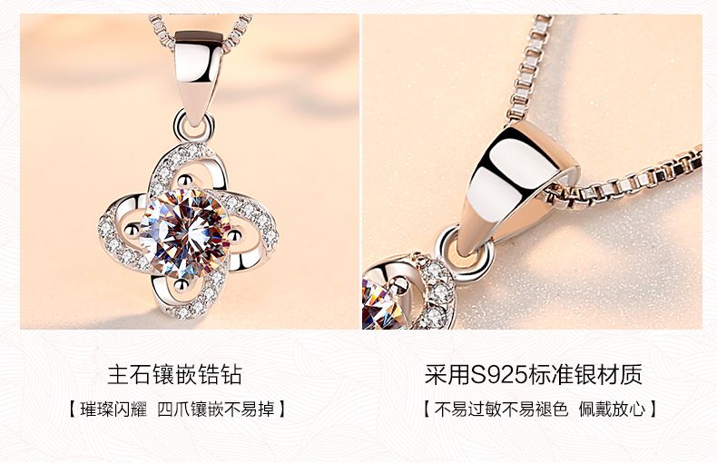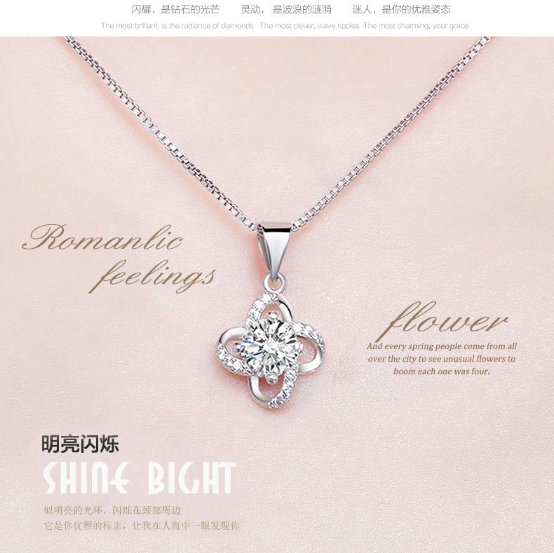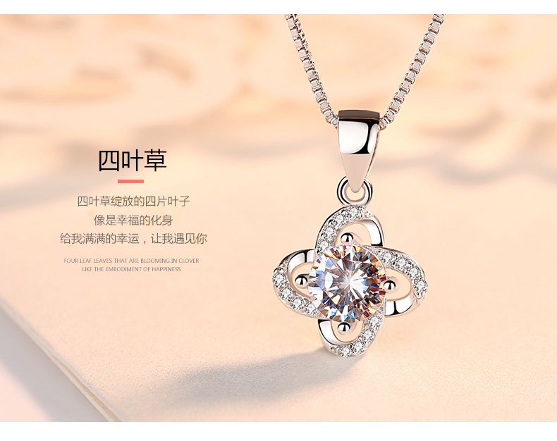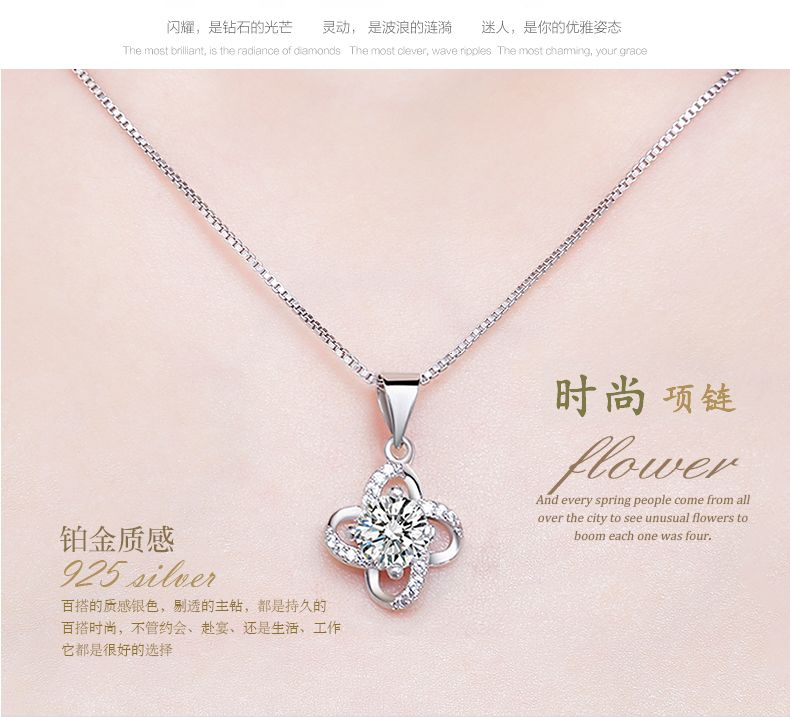 四叶草925项链女纯银锁骨链学生韩版简约吊坠生日礼物网红首饰品
