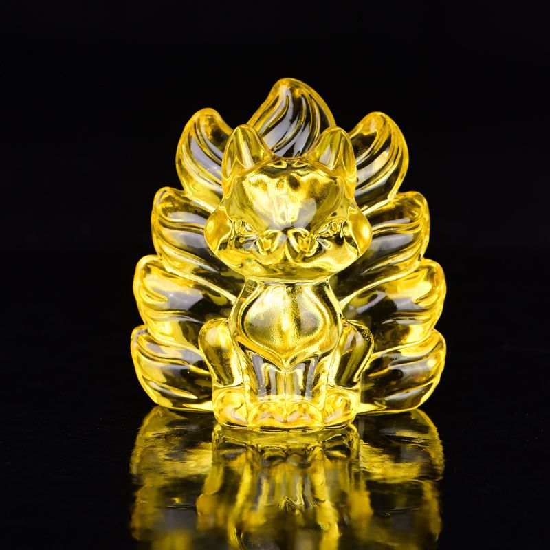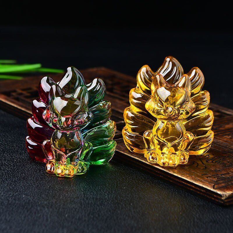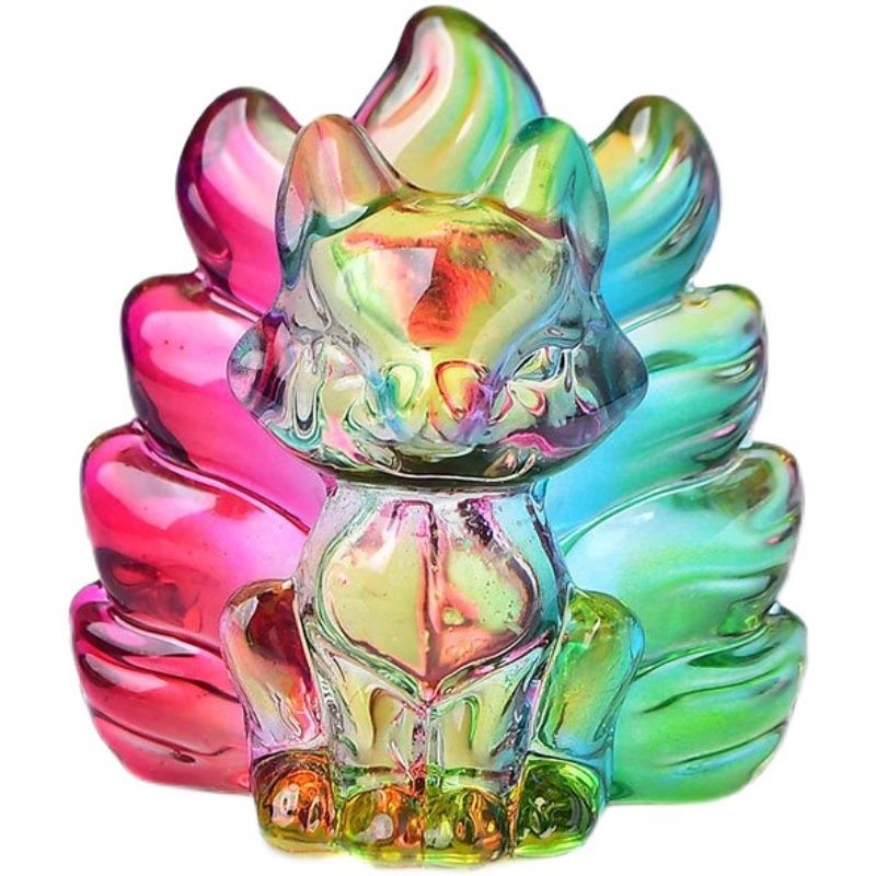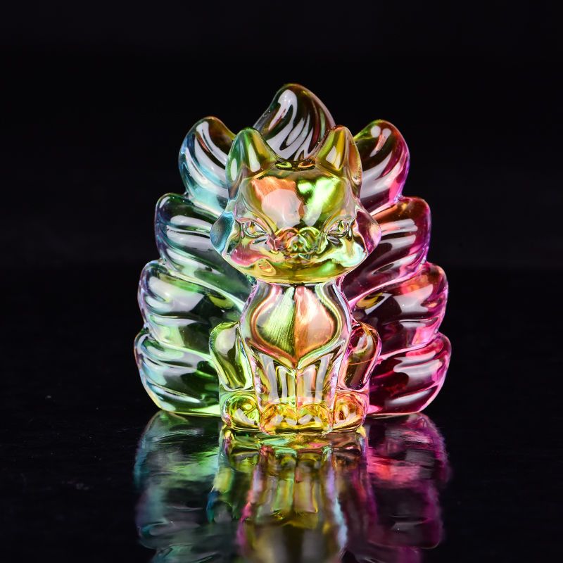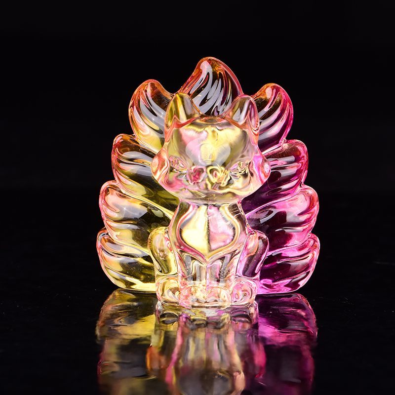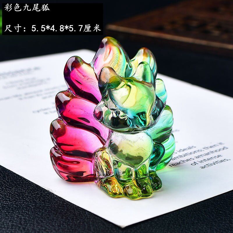 水晶九尾灵狐琉璃摆件七彩凤九小狐狸招桃花彩色办公桌面摆设礼物