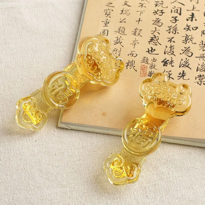 | 金黄玉如意摆件【10.5厘米长】一双 | USD $2.54 | 99999 piece available |