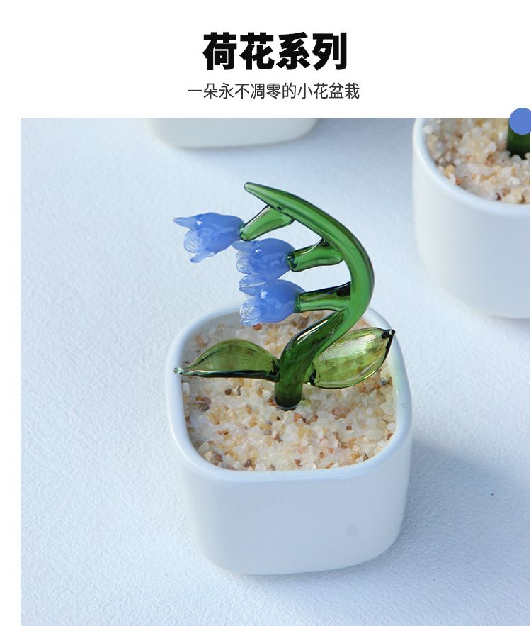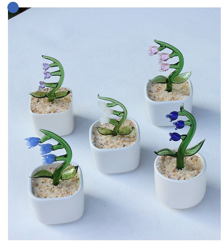 淄博博山琉璃小摆件工艺品多肉家居饰品铃兰花特产桌面办公桌仿真