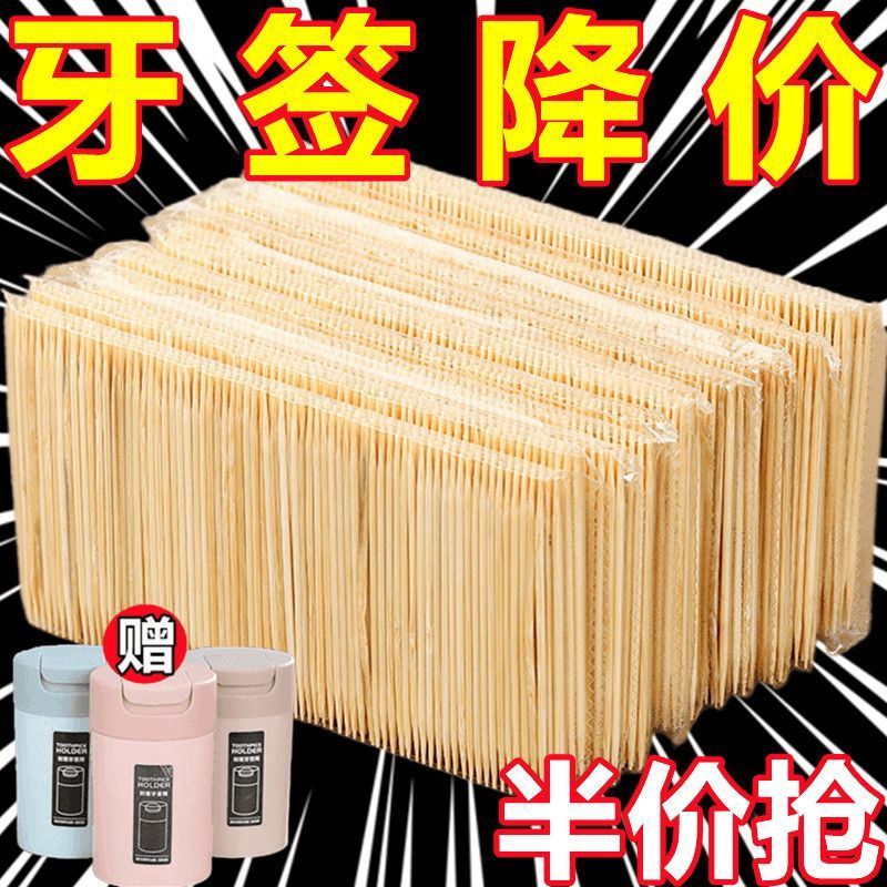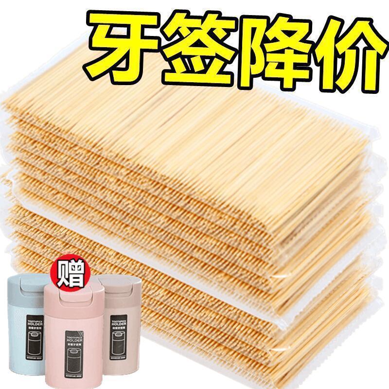 细牙签竹签5000根牙签盒批发一次性家用高档两头牙签剔牙神器随身