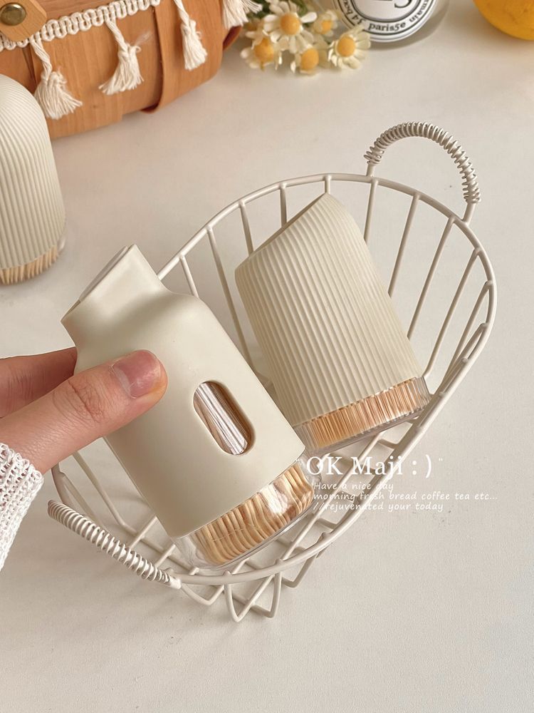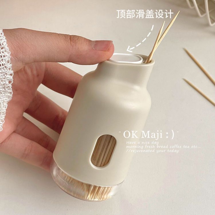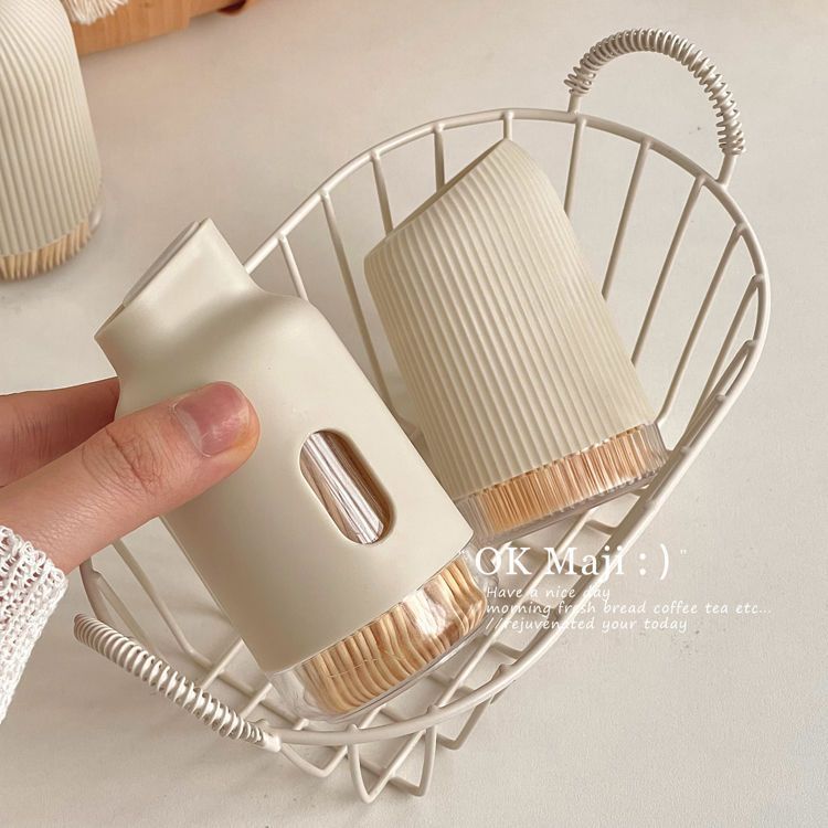 日式牙签筒2024新款奶油风牙签盒家用高档创意牙签桶牙签罐
