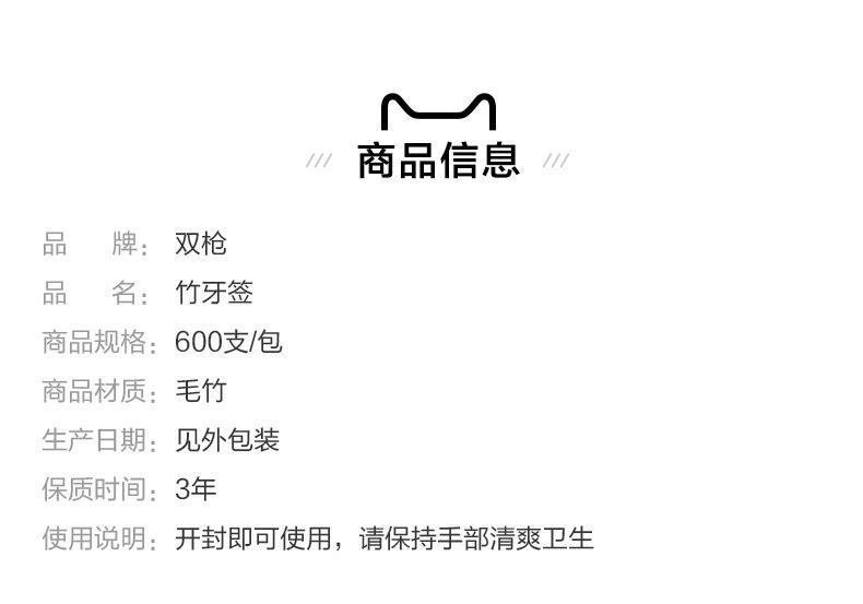 双枪一次性单头竹制细牙签家用便携餐厅饭店散装竹掏牙剔牙水果叉