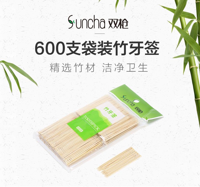 | suncha single-head bag high-end toothpick [1 bag of 600 pcs]](双枪单头袋装高档牙签【1袋600支】) | USD $1.35 | 99999 piece available |