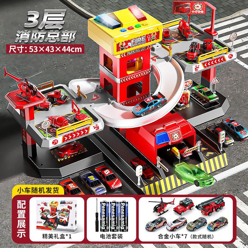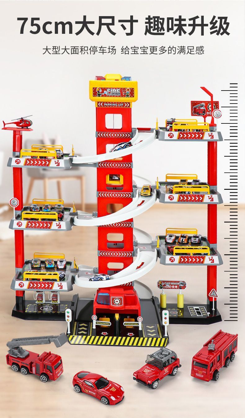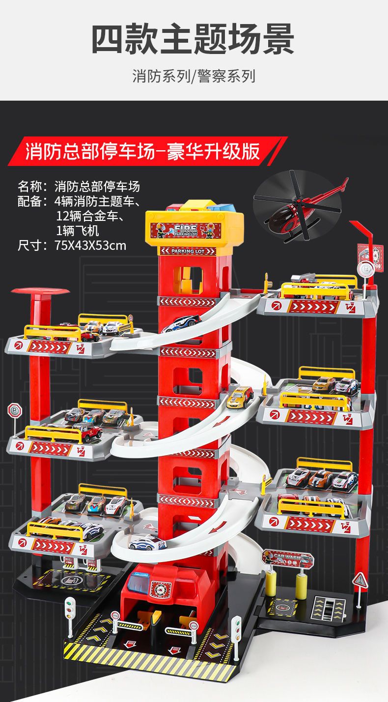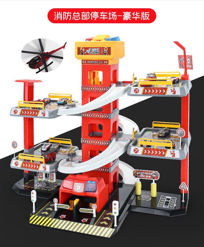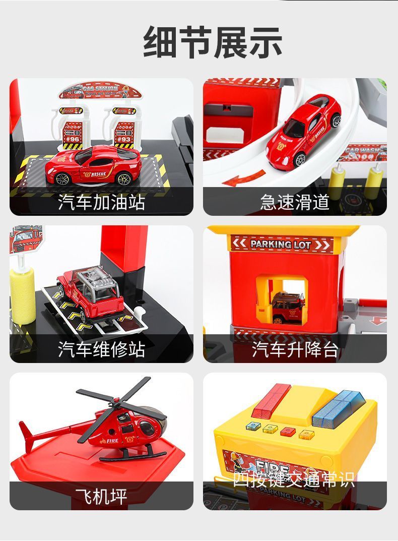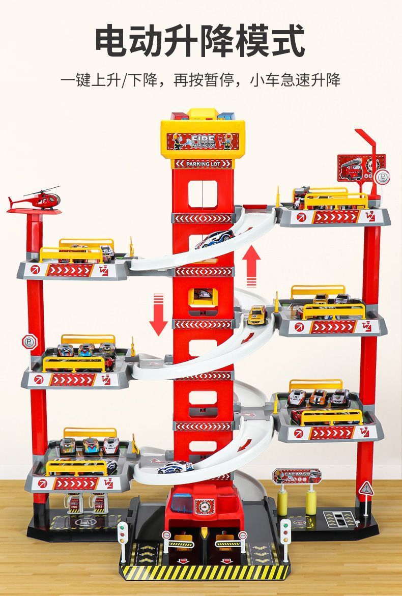 儿童益智电动轨道停车场大楼玩具消防警车系列3-6岁男孩汽车套装