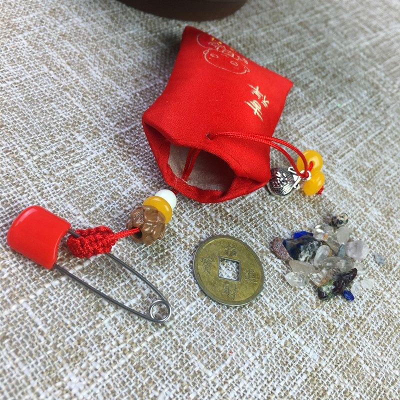 婴幼儿童宝宝中国风胎发袋包别针纪念品手工制作福袋胸针随身