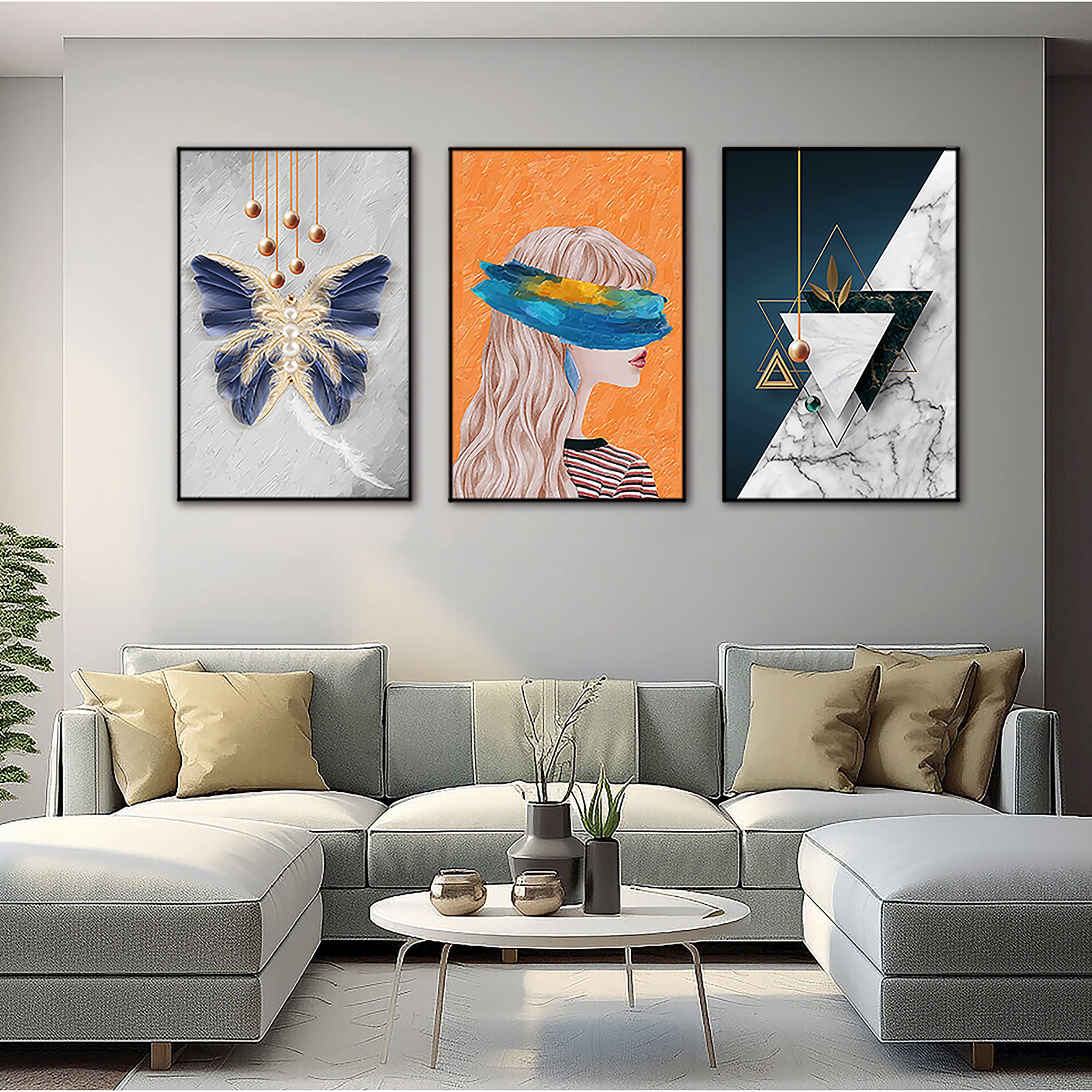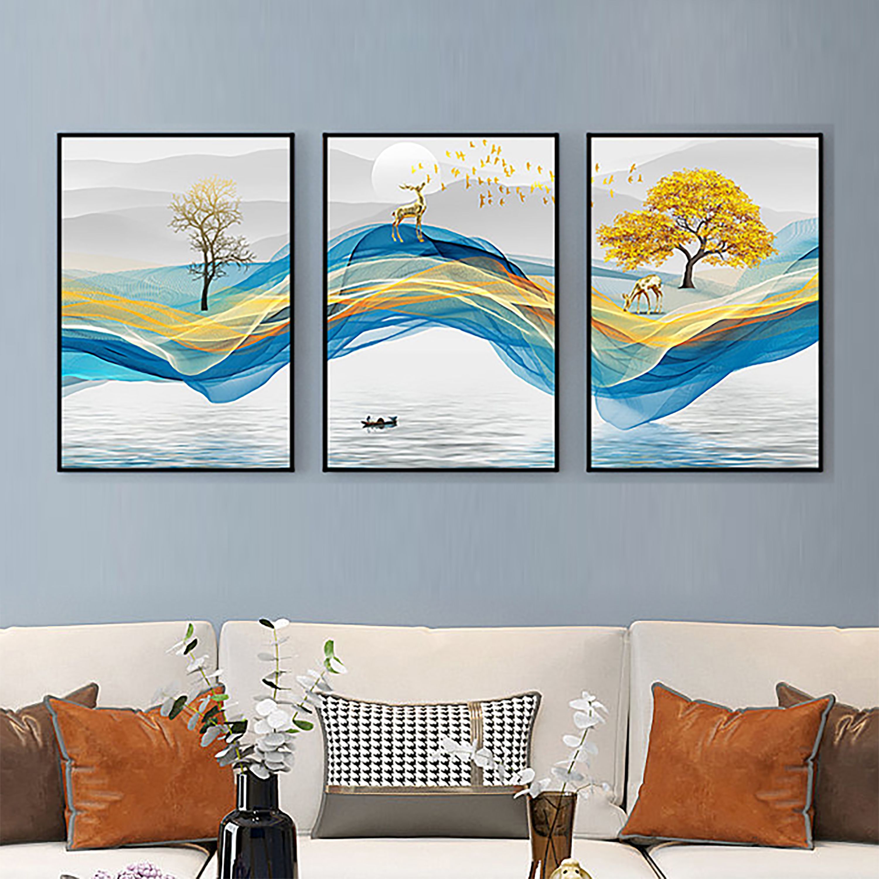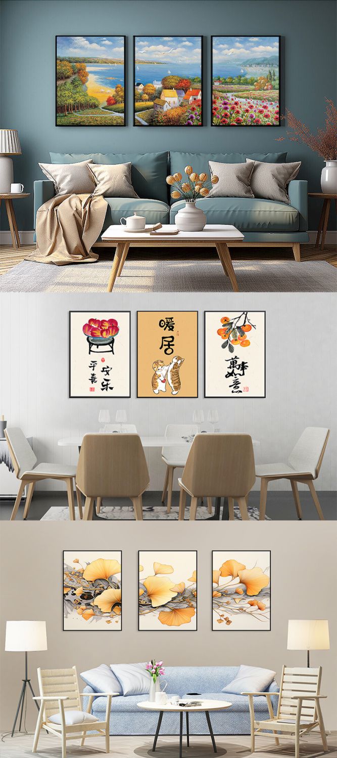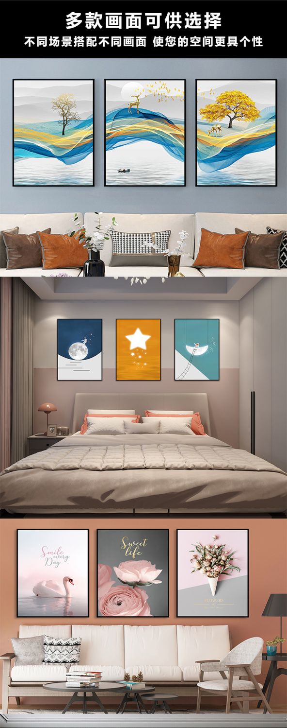 装饰画高清简约现代家庭方形客厅装饰艺术壁画三联墙画挂画免打孔