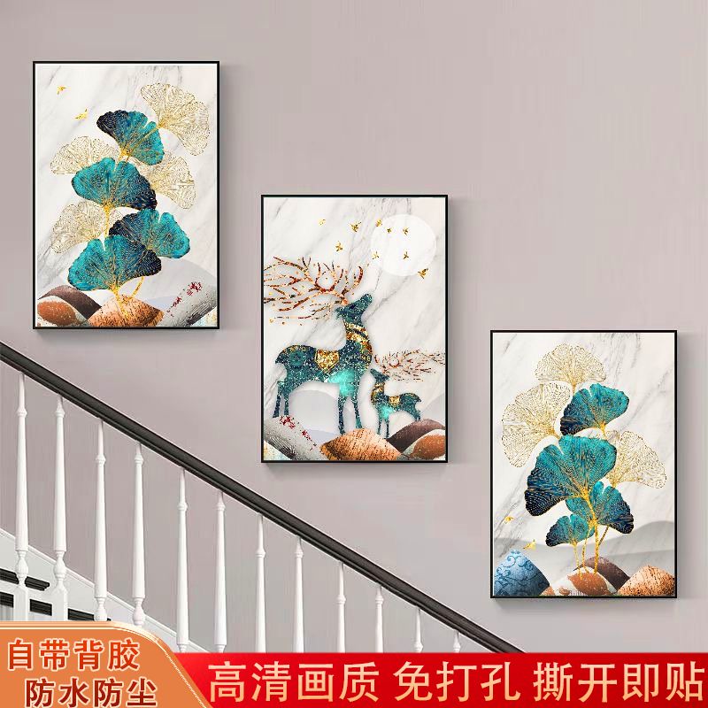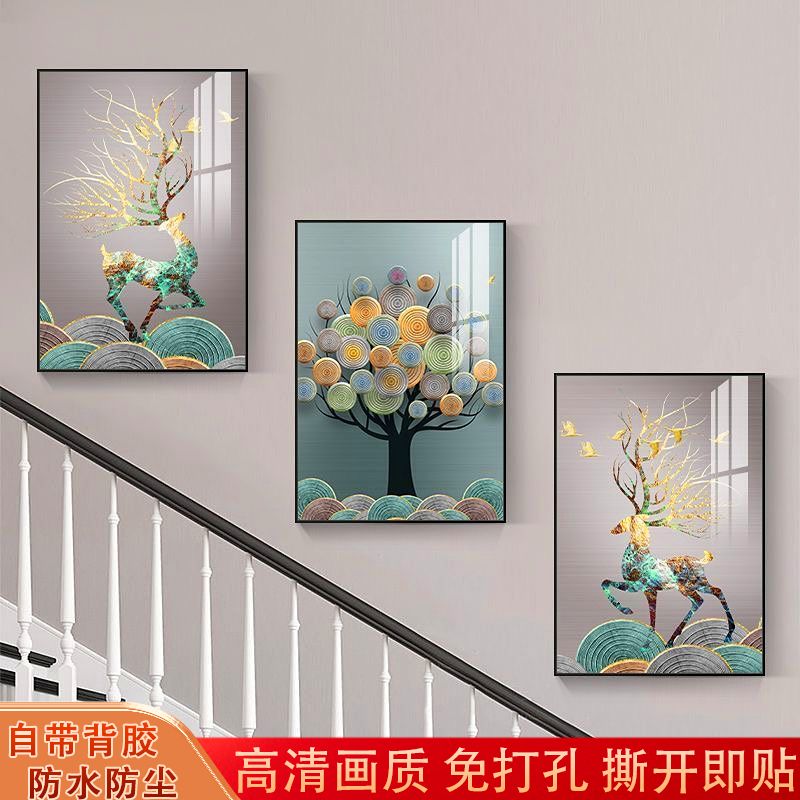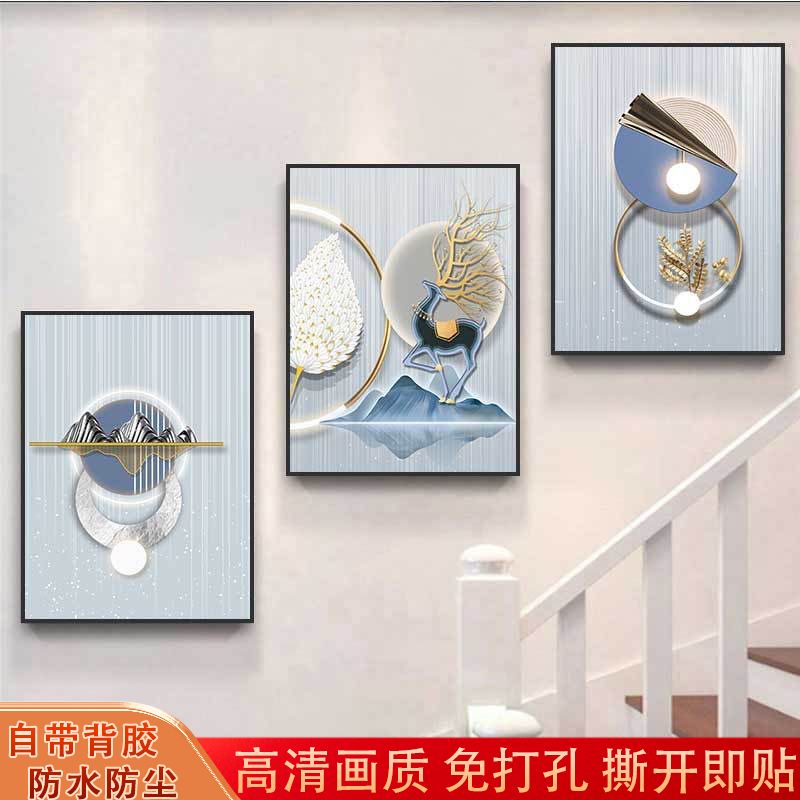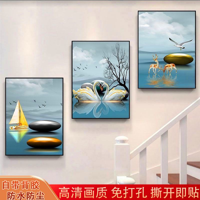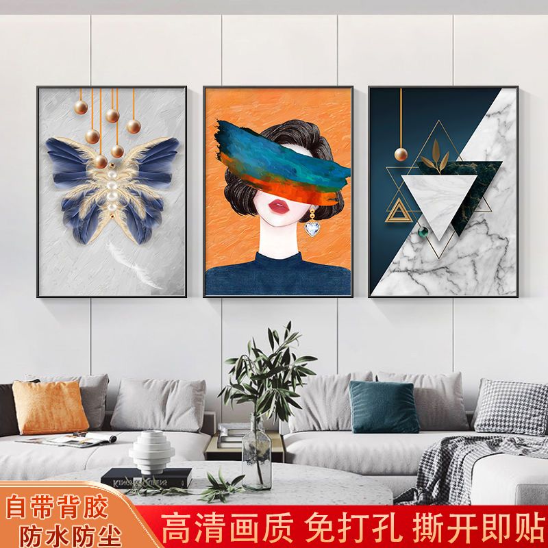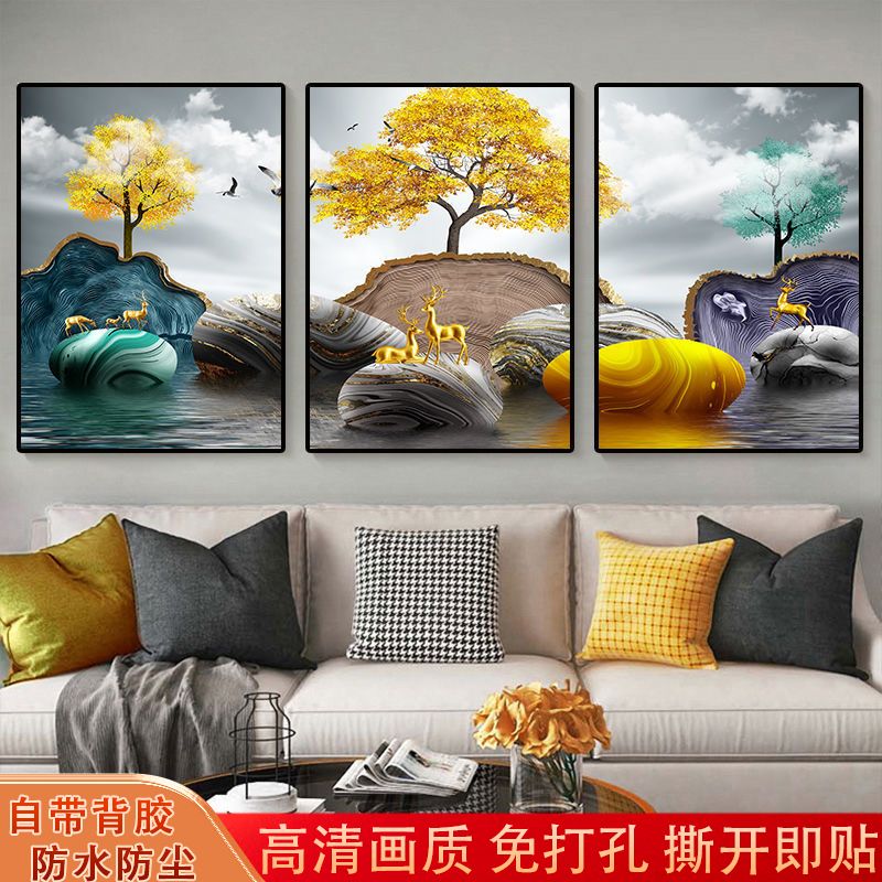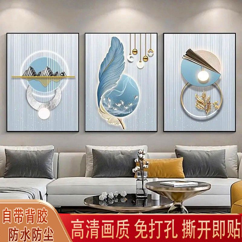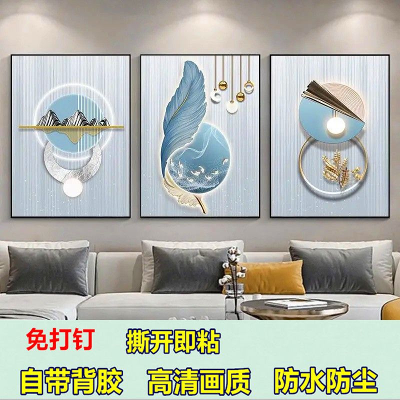 客厅装饰画现代简约卧室自粘画沙发餐厅背景墙上床头画壁画三联画