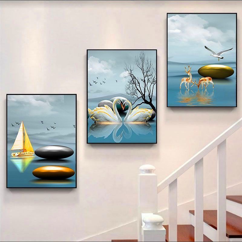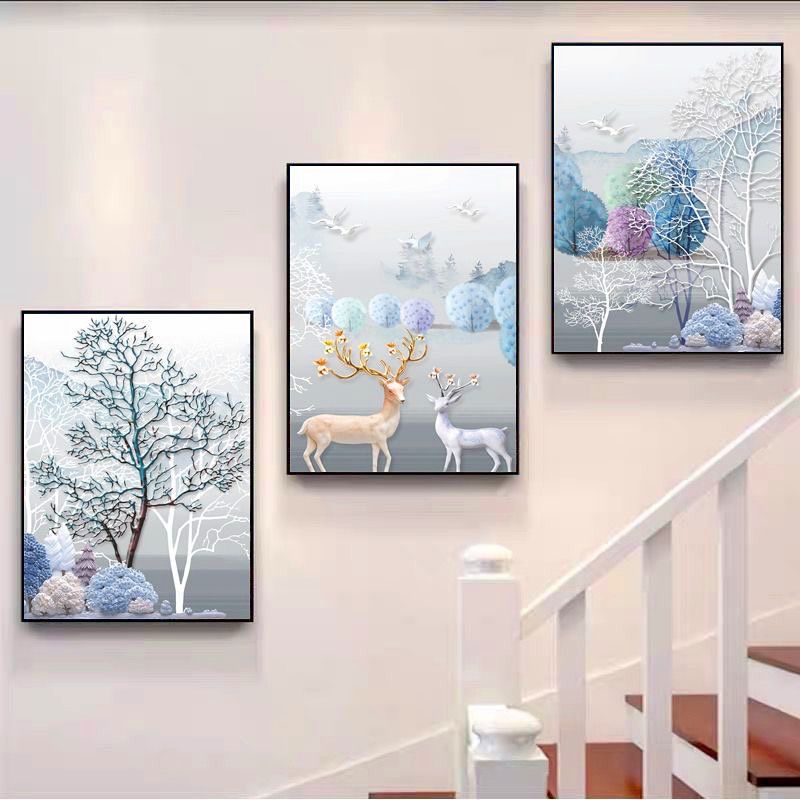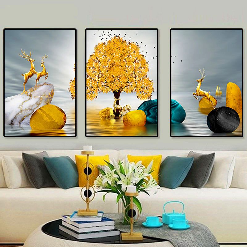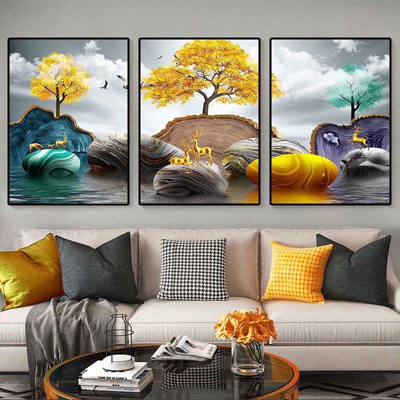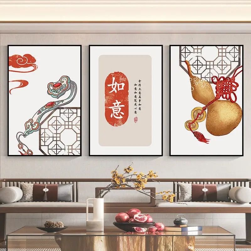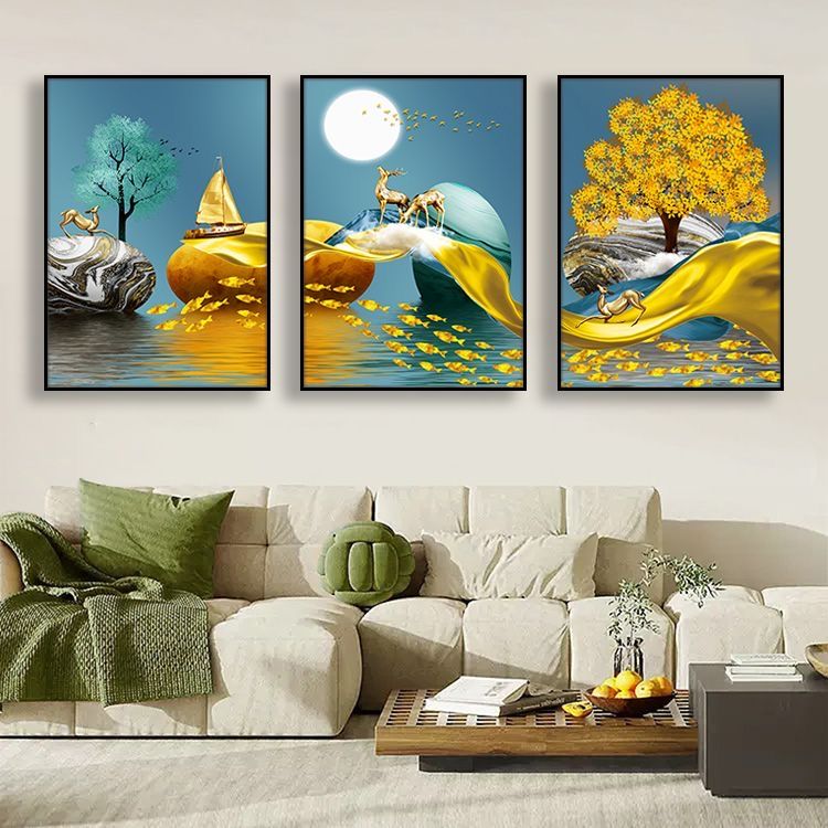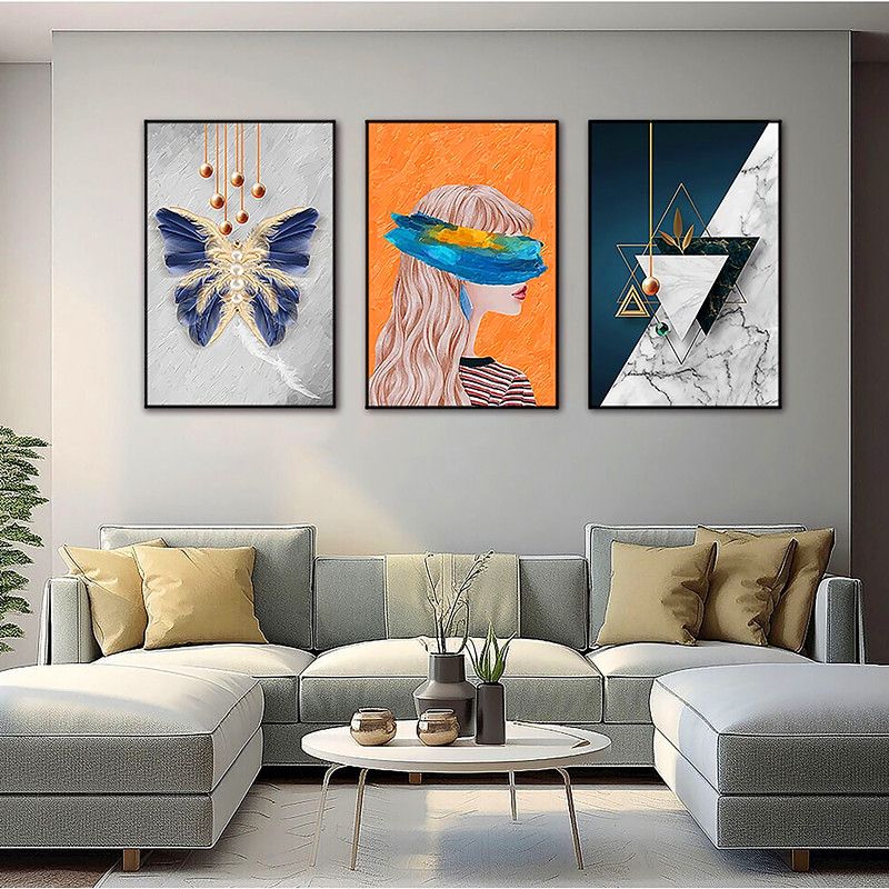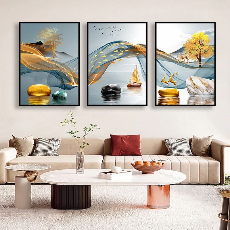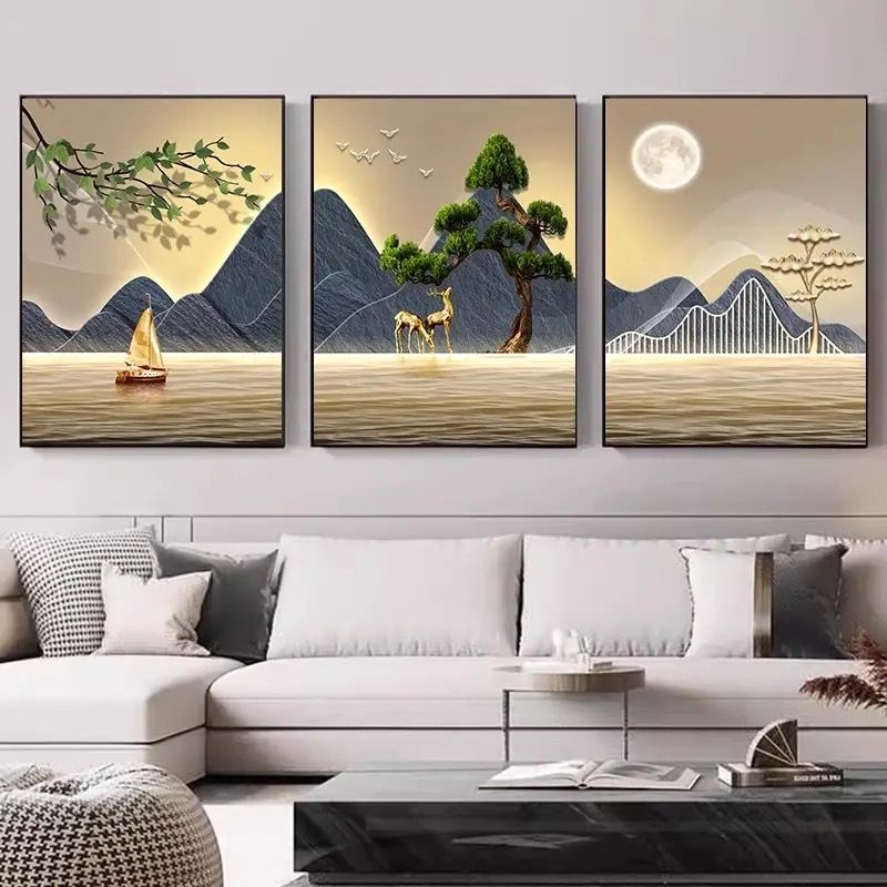 客厅装饰画现代简约卧室自粘画沙发餐厅背景墙上床头画壁画三联画