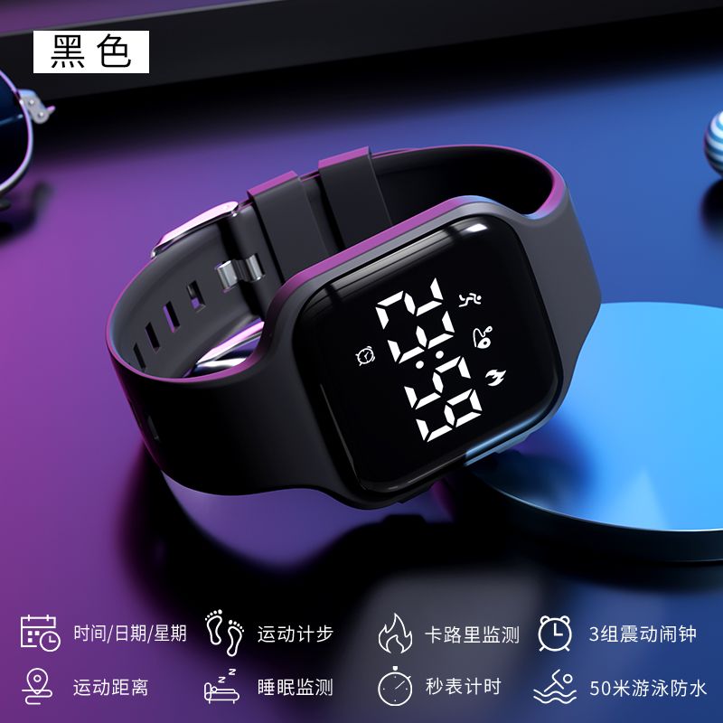 学生手表初高中生男运动防水无声震动闹钟儿童多功能电子表充电式