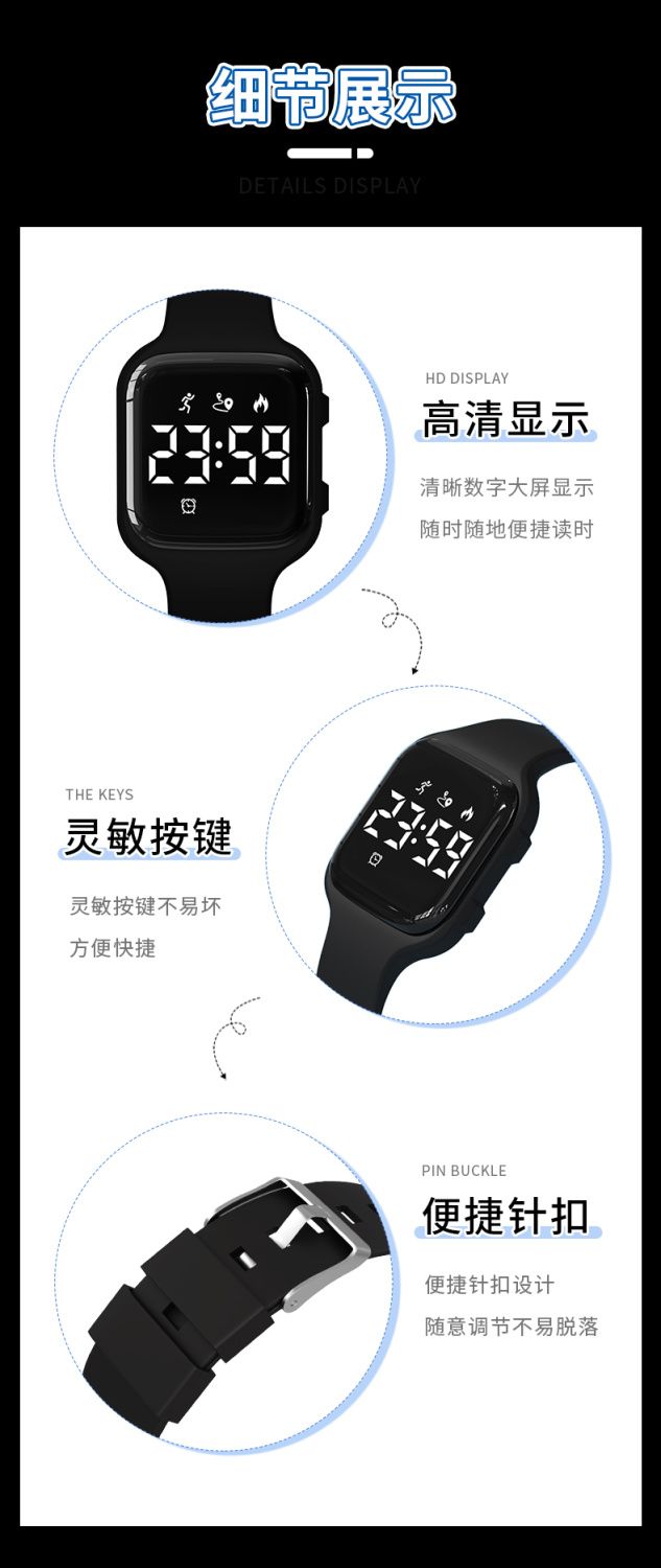 | light blue [waterproof + timing + step counting + alarm clock]](浅蓝【防水+计时+计步+闹钟】) | USD $8.98 | 99999 piece available |