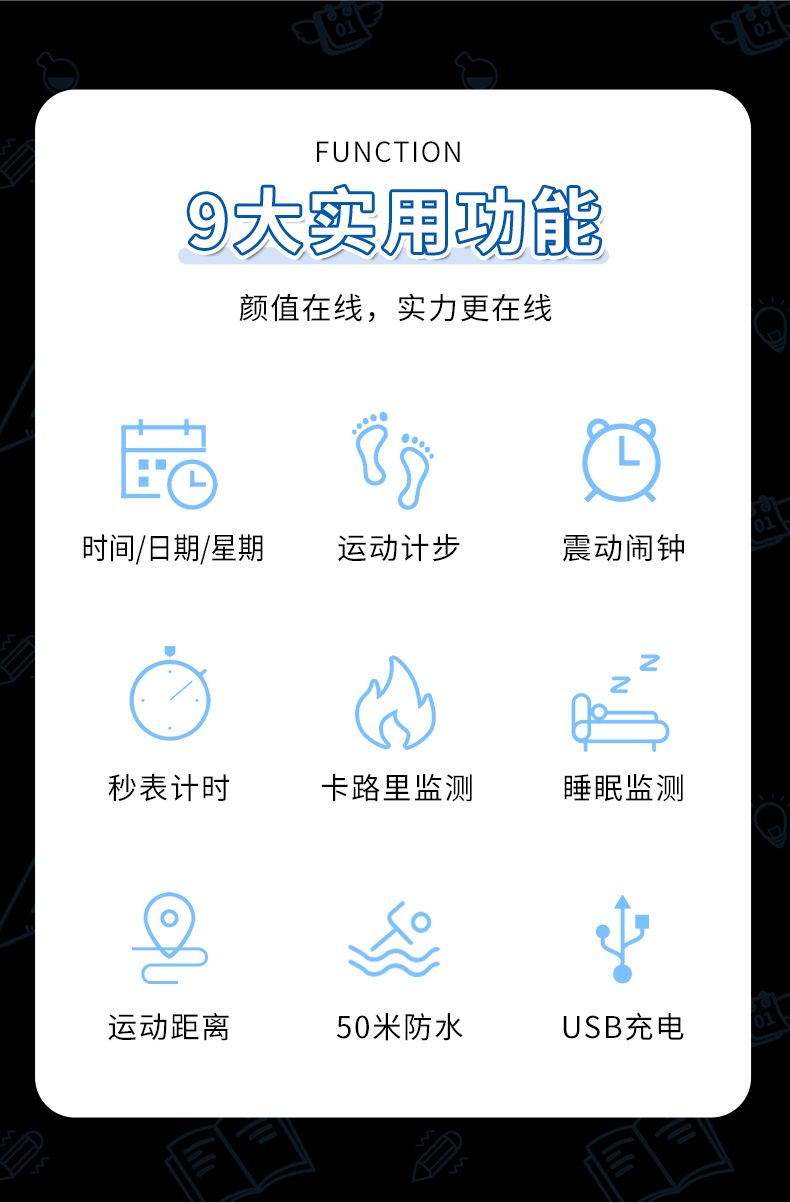 | classic white [waterproof + timing + step counting + alarm clock]](经典白【防水+计时+计步+闹钟】) | USD $8.98 | 99999 piece available |