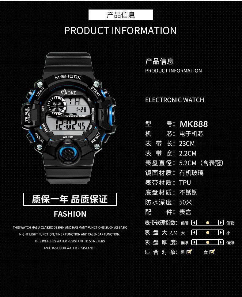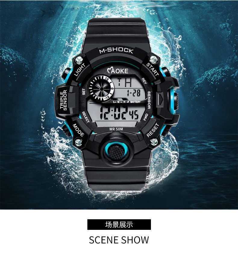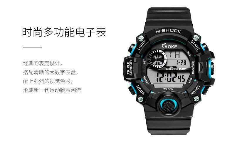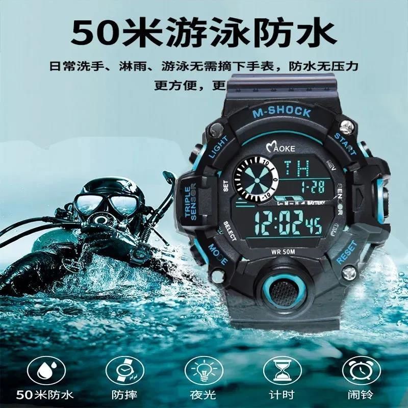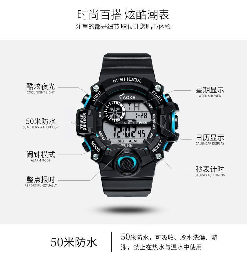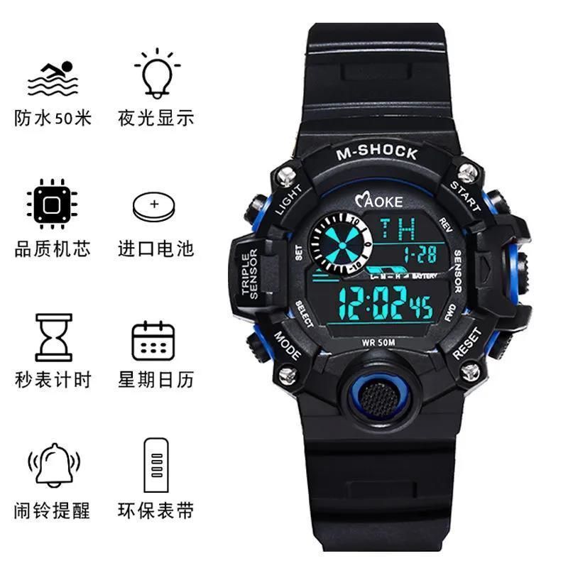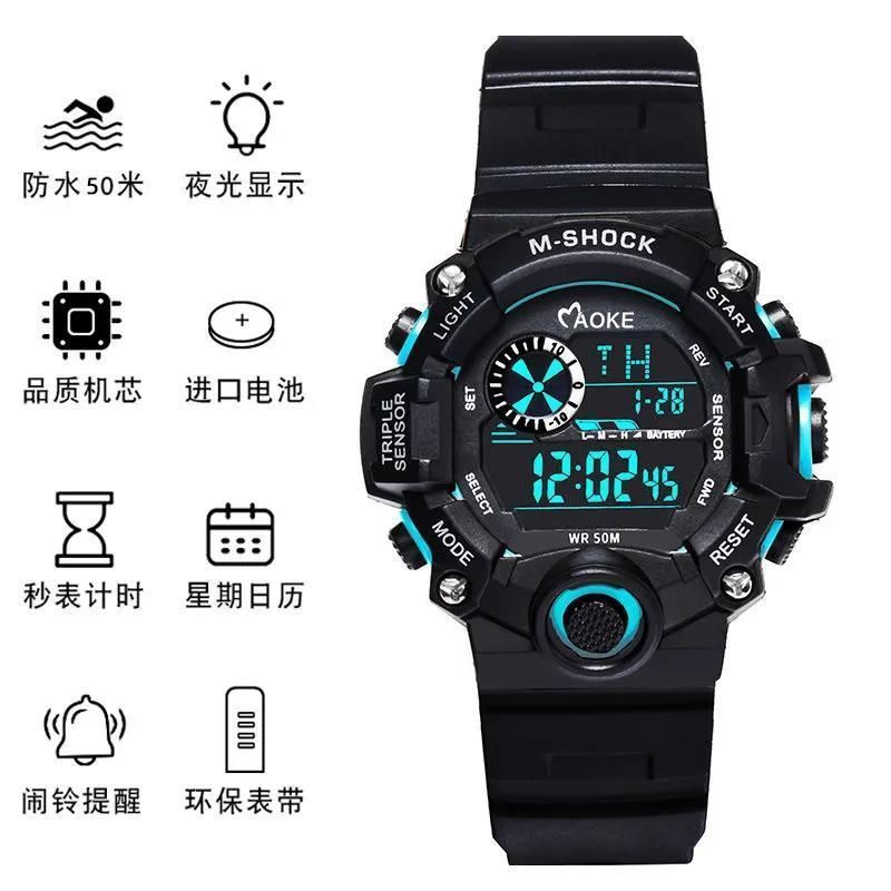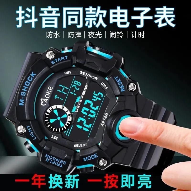 电子手表学生男孩初中韩版运动潮流防水七彩夜光闹钟青少年电子表