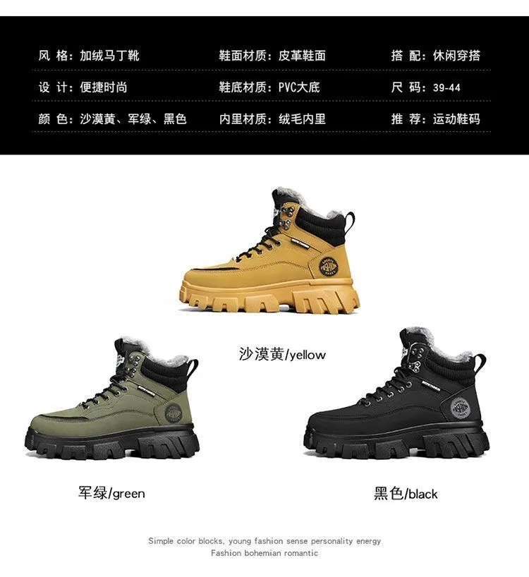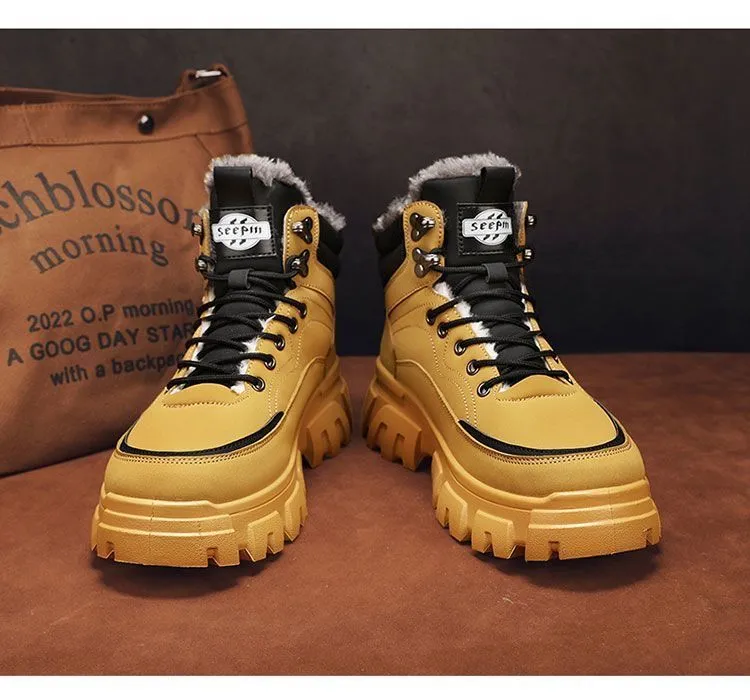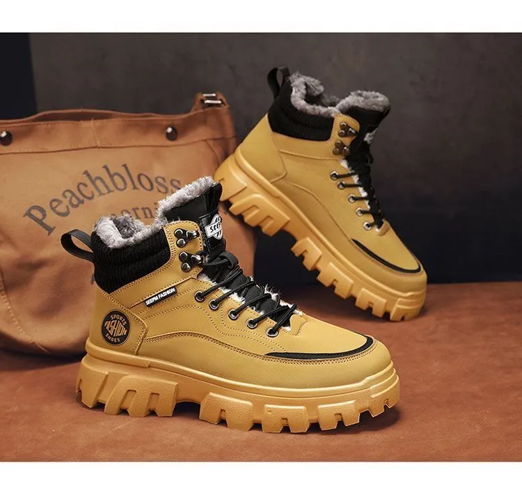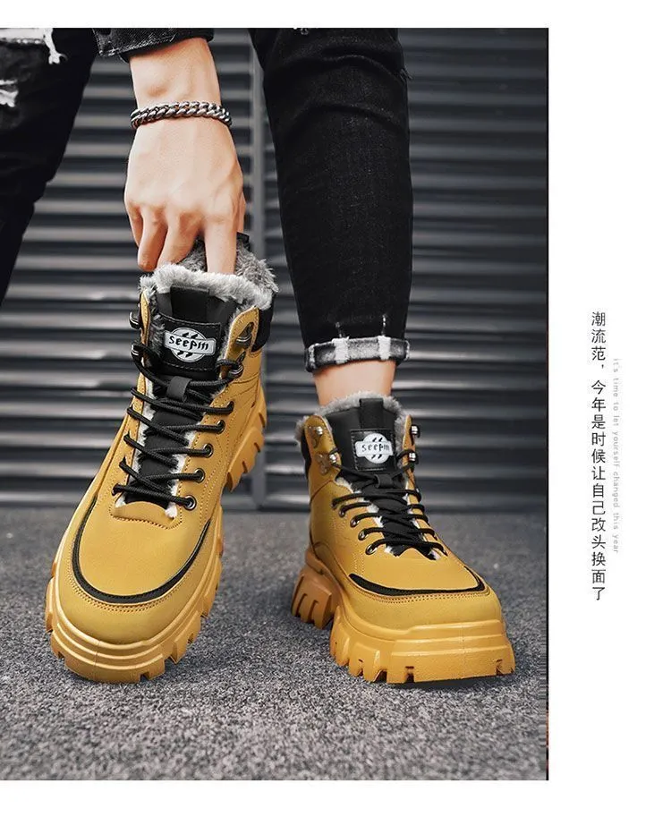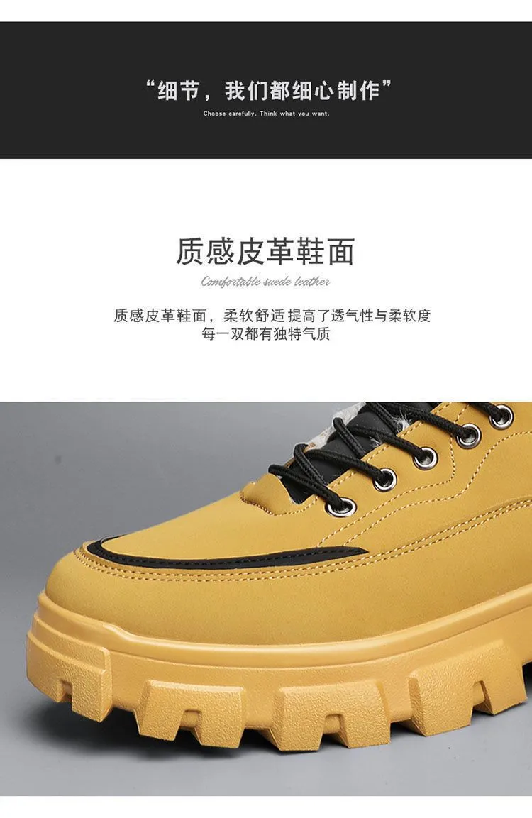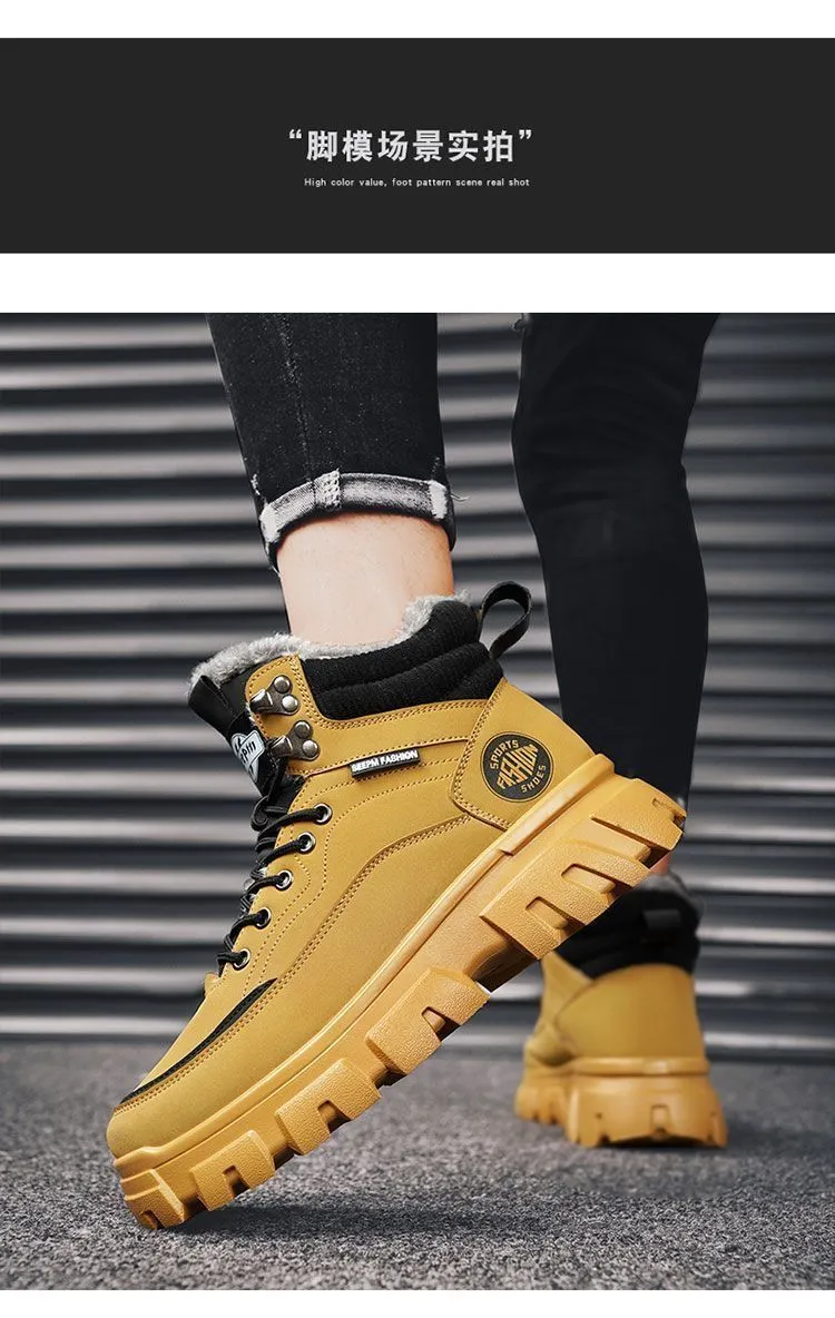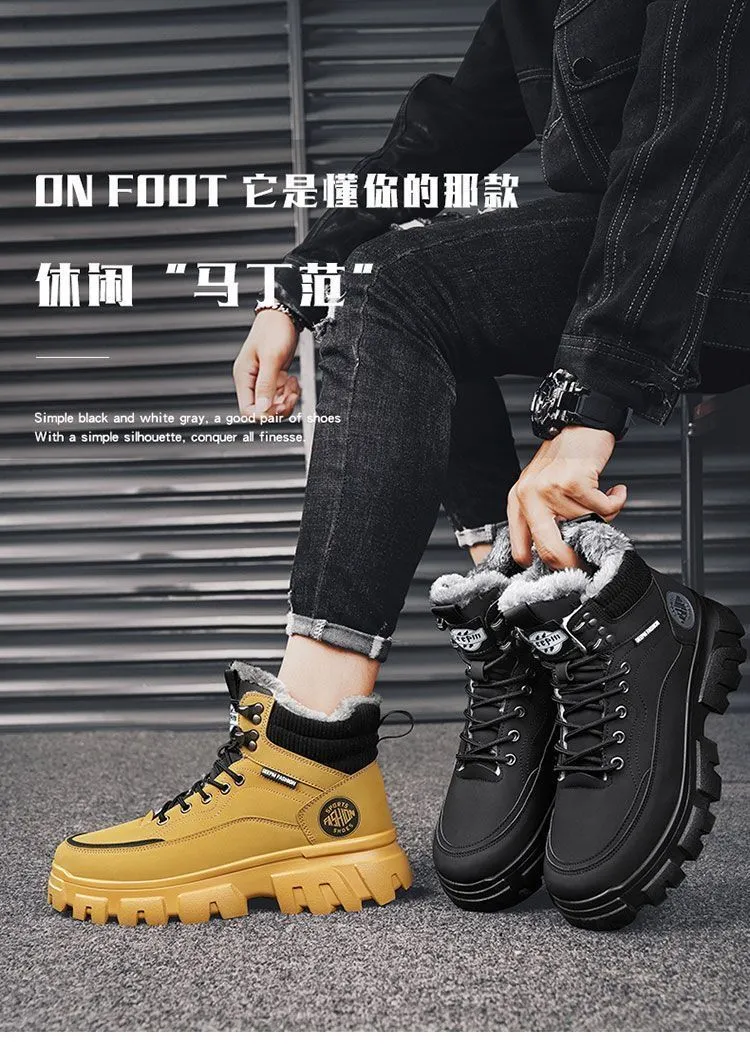 马丁靴男秋冬高帮英伦风工装大黄靴男士加绒棉鞋厚底户外防水皮靴