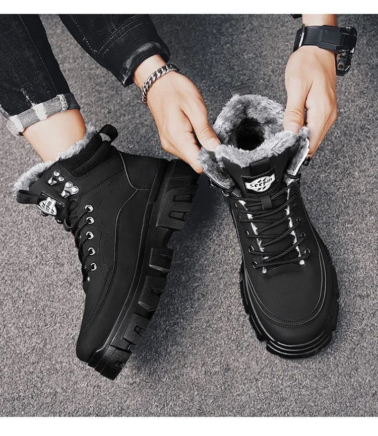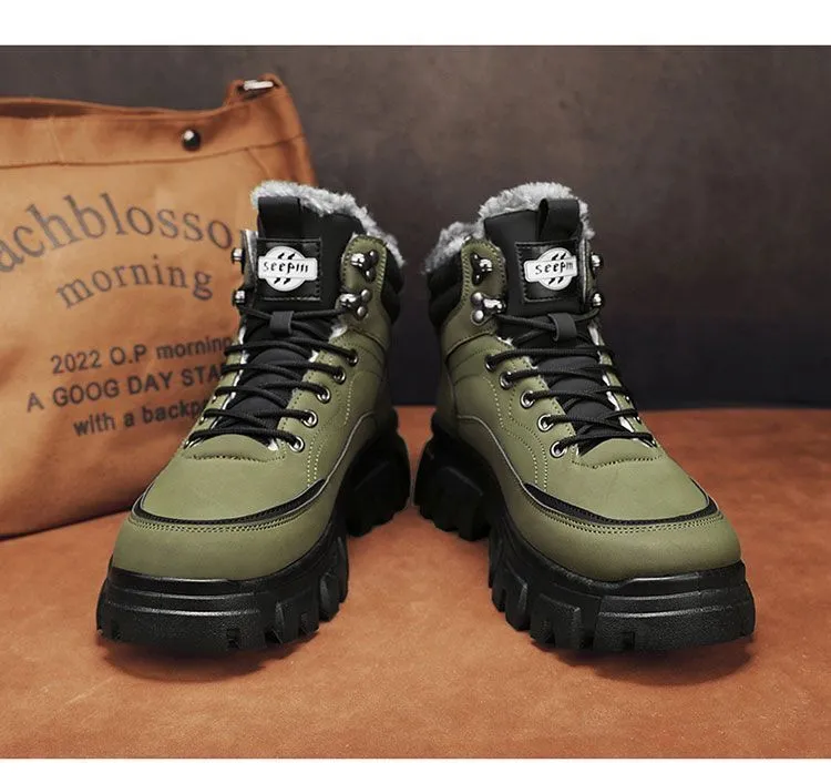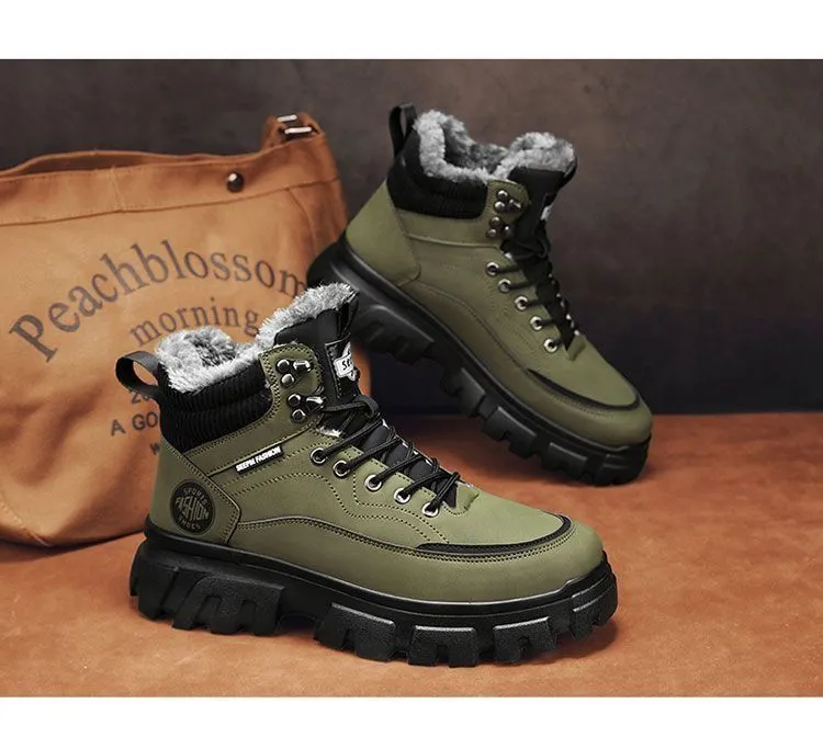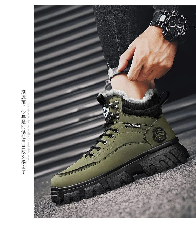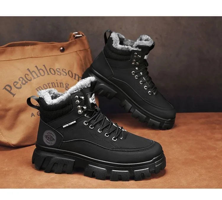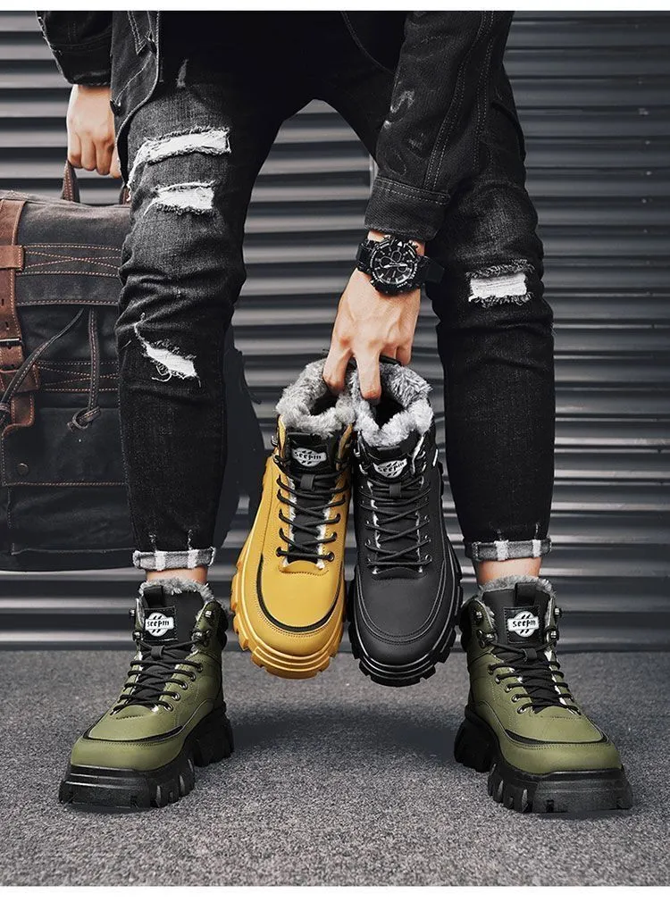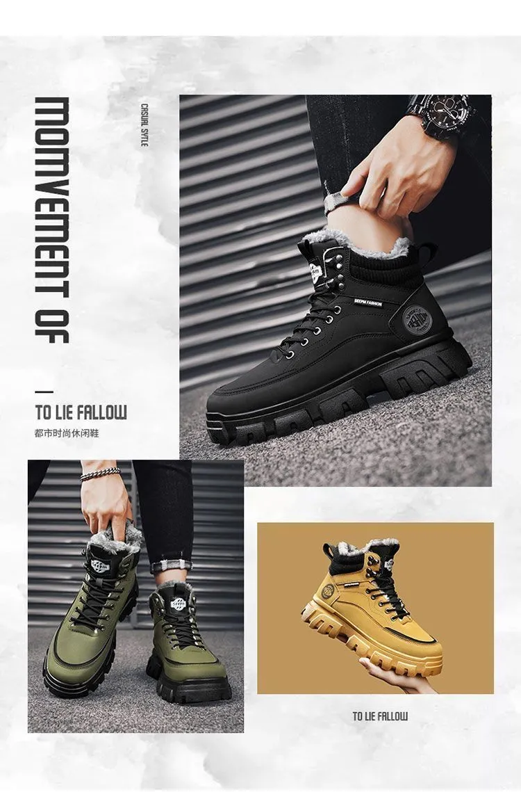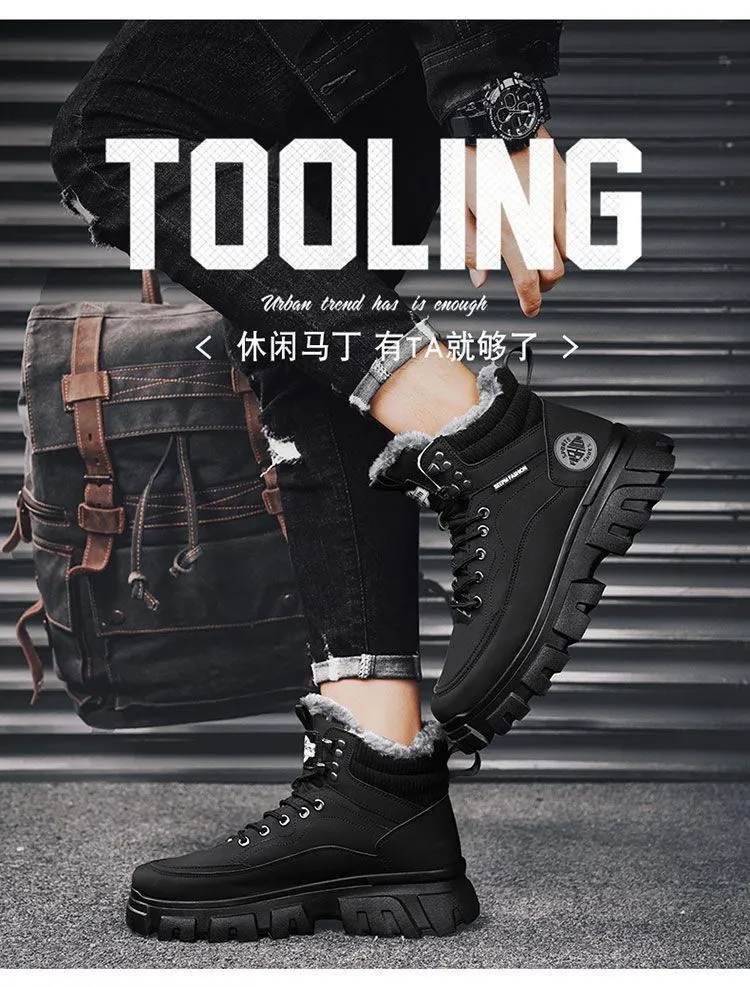 马丁靴男秋冬高帮英伦风工装大黄靴男士加绒棉鞋厚底户外防水皮靴