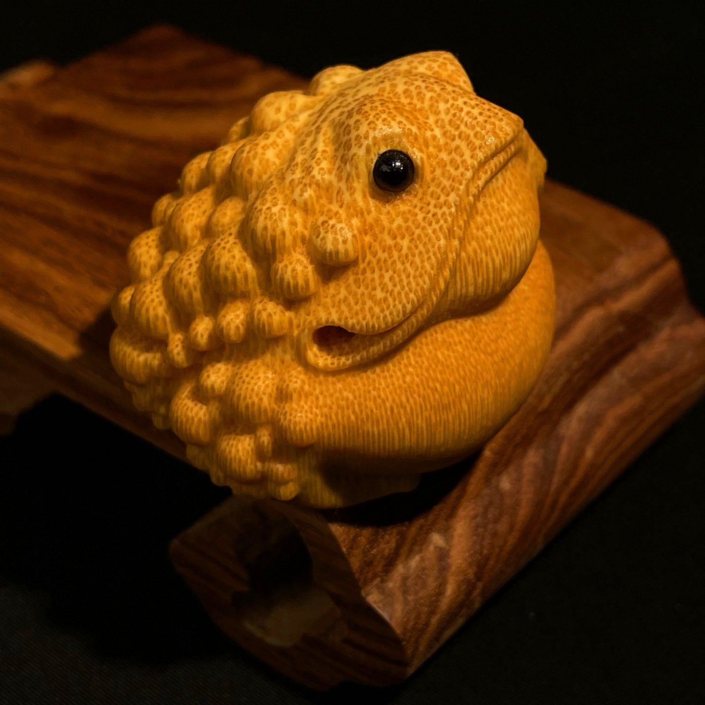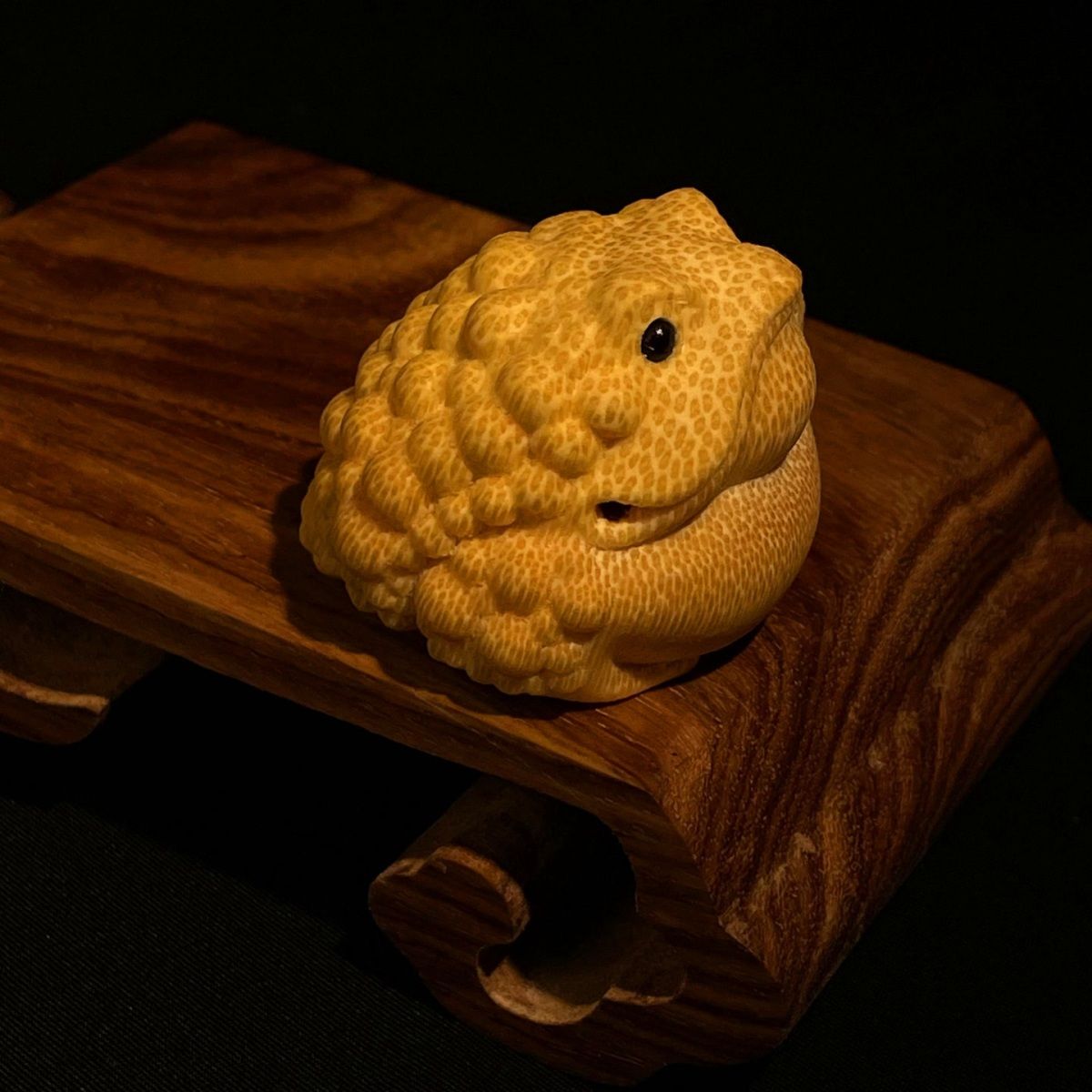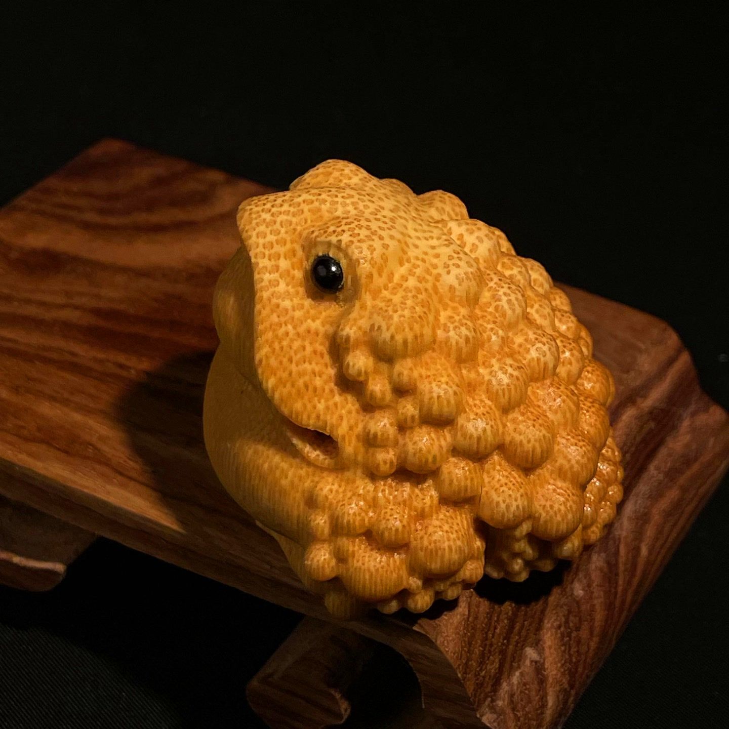 鹰嘴金蟾 手把件直径4.0左右 实心竹雕刻摆件 精雕手工