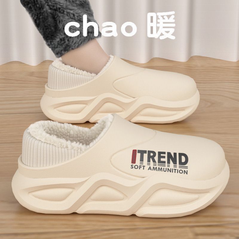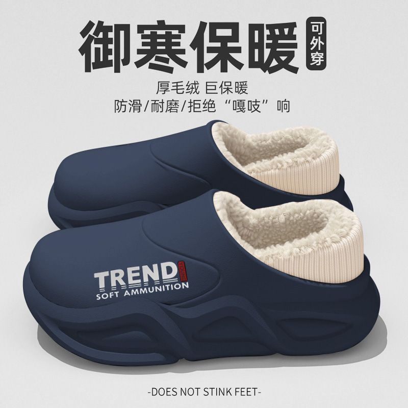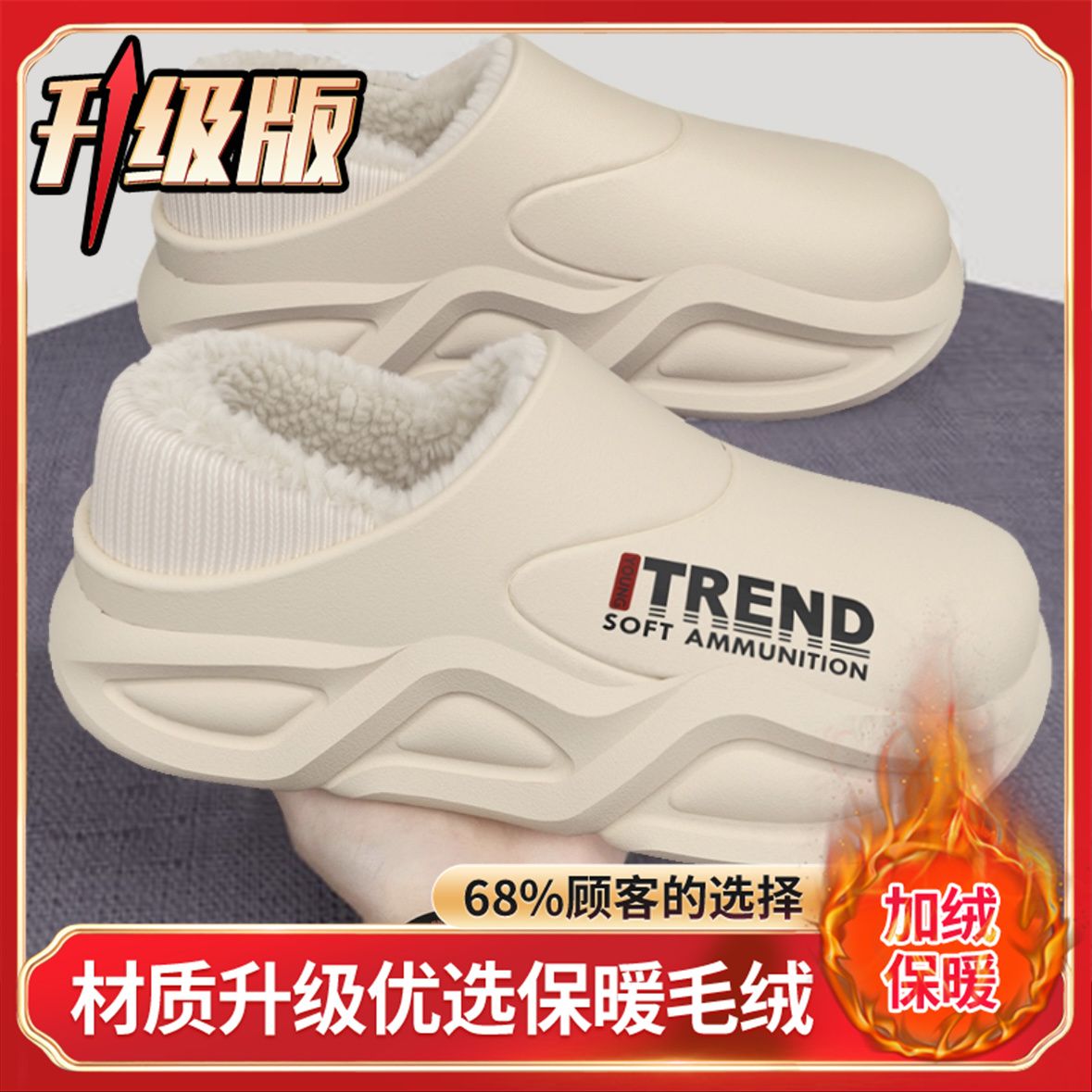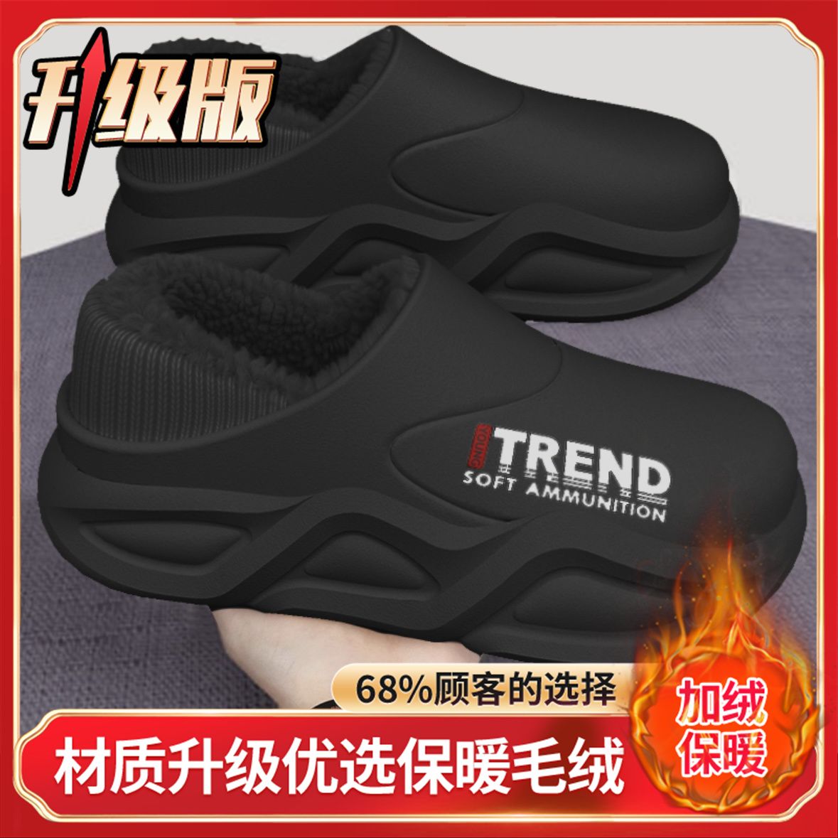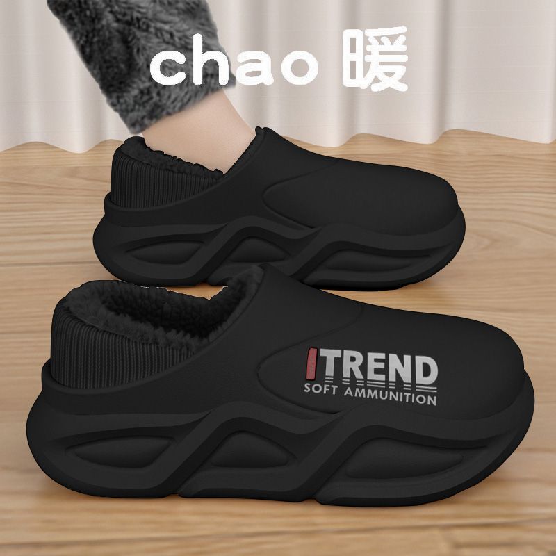 超暖踩屎感厚底毛绒保暖棉鞋冬季2024新款百搭防滑防水男士外穿