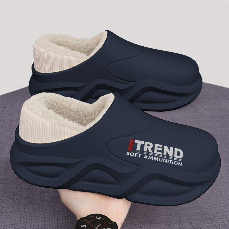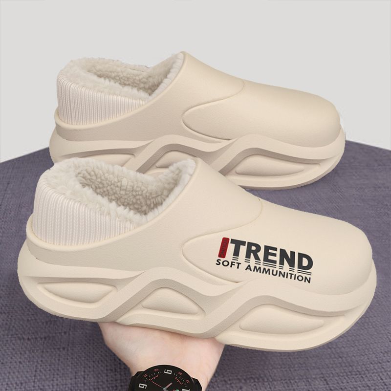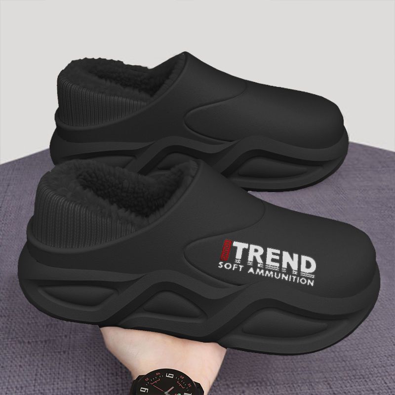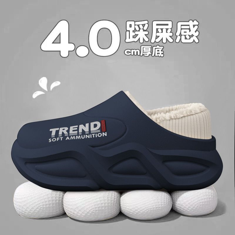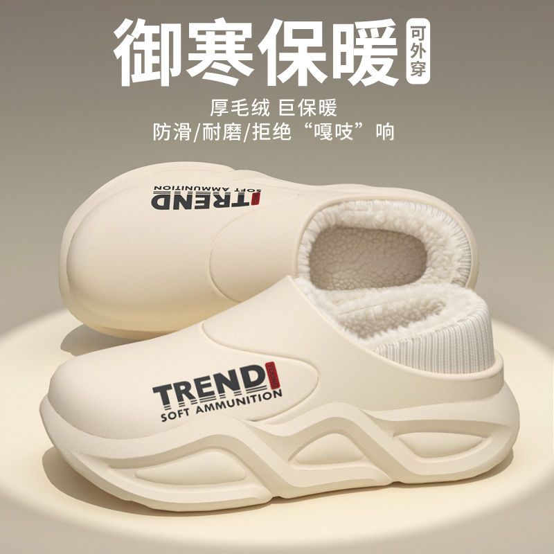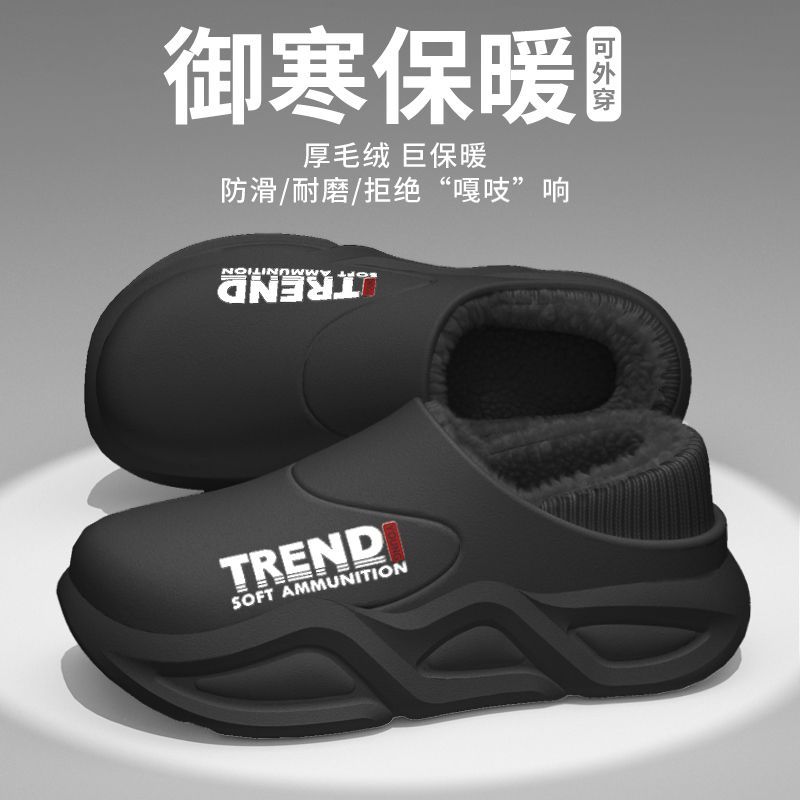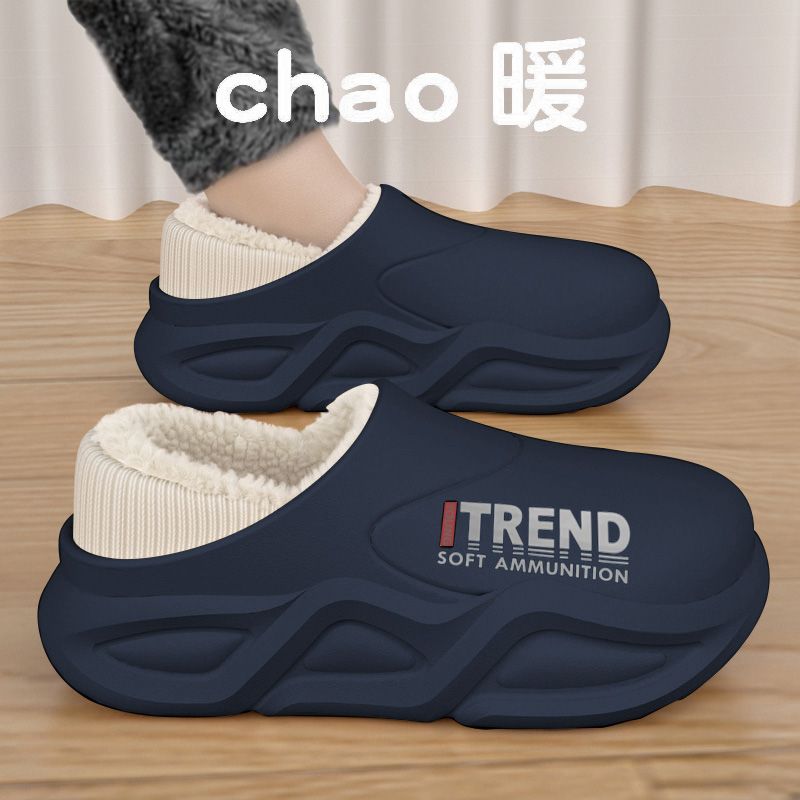 超暖踩屎感厚底毛绒保暖棉鞋冬季2024新款百搭防滑防水男士外穿