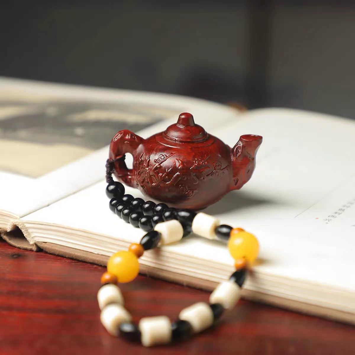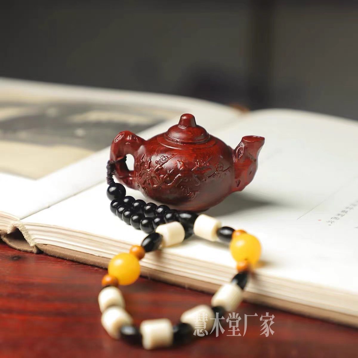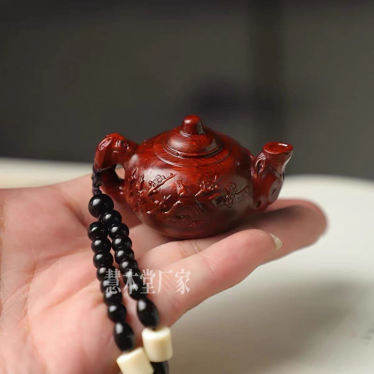 紫檀檀木实木雕刻把把壶手把件木质小茶壶车挂后视镜吊坠随身盘玩
