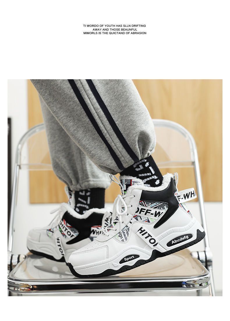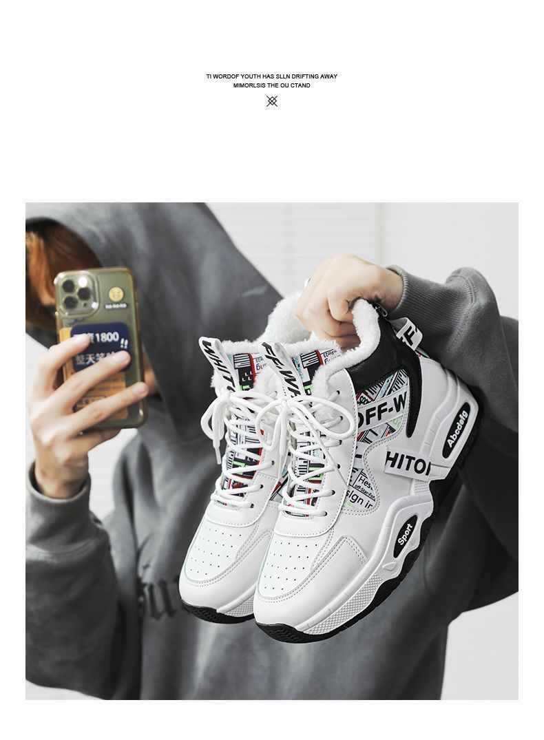 东北雪地靴男士棉鞋高帮男鞋冬季学生运动板鞋加绒加厚保暖二棉鞋