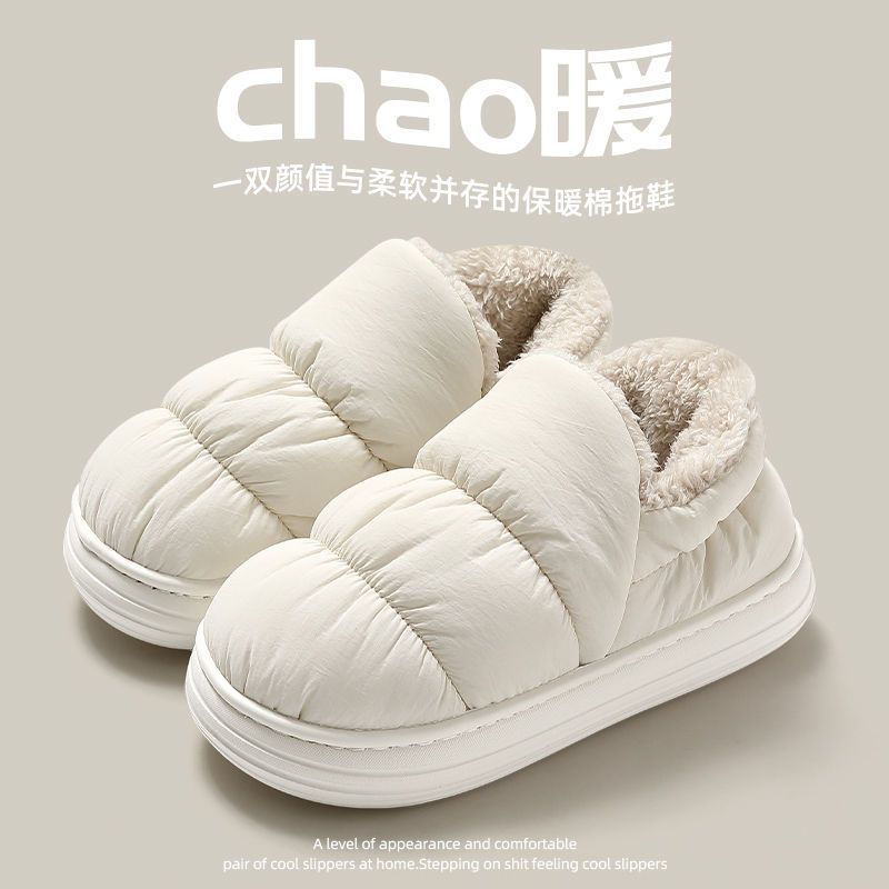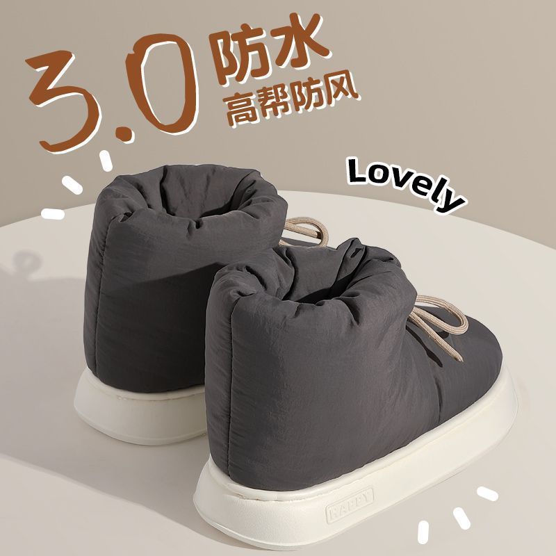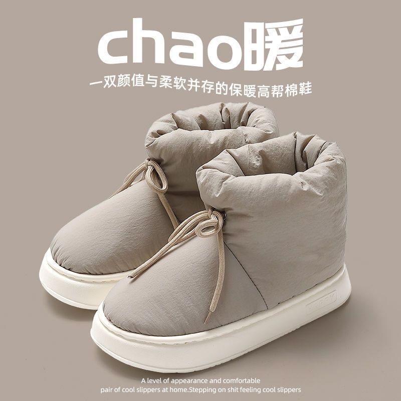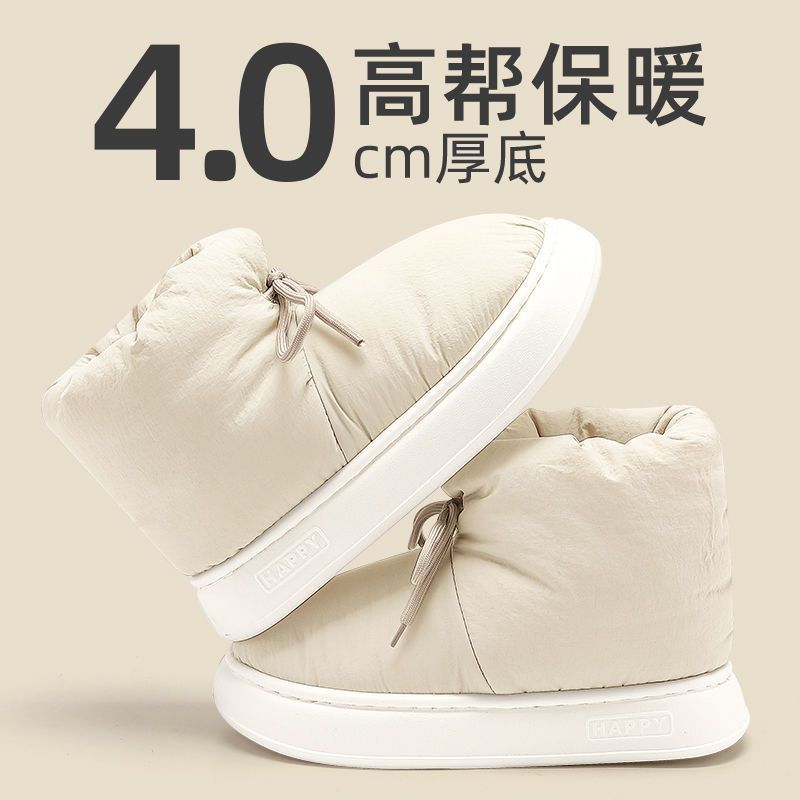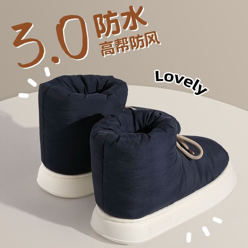 保暖棉鞋男款冬季羽绒布防寒防滑厚底居家用加厚踩屎感棉鞋男士冬