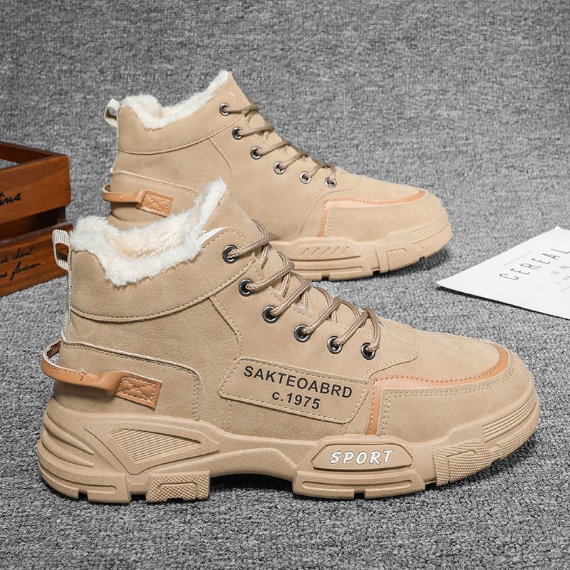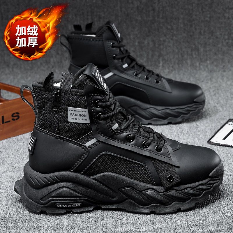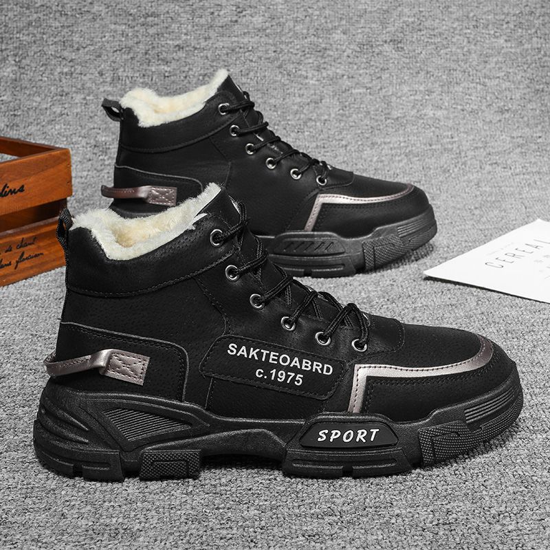 马丁靴男2024秋冬季新款加绒保暖棉鞋男士东北皮毛一体休闲雪地靴
