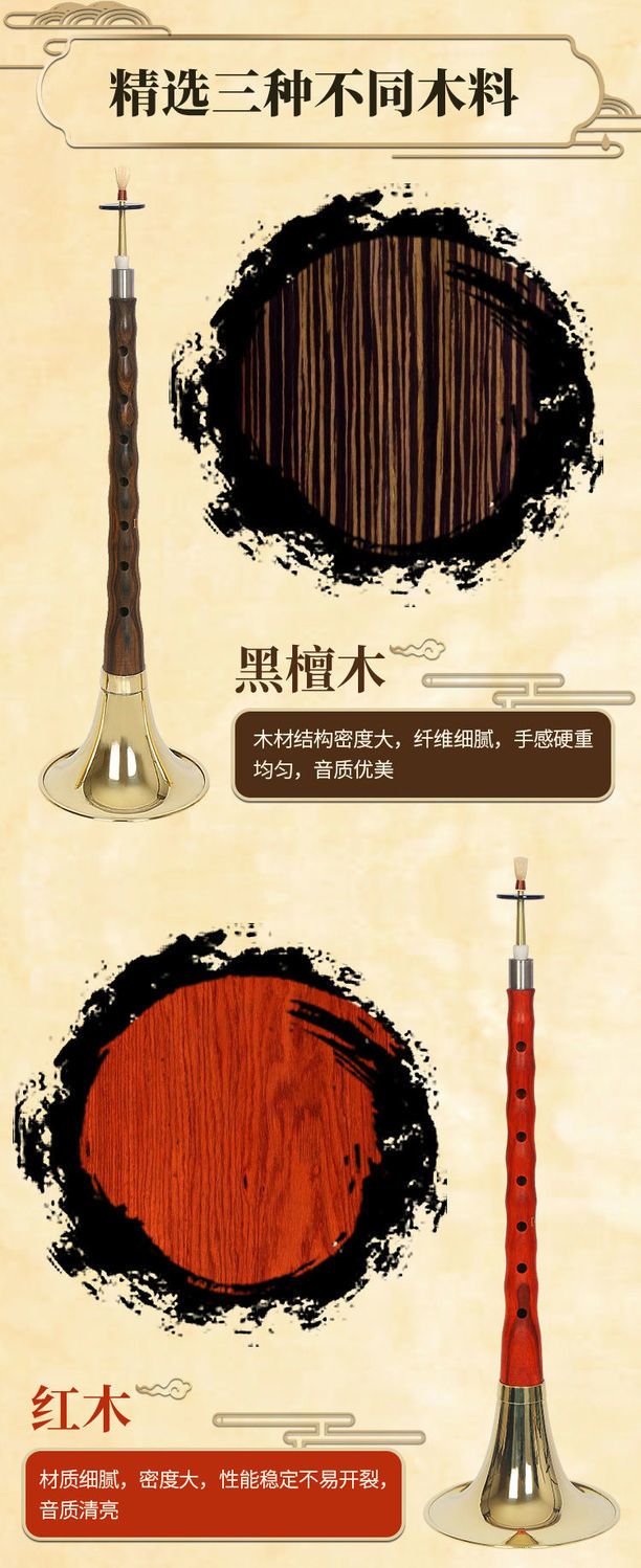 初学者唢呐红木乌木黑檀木民族吹奏乐器成人入门D调中号喇叭全套