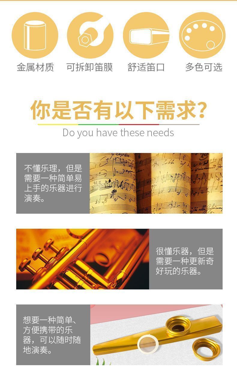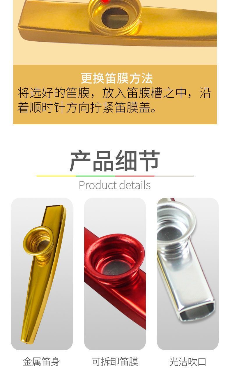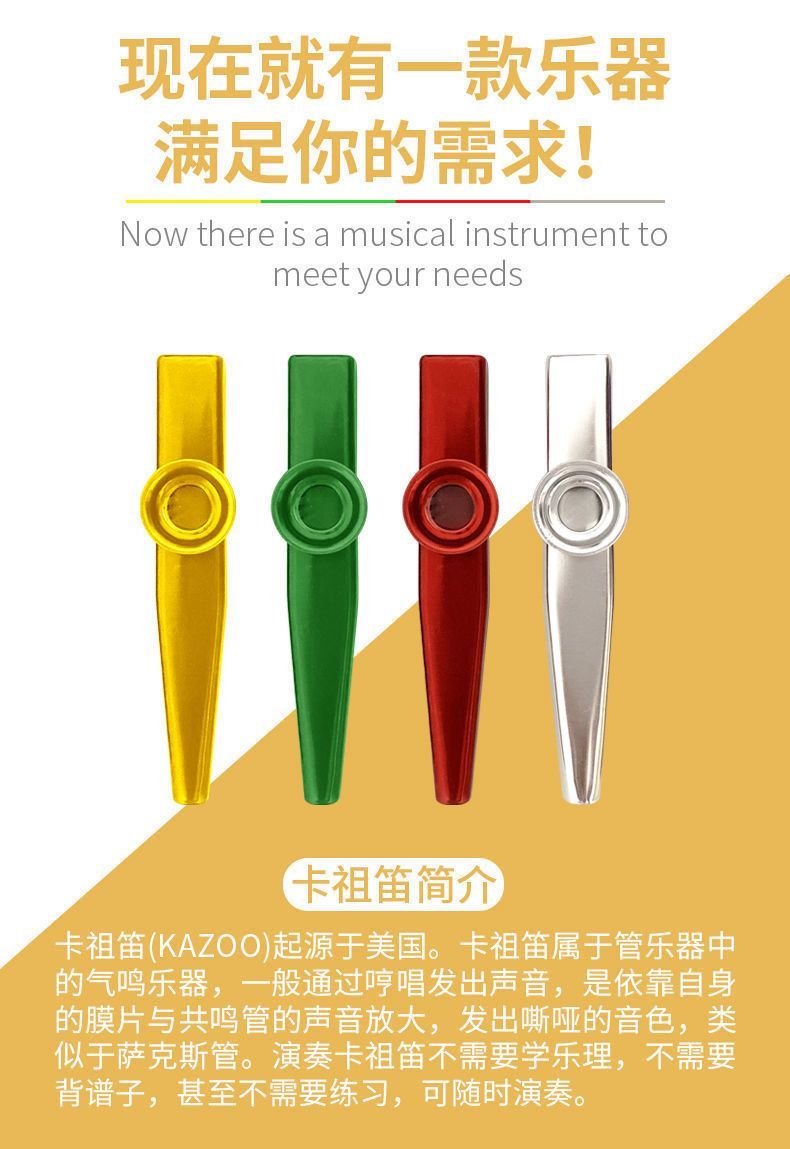 卡祖笛kazoo专业级大音量卡组笛子初学者不用学的金属乐器送笛膜