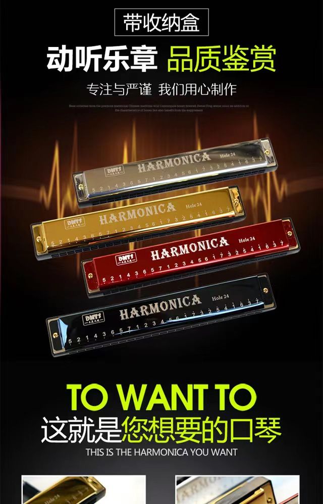 | 24孔复音C调【金色】+口琴书 | USD $3.88 | 99999 piece available |